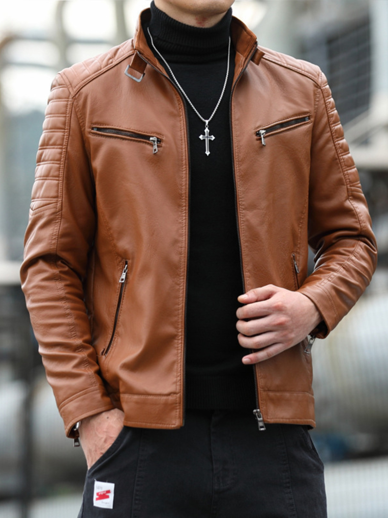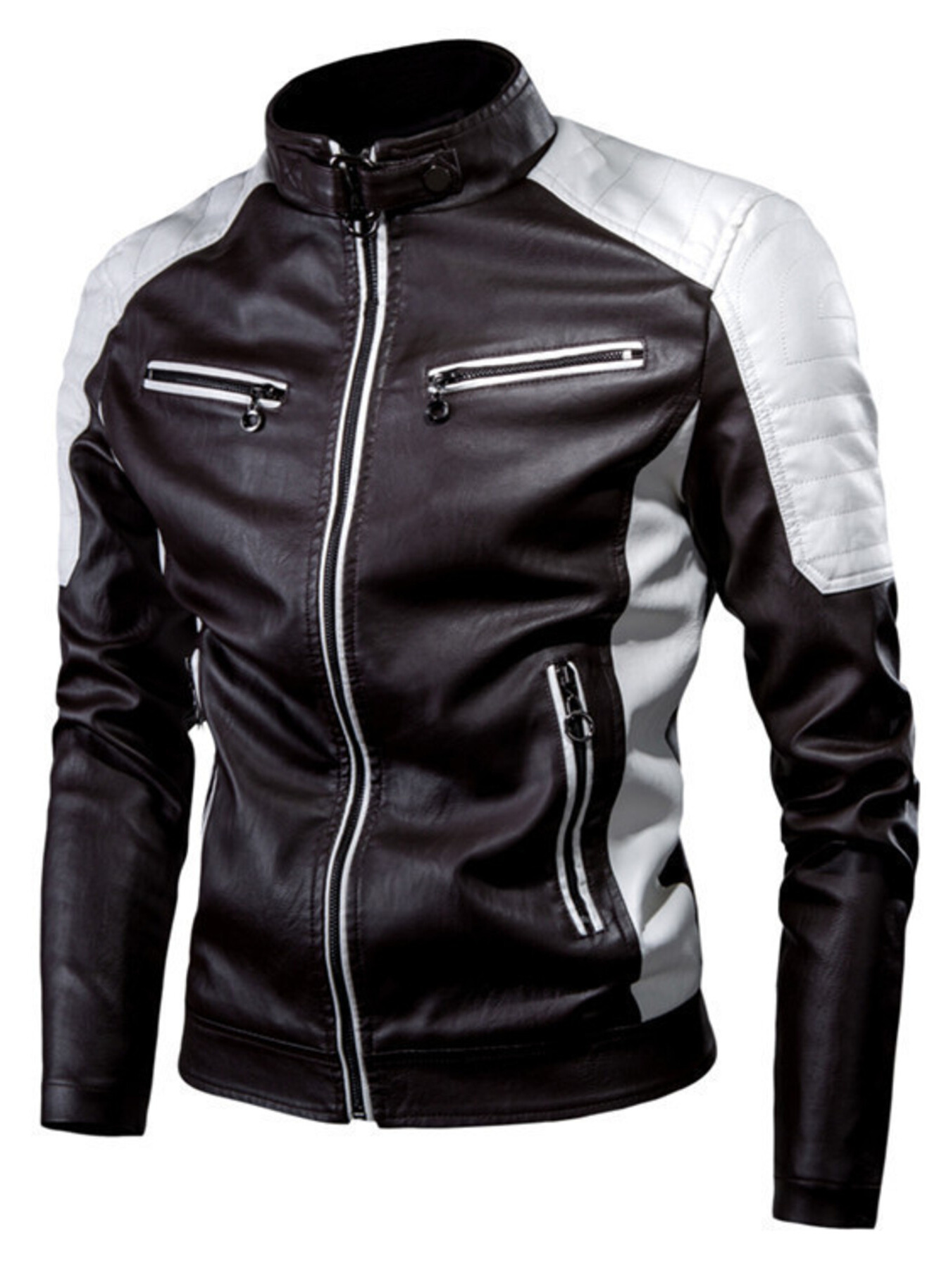 Men's Two-Tone Retro Style Faux Leather Jacket