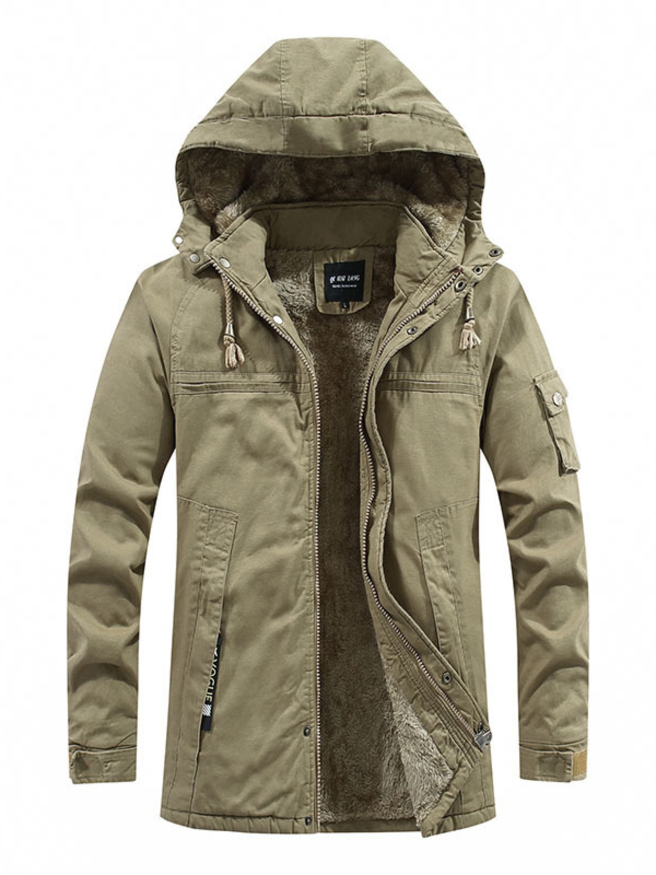 Men's Plus Size Drawstring Zip Up Hooded Jacket