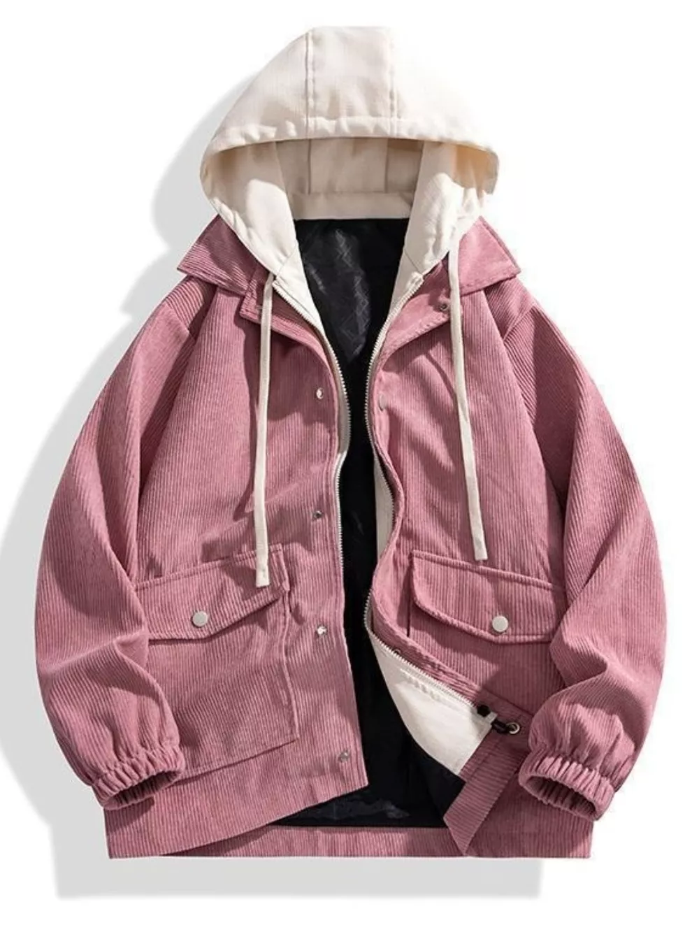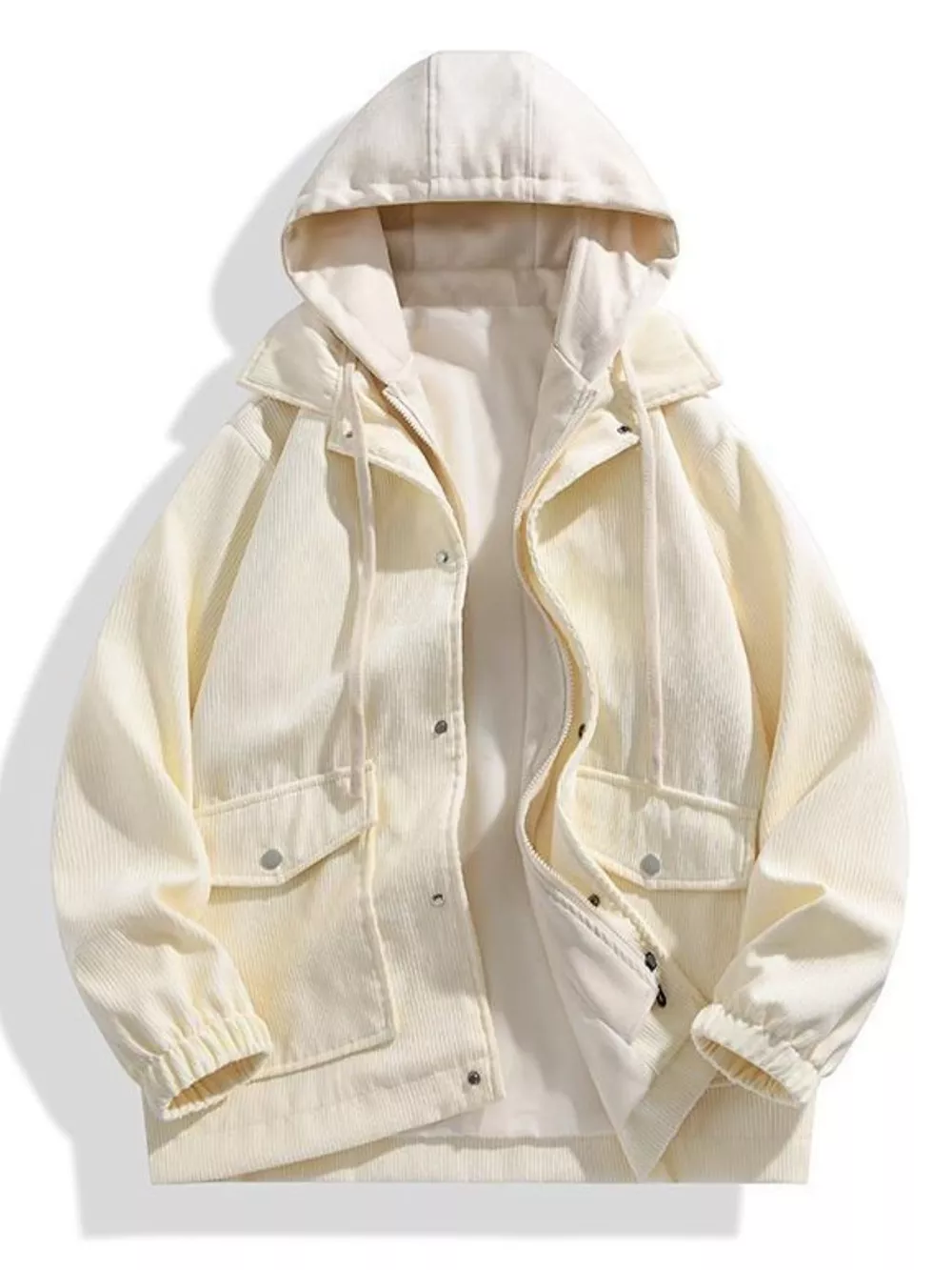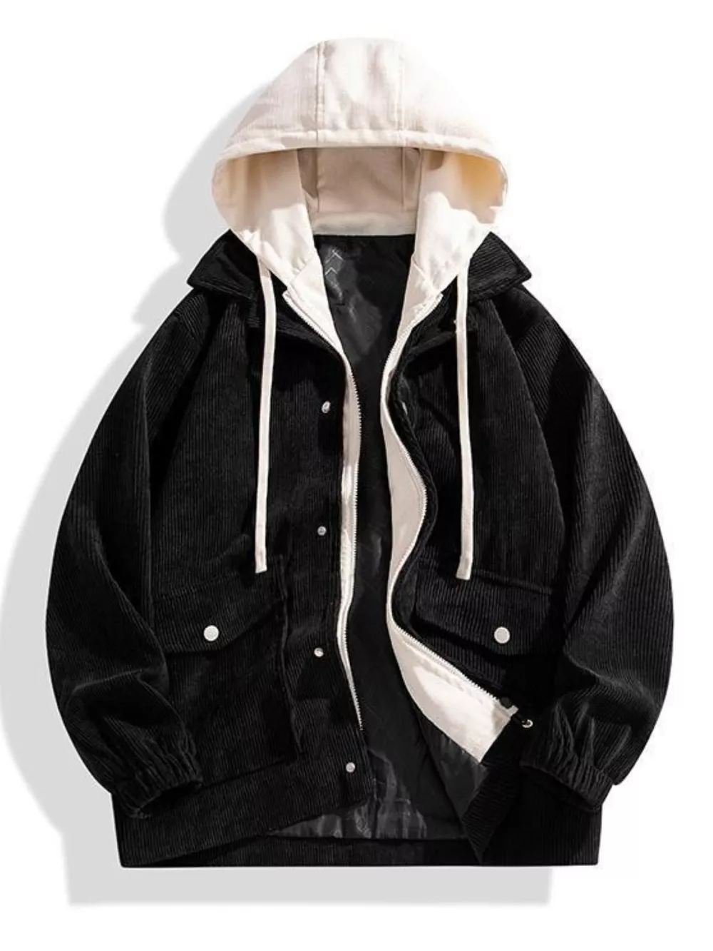 Men's Plus Size Casual Corduroy Snap Down Hooded Jacket