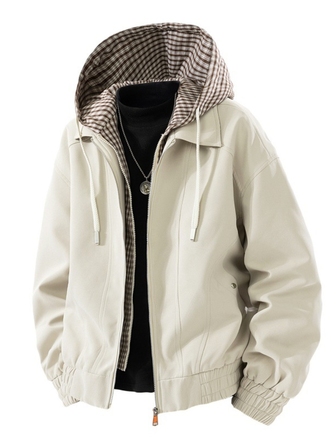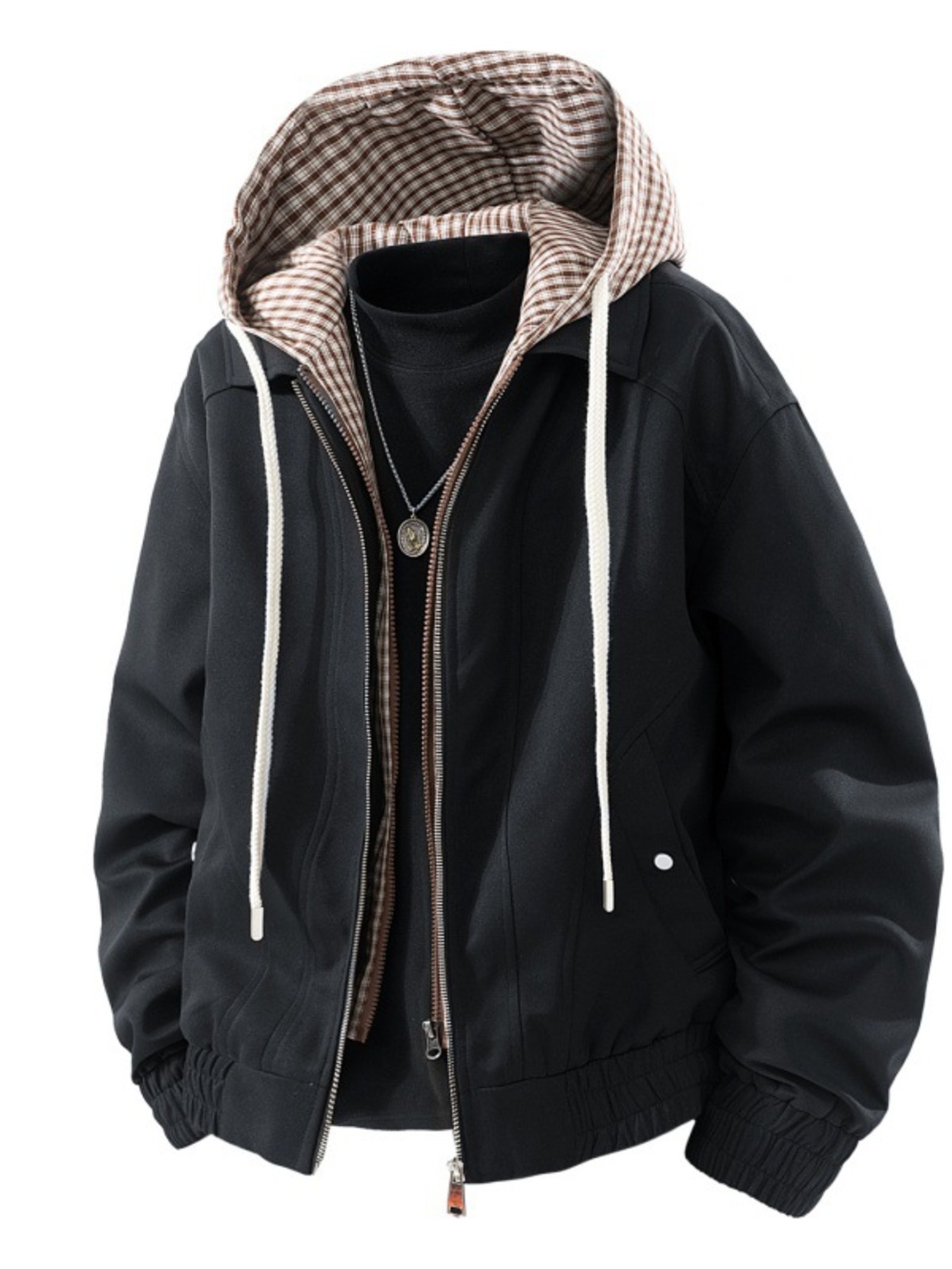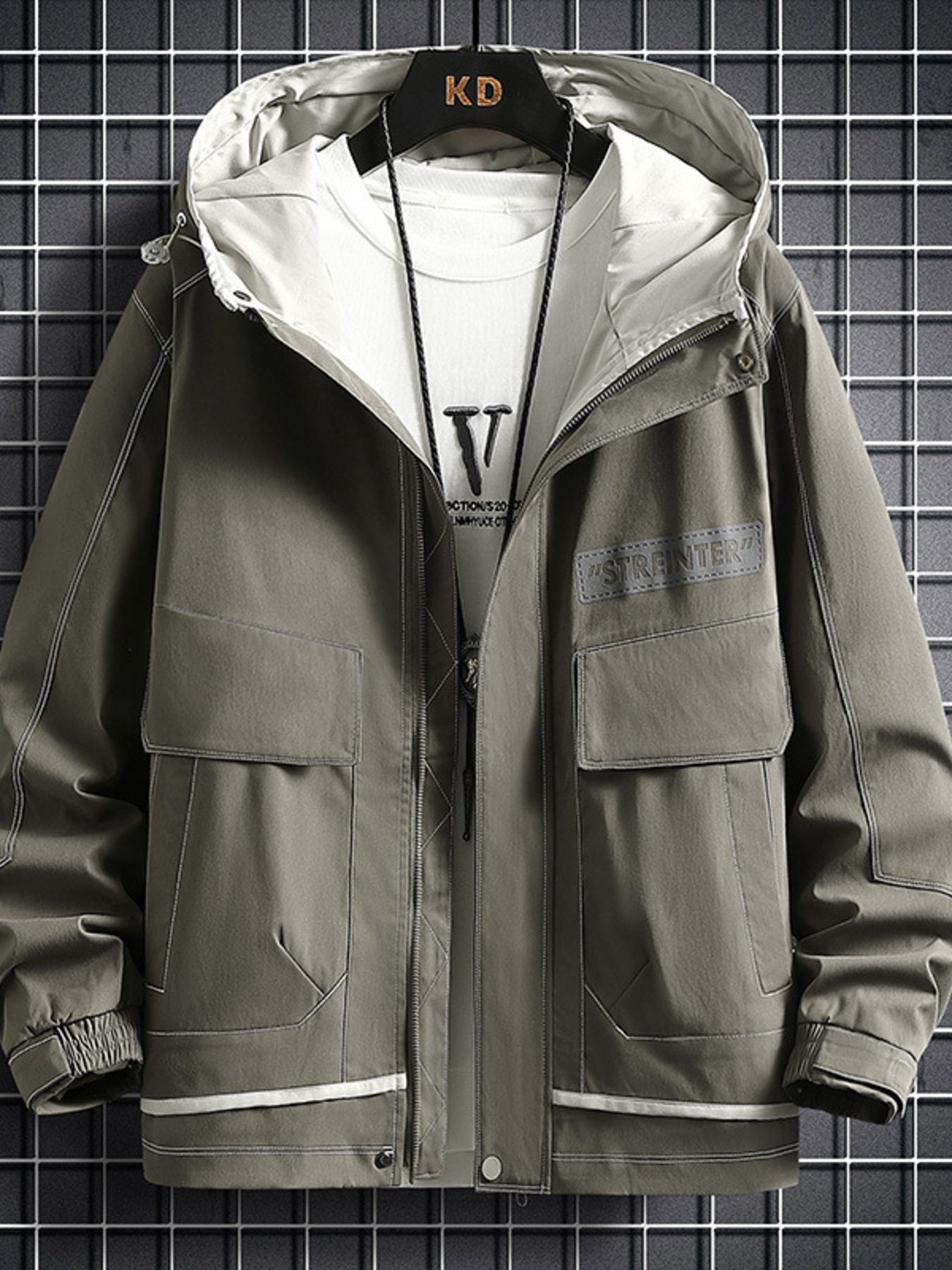 Men's Plus Size Casual Plaid Hooded Windbreaker Jacket