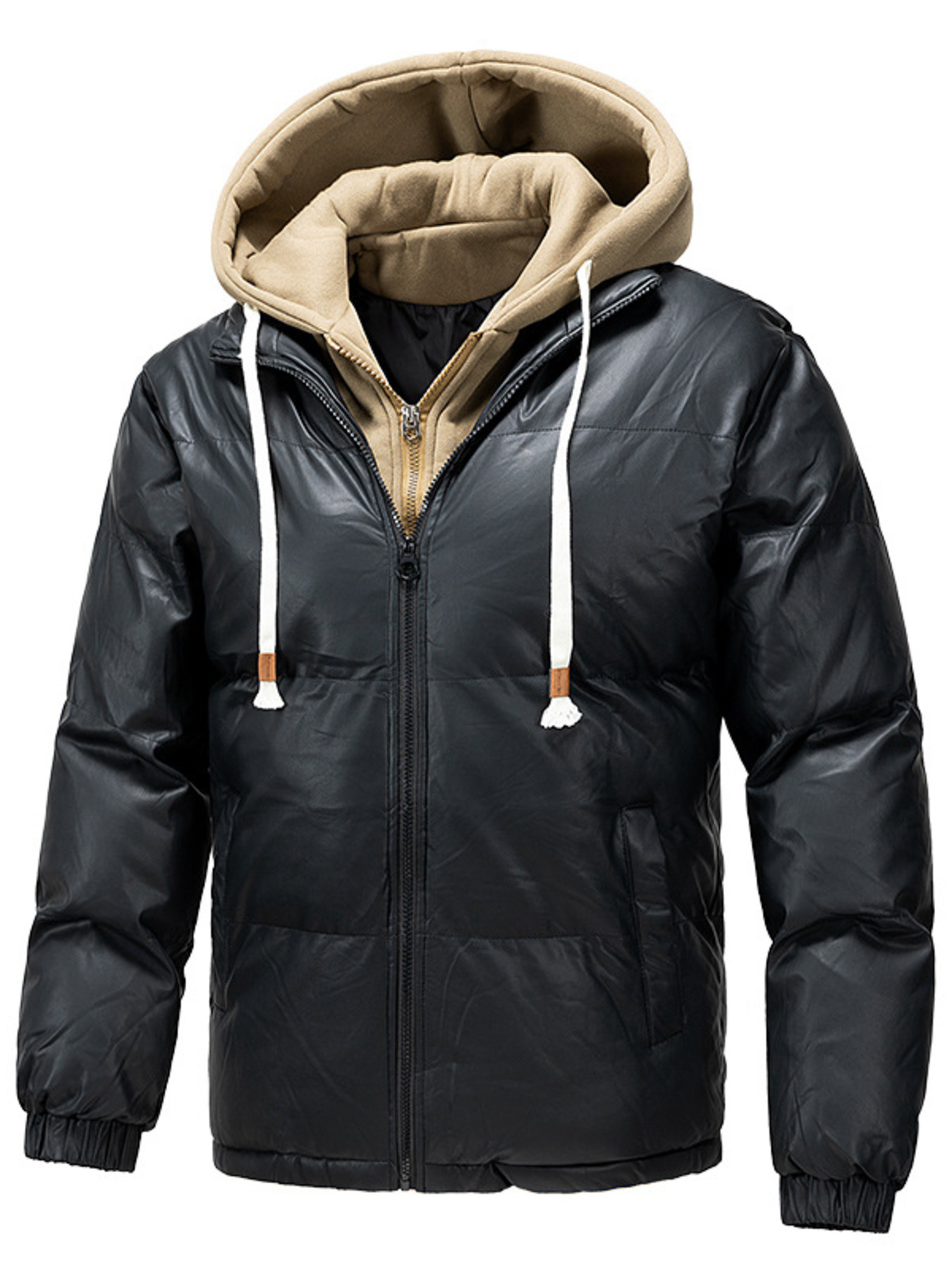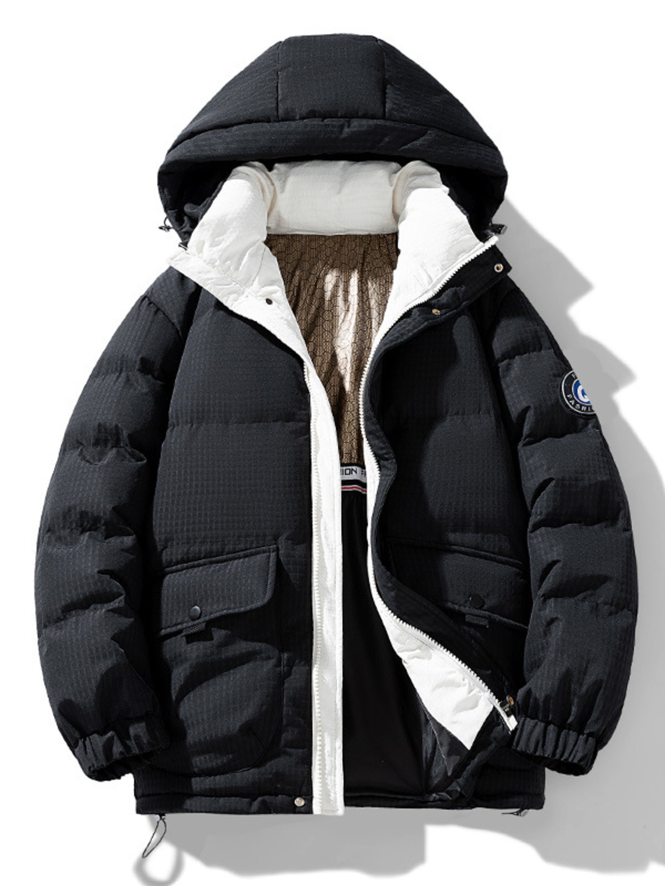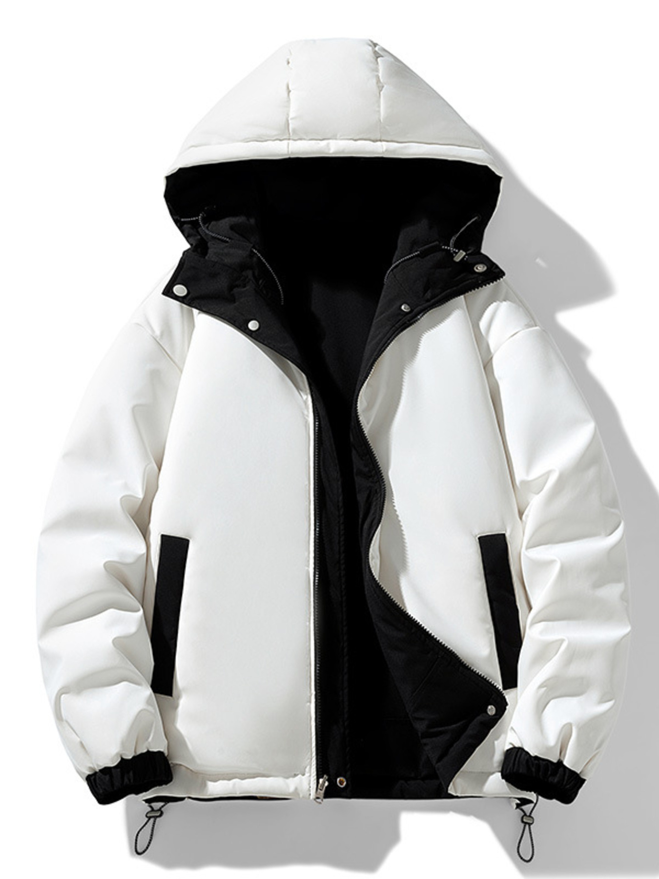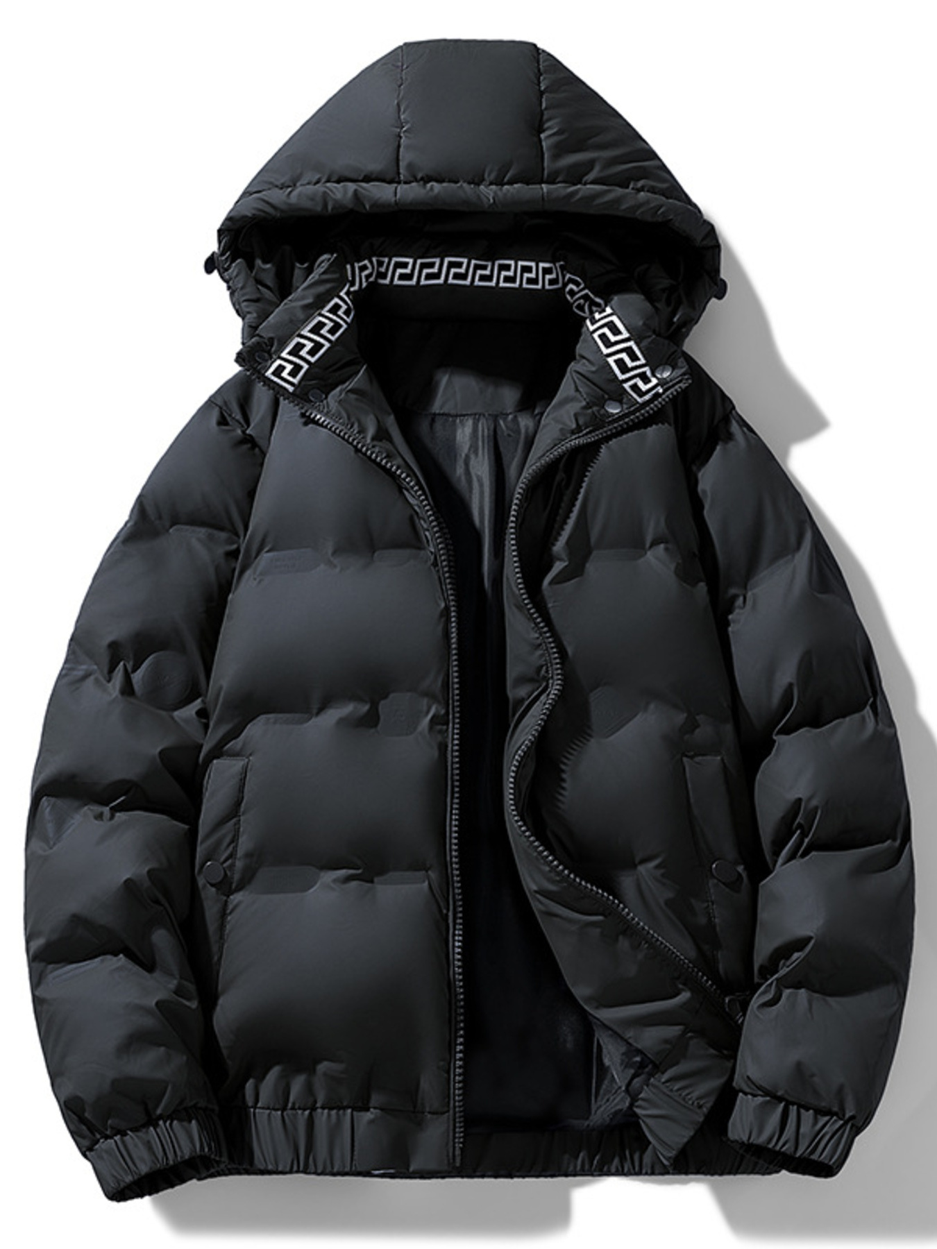 Men's Plus Size Contrast Hooded Puffer Jacket