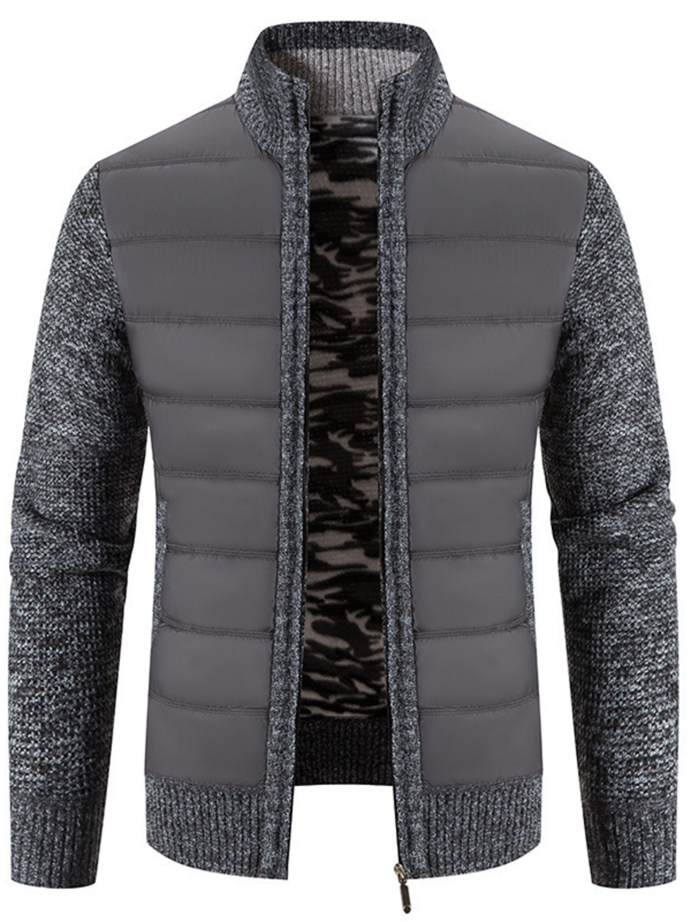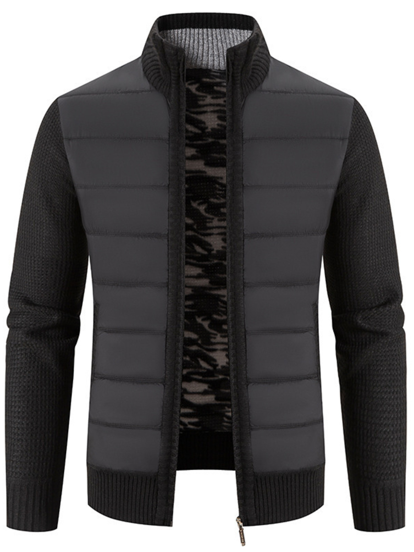 Men's Plus Size Quilted Knit Bomber Jacket with Stand Collar