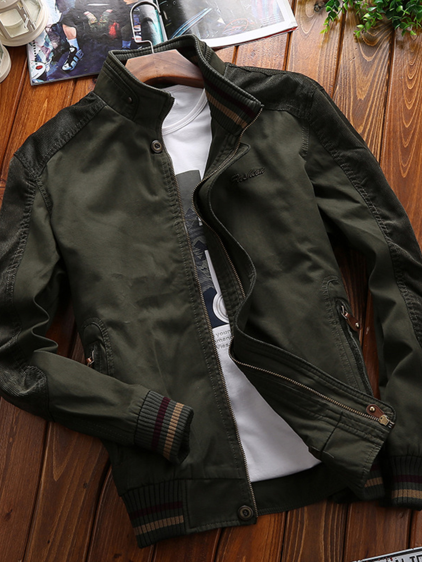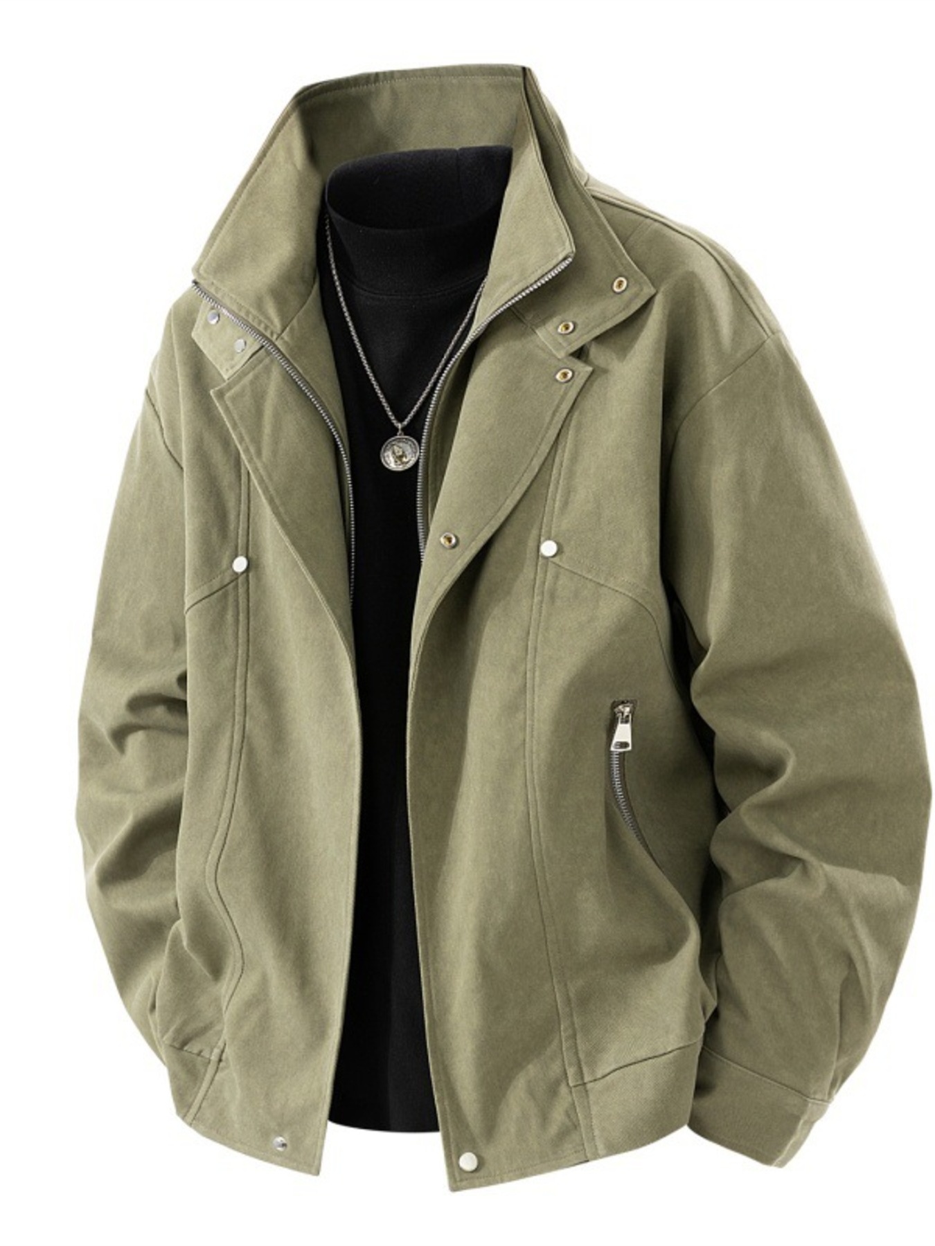 Men's Plus Size Casual Stand Collar Zipper Jacket