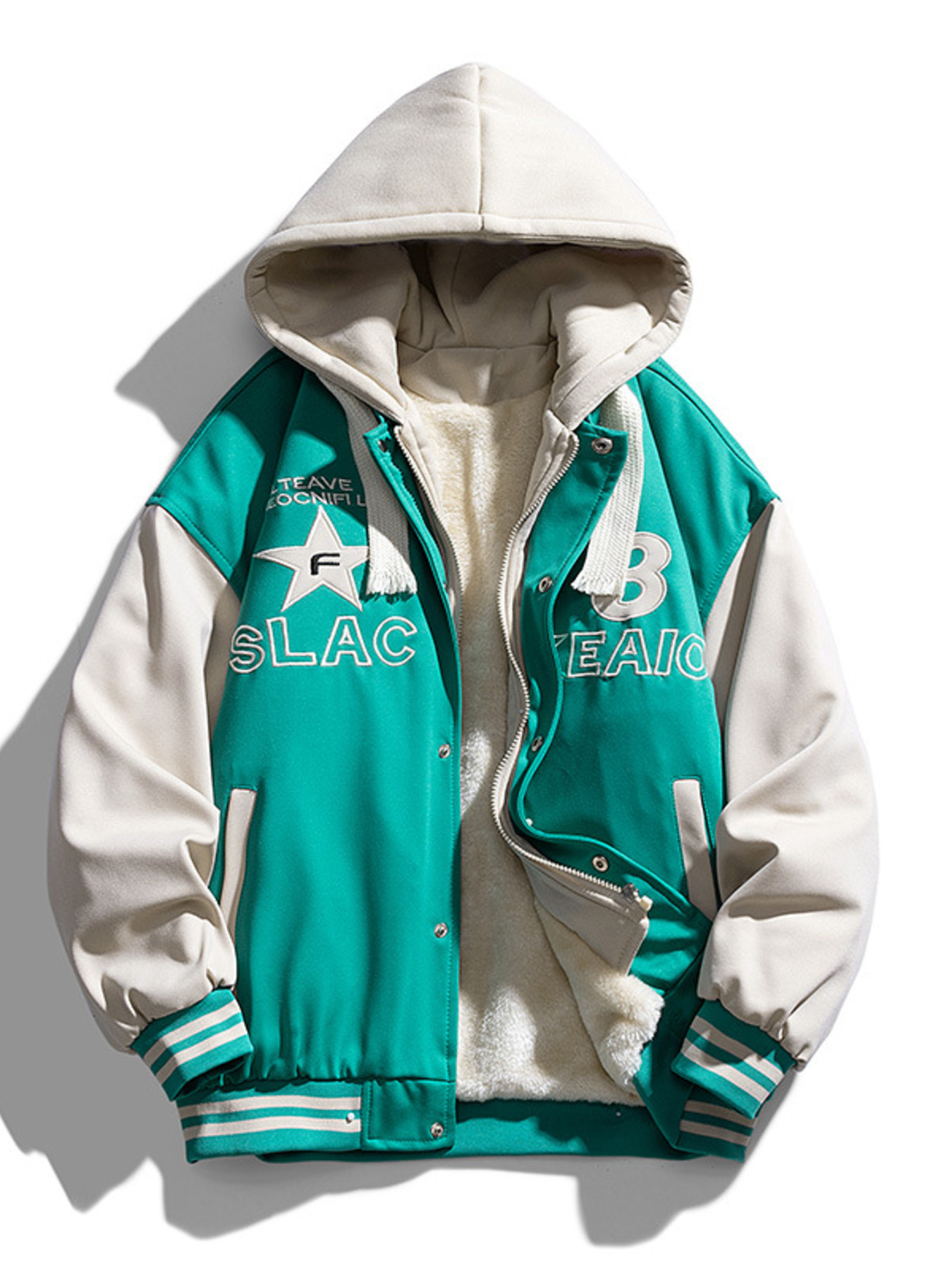 Men's Full Size Fleece Letter Graphic Zip Up Jacket Plus Size