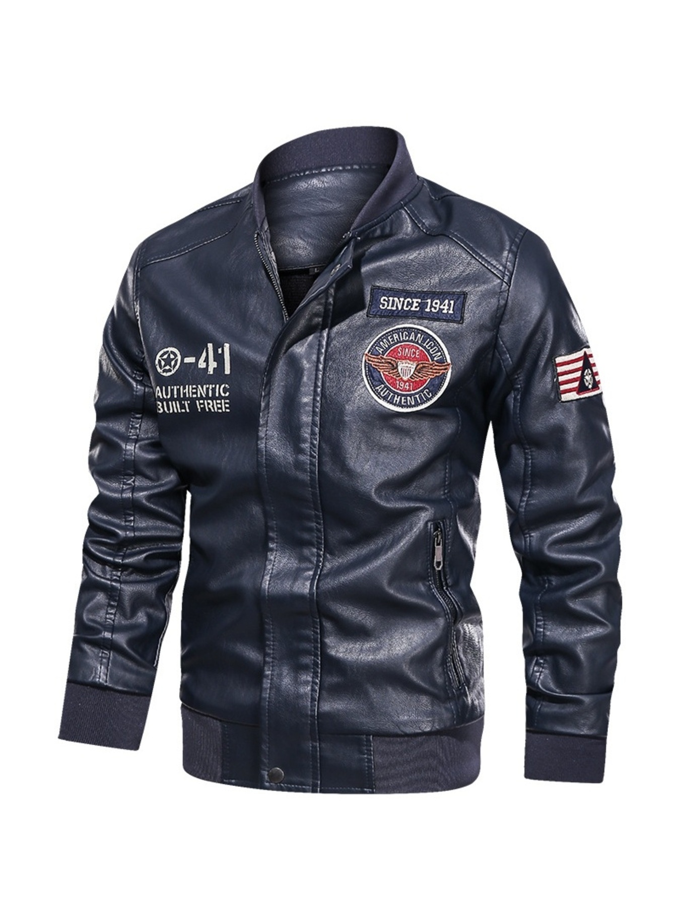 Men's Plus Size Leather Bomber Jacket
