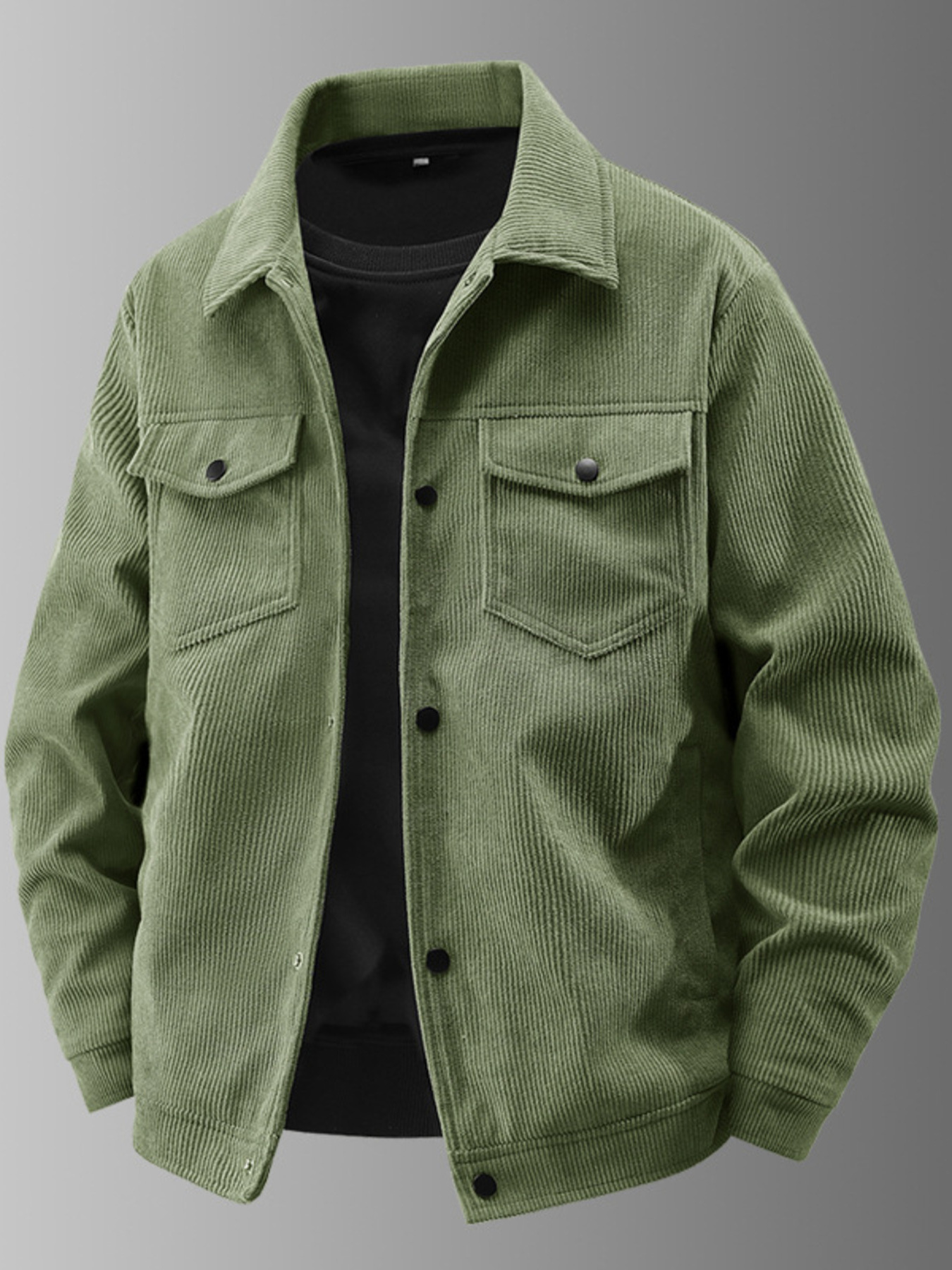 Men's Plus Size Corduroy Button-Up Jacket with Chest Pockets
