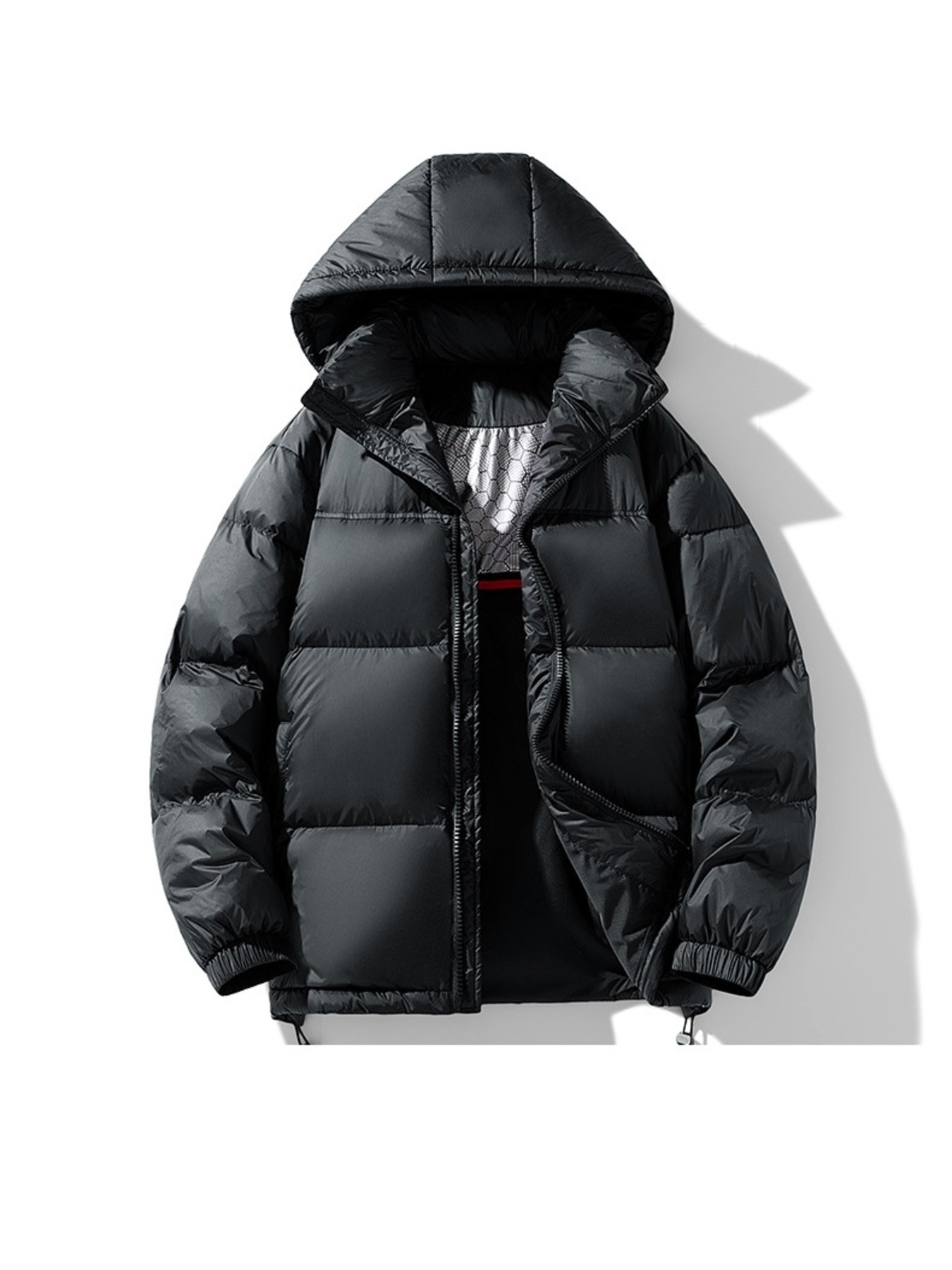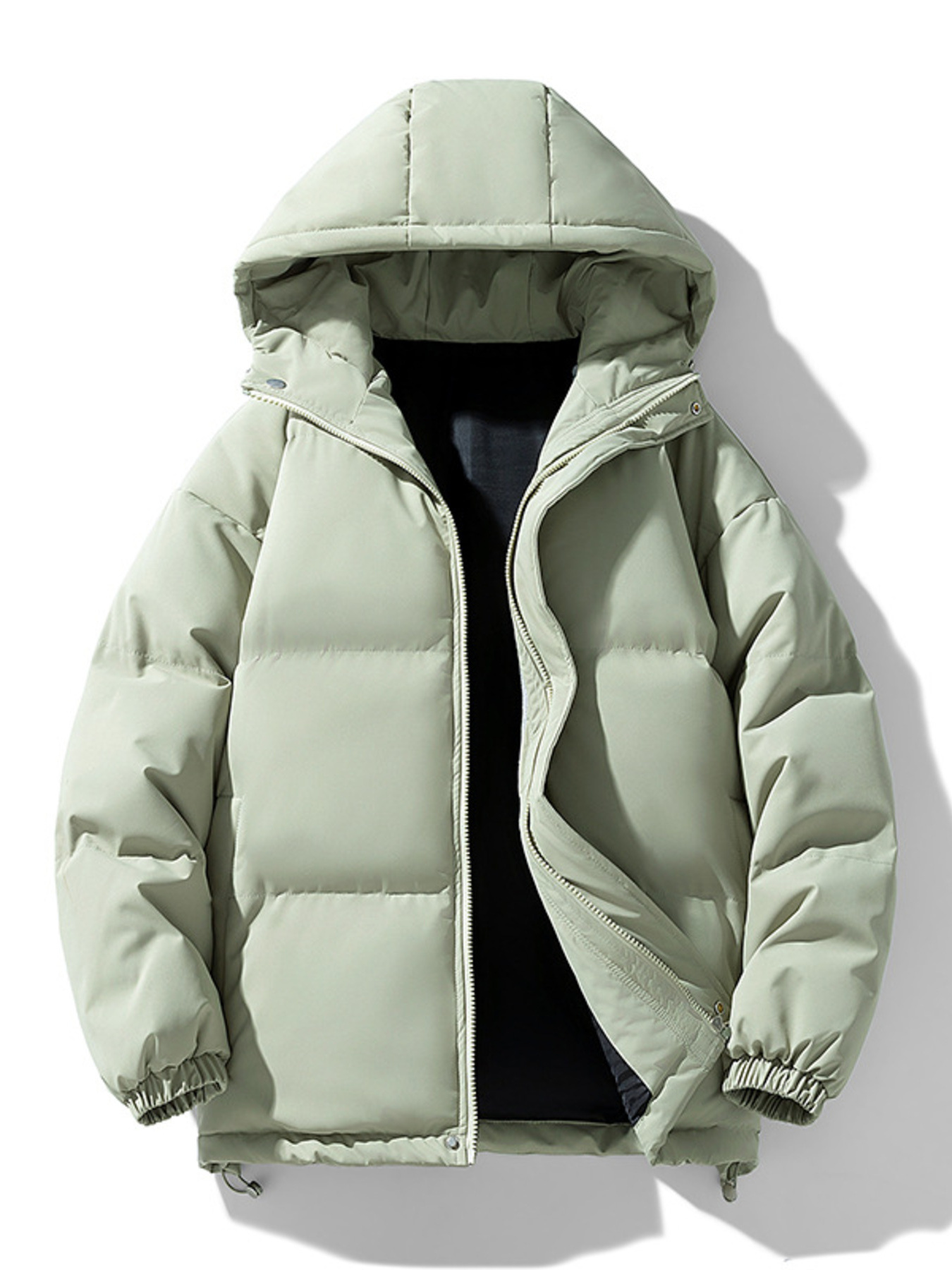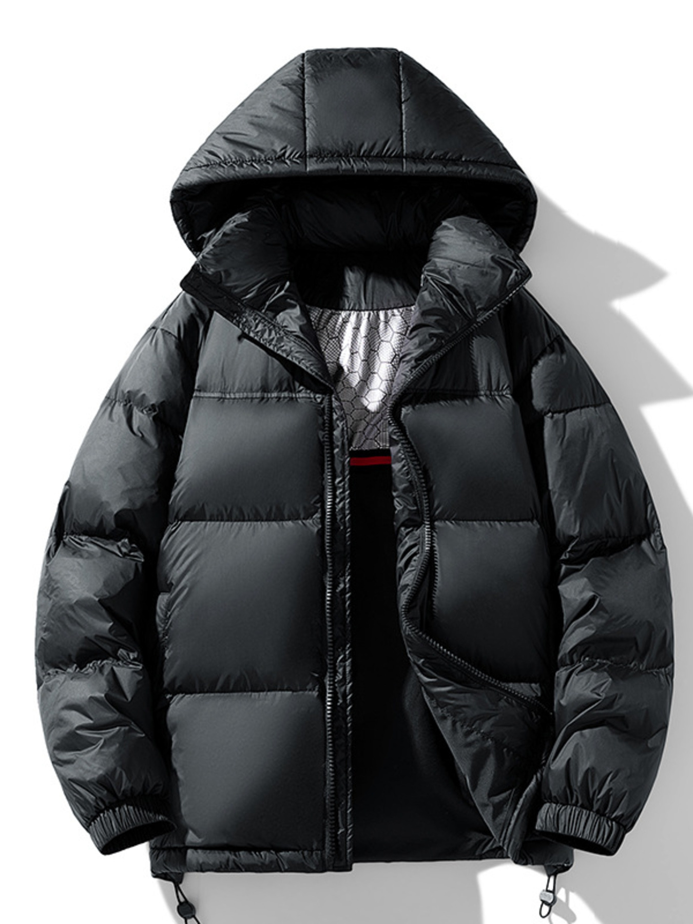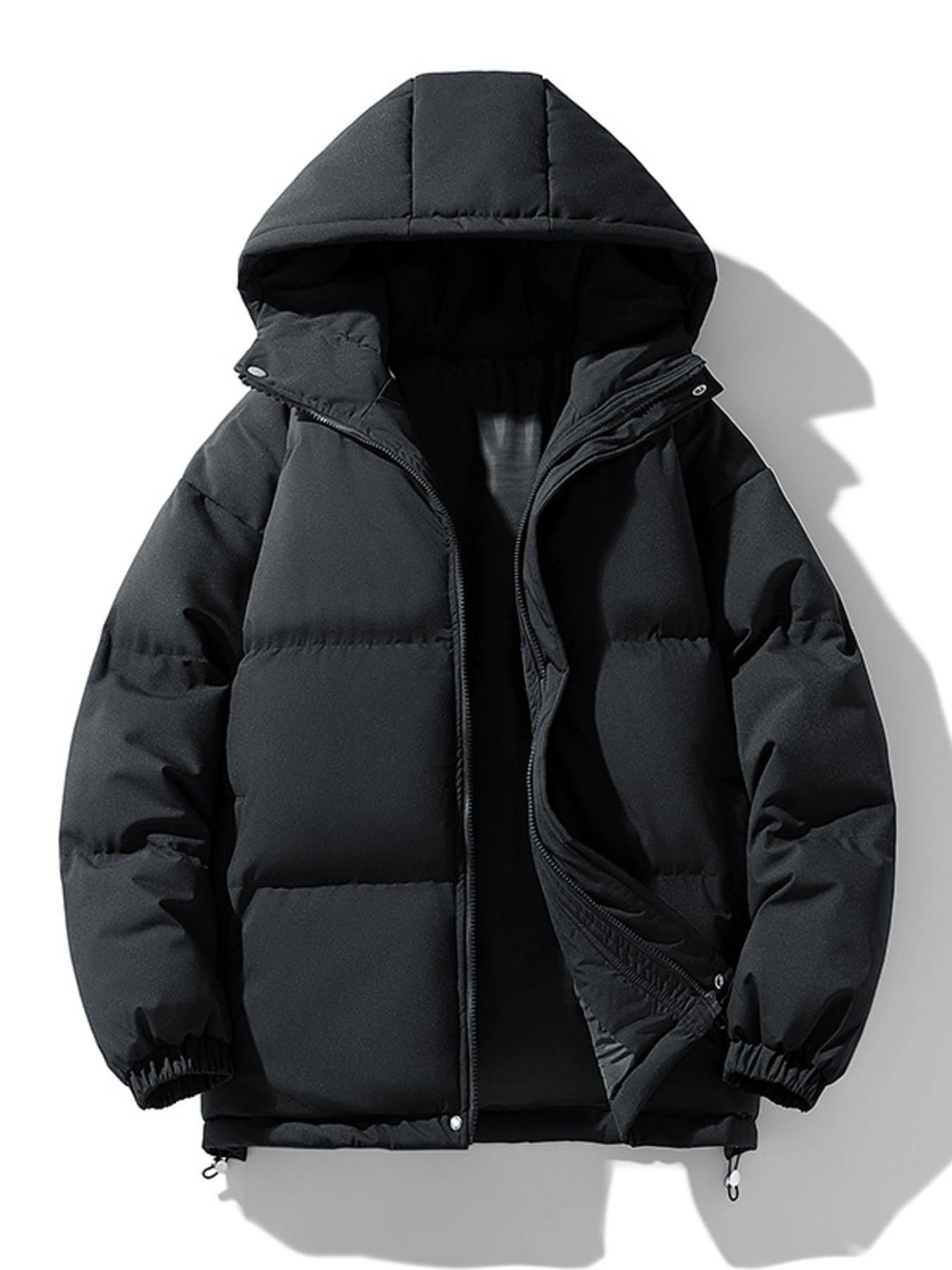 Men's Plus Size Hooded Puffer Jacket with Drawstring Hem