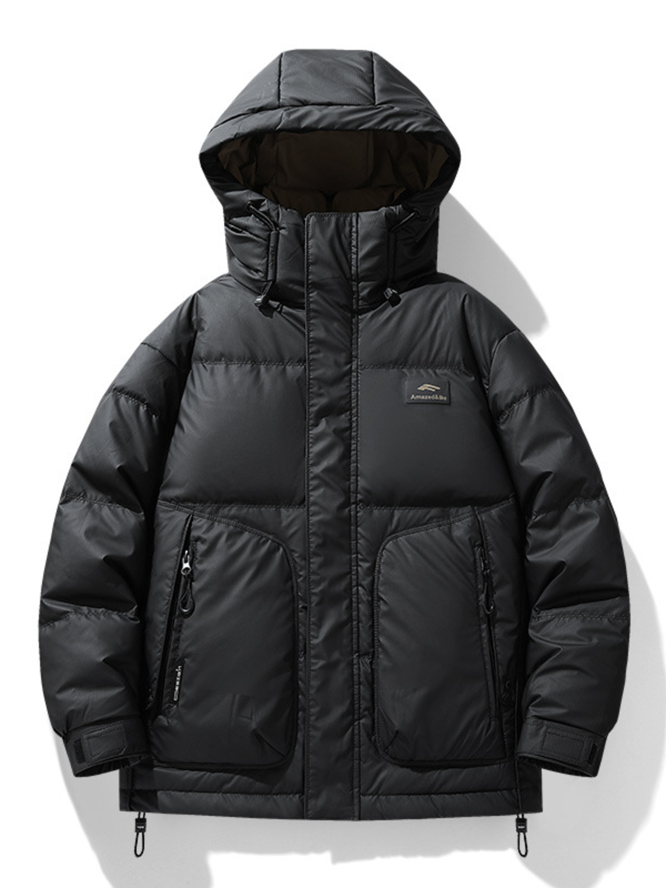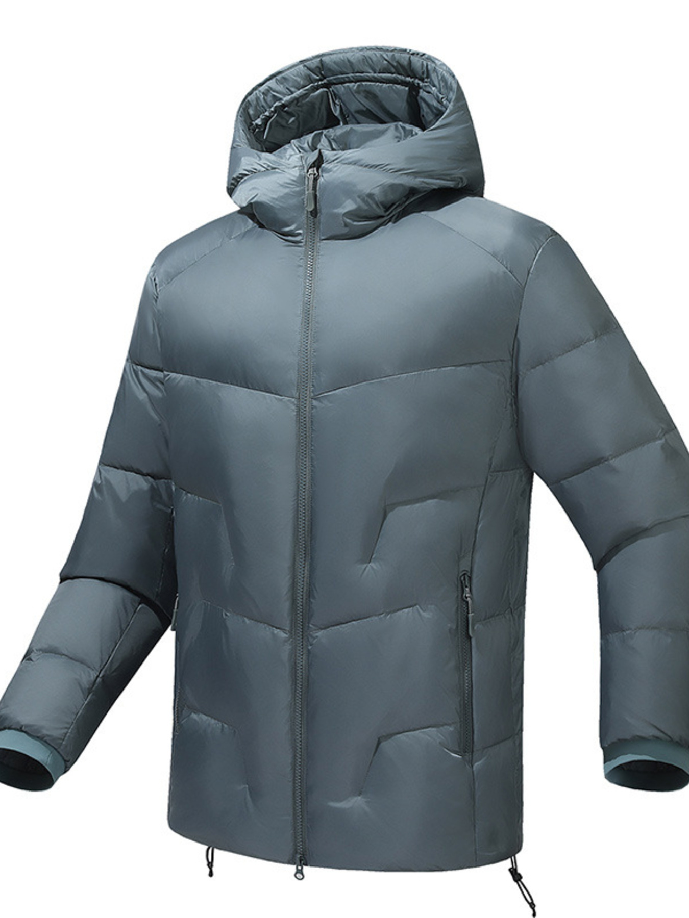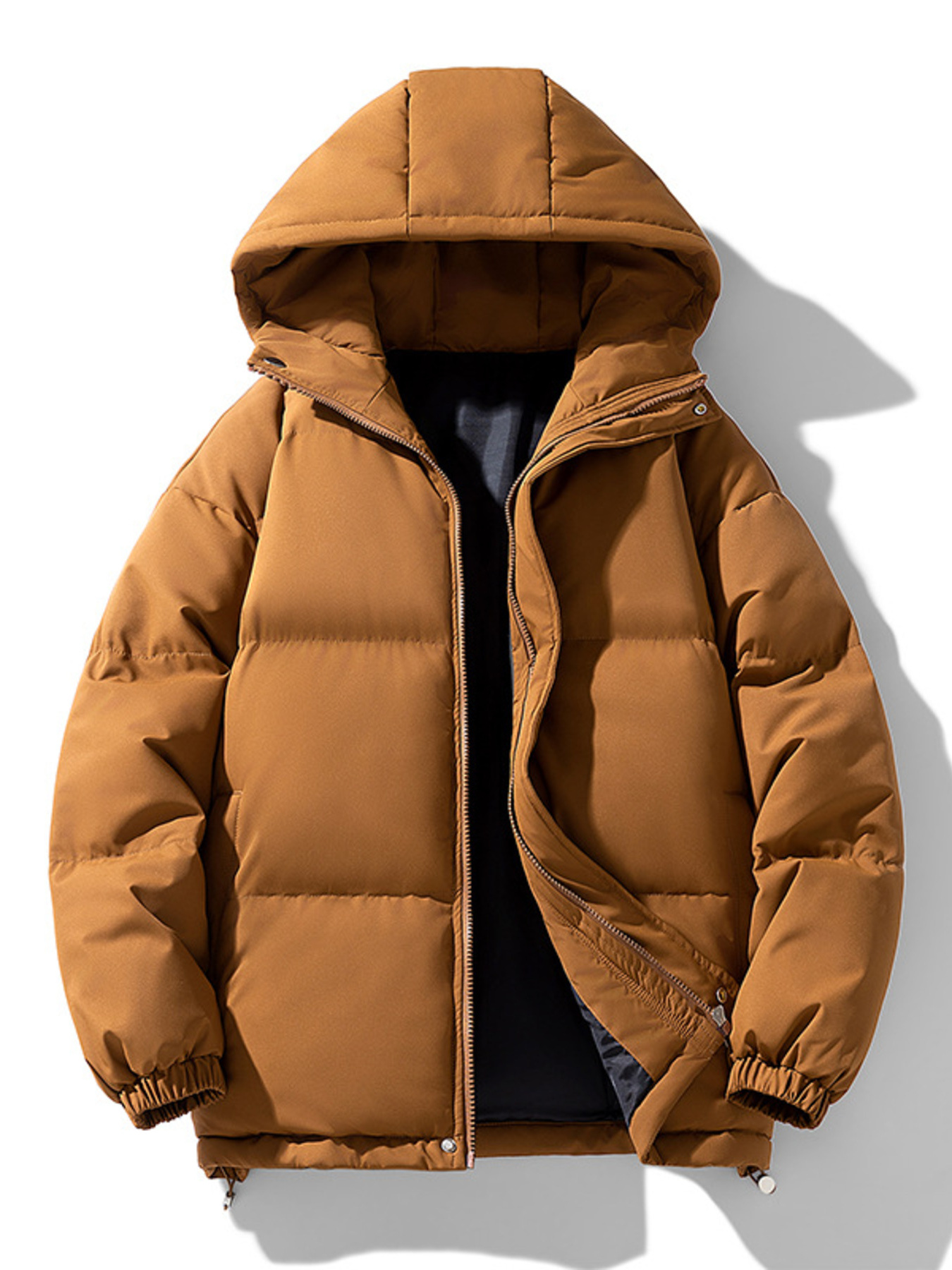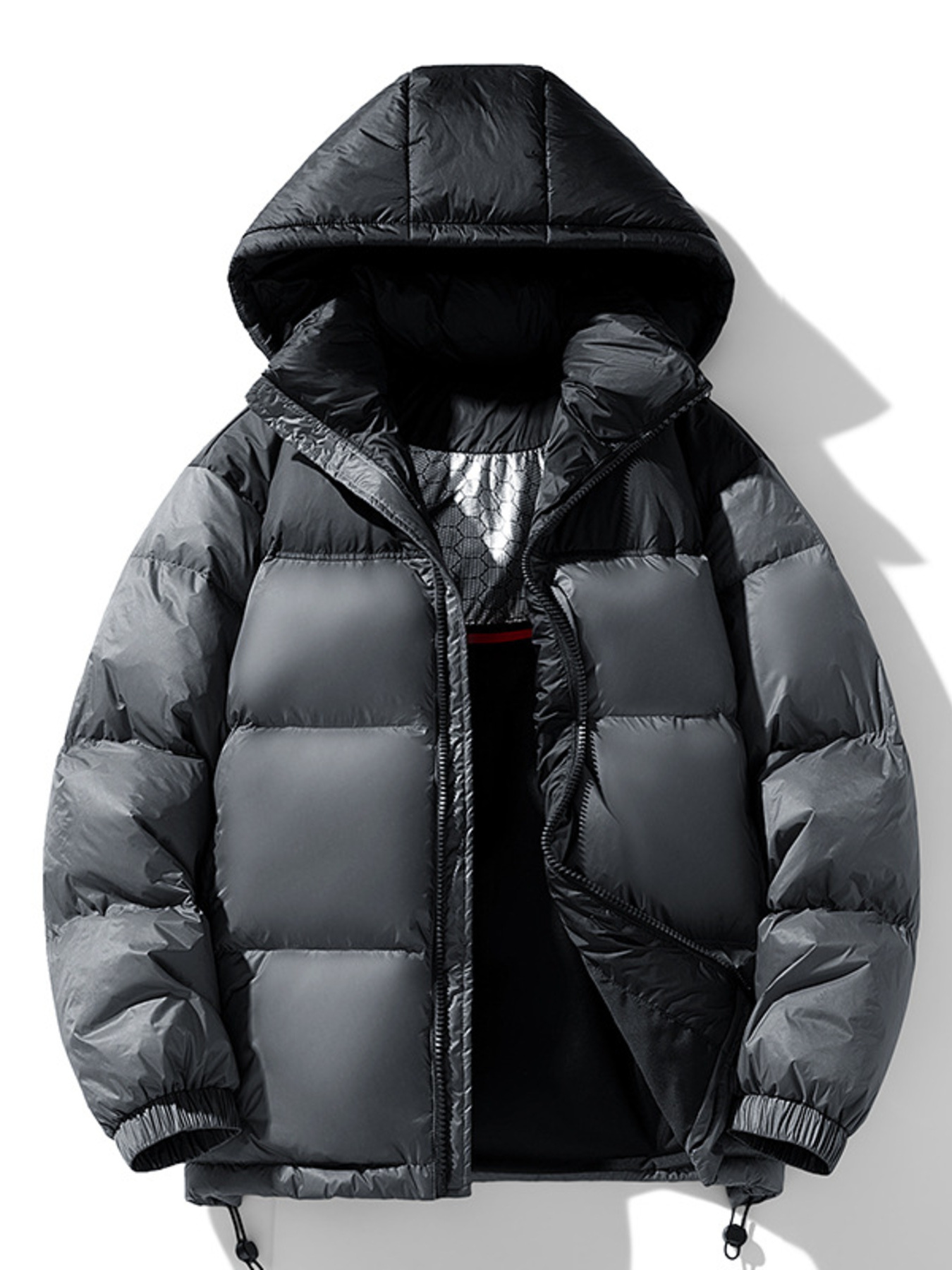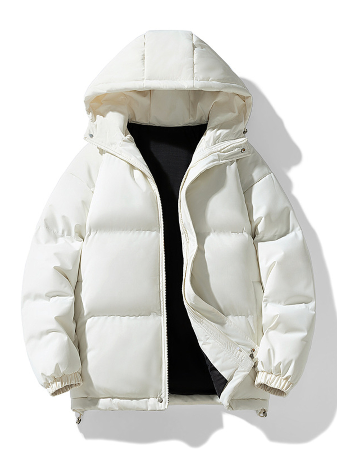 Men's Plus Size Hooded Puffer Jacket with Drawstring Hem