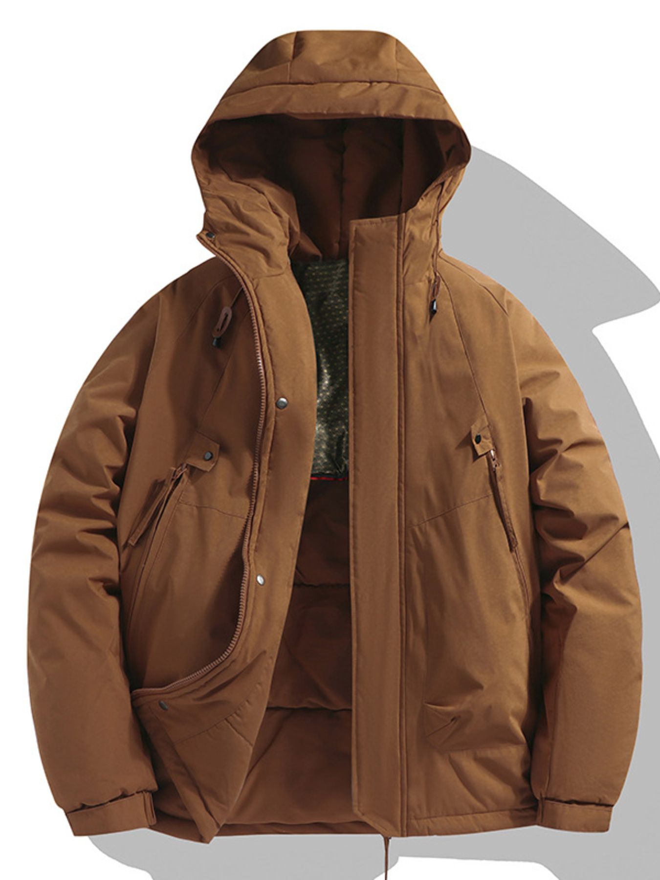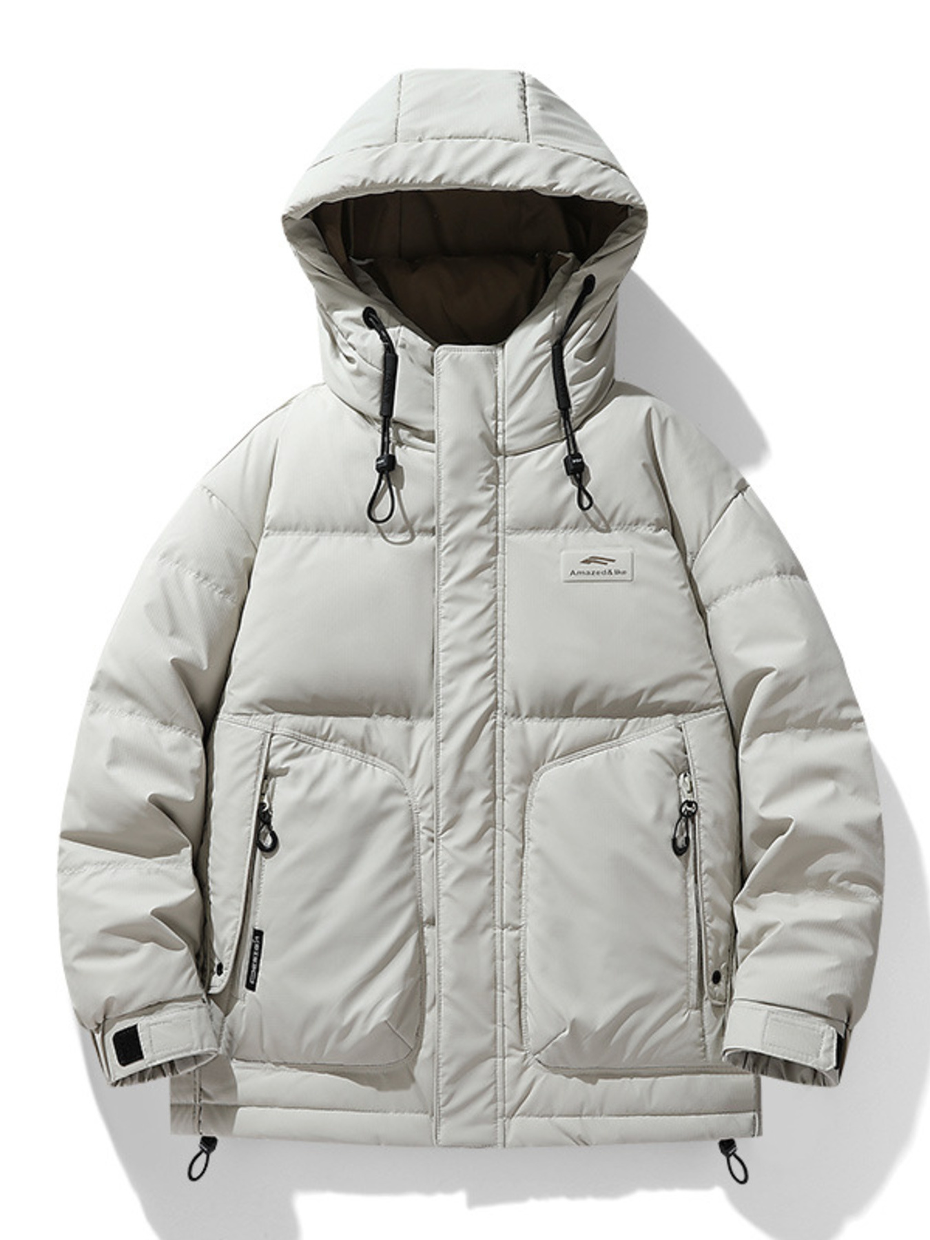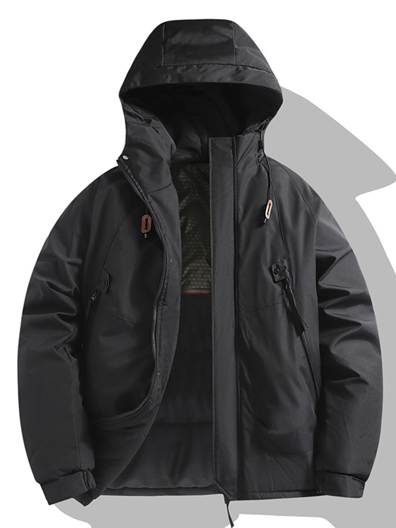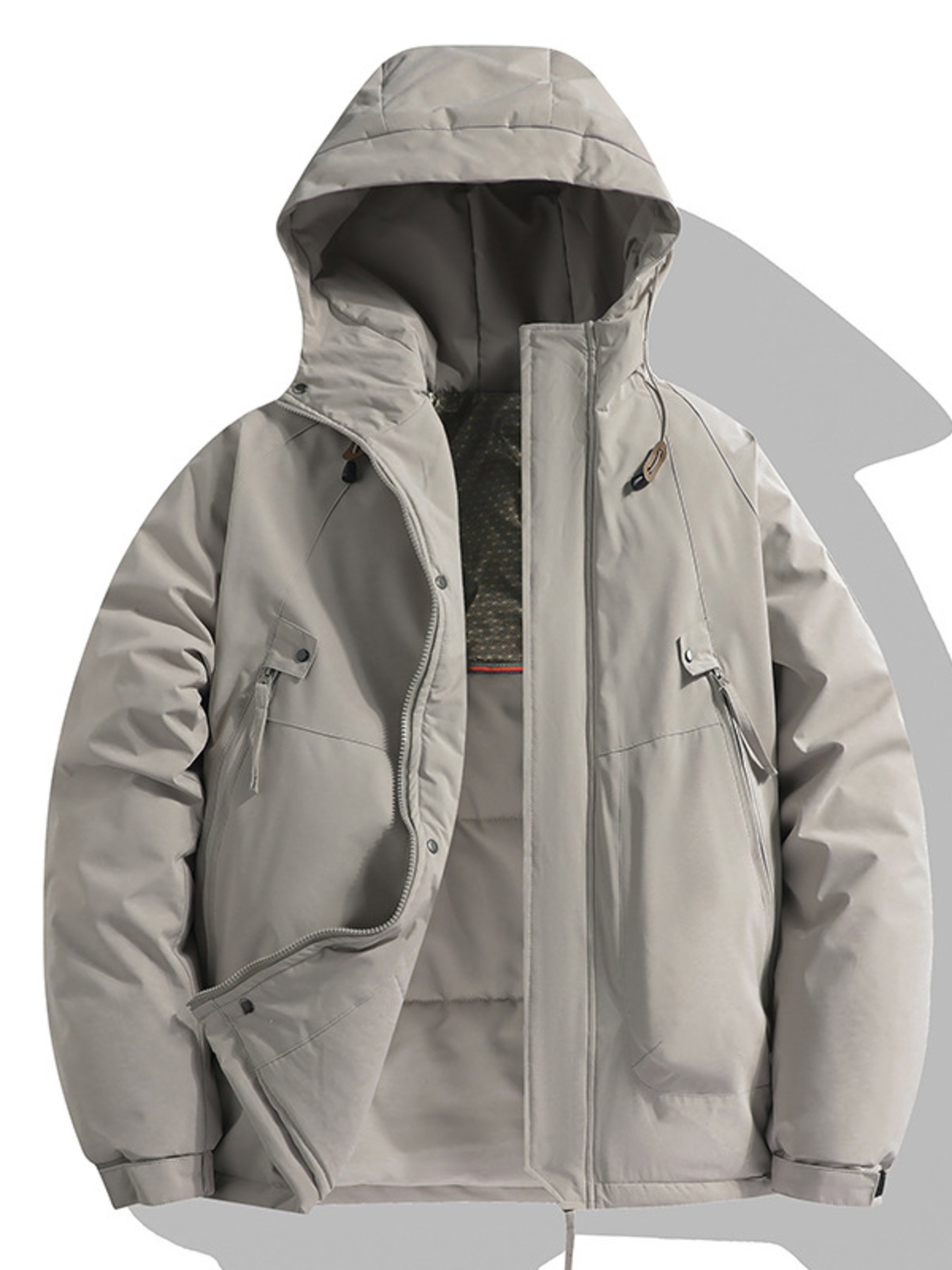 Men's Plus Size Hooded Puffer Jacket with Drawstring Hem