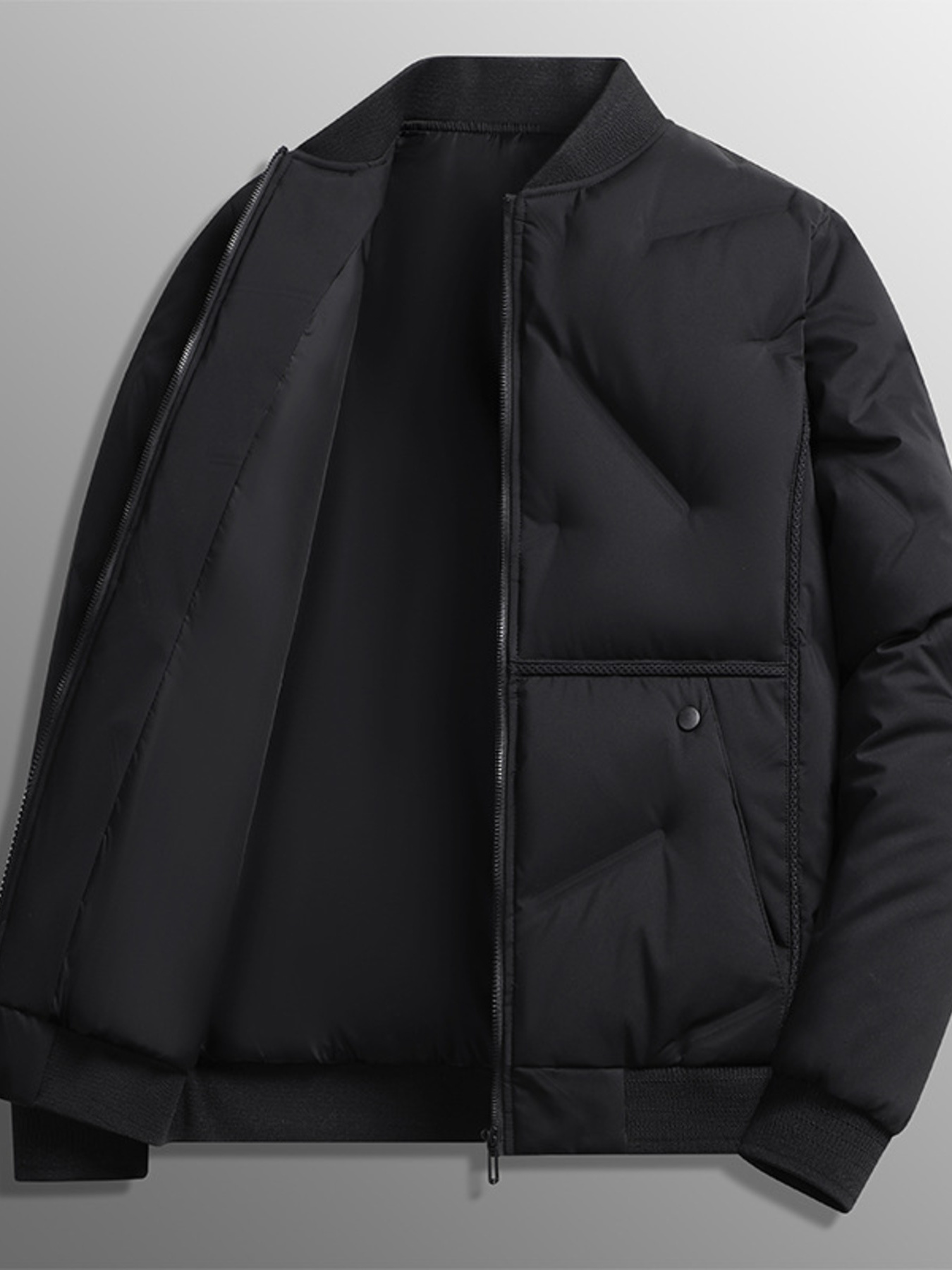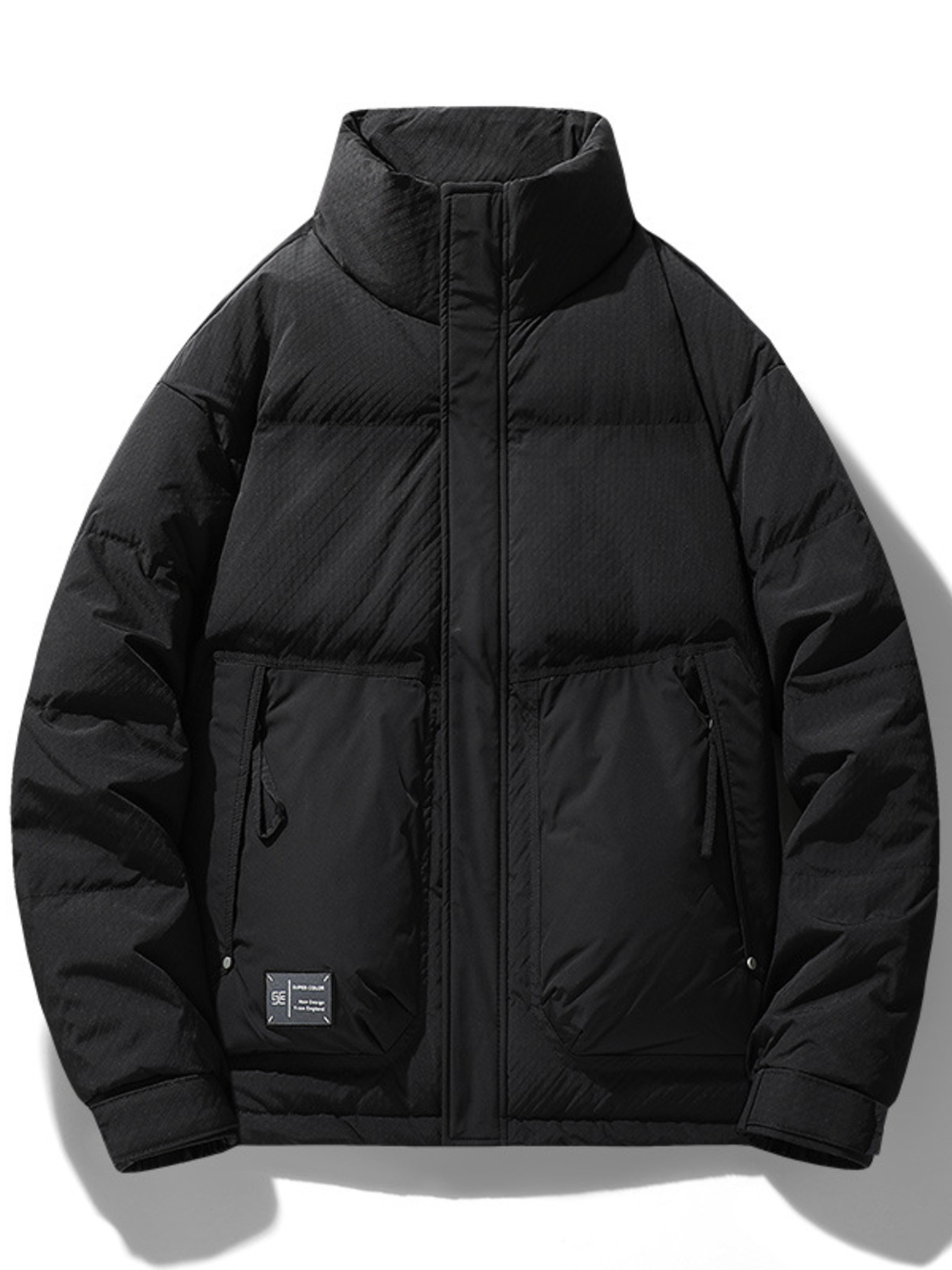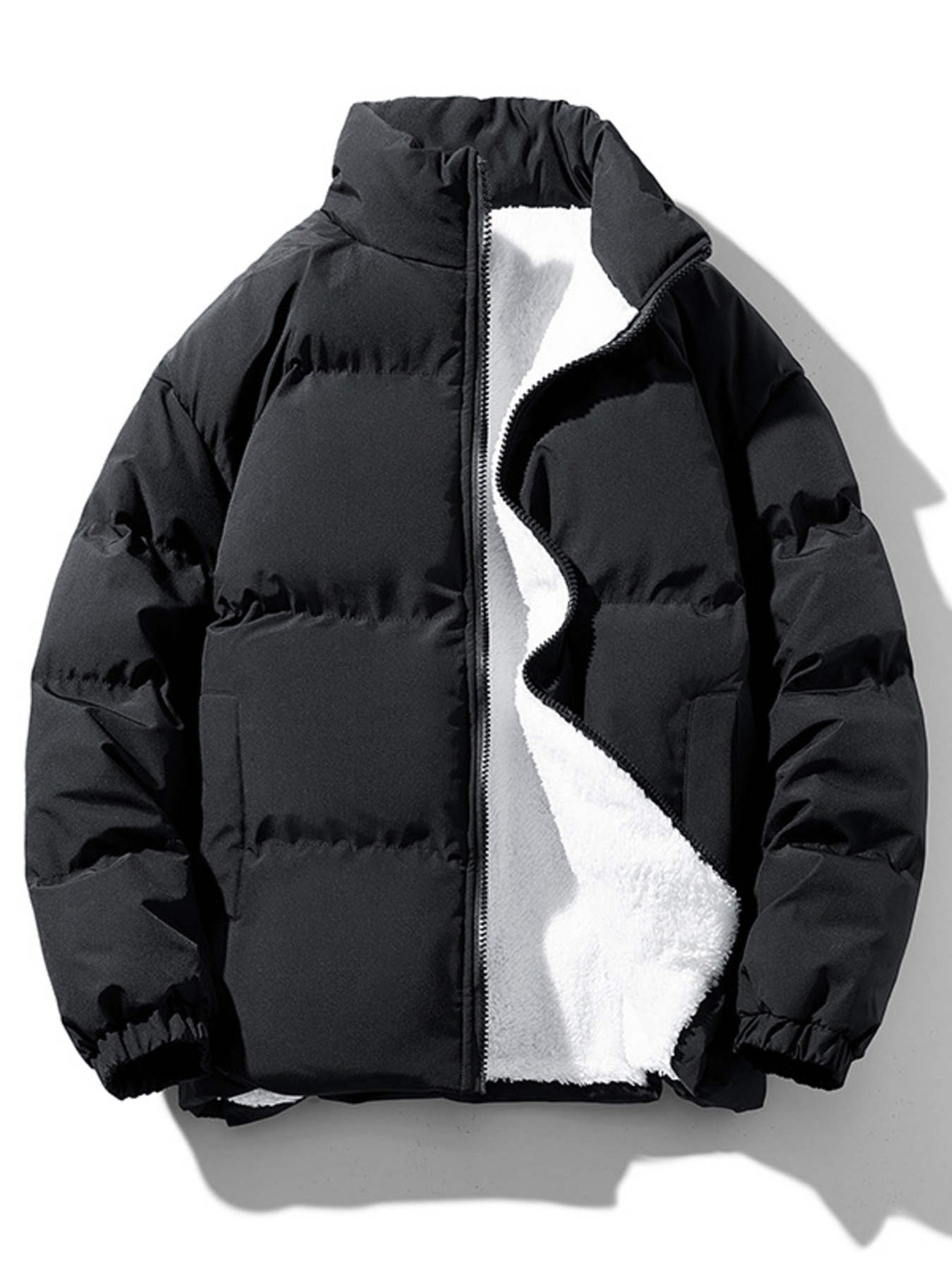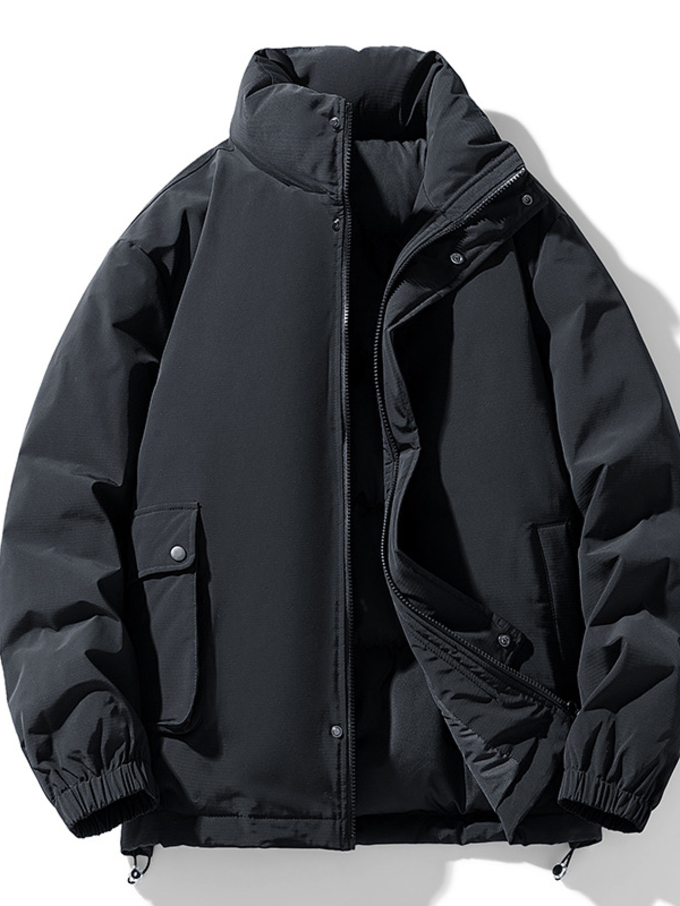 Men's Plus Size Stand Collar Puffer Jacket with Side Zipper Pockets
