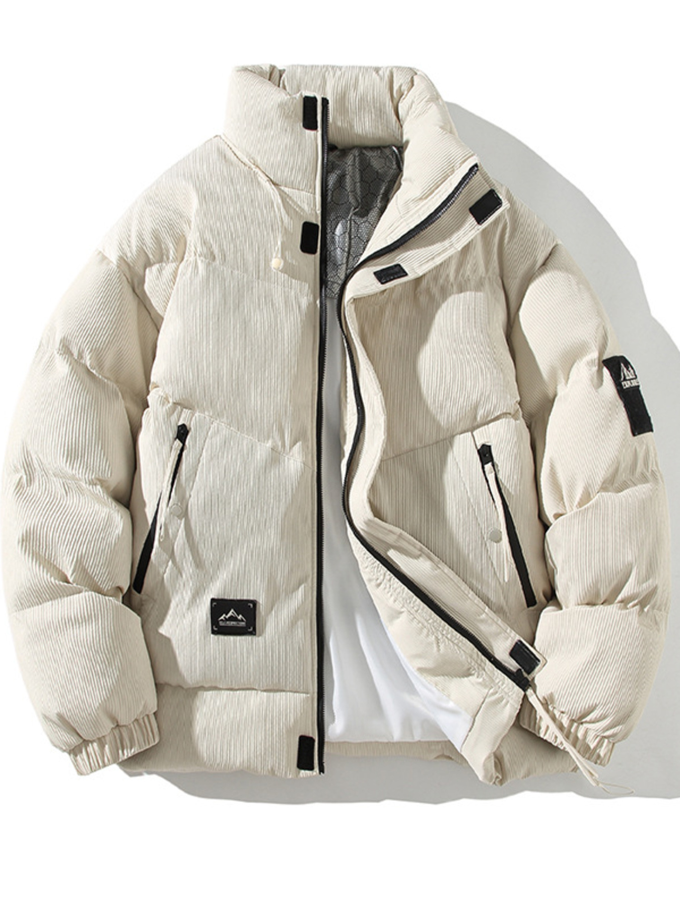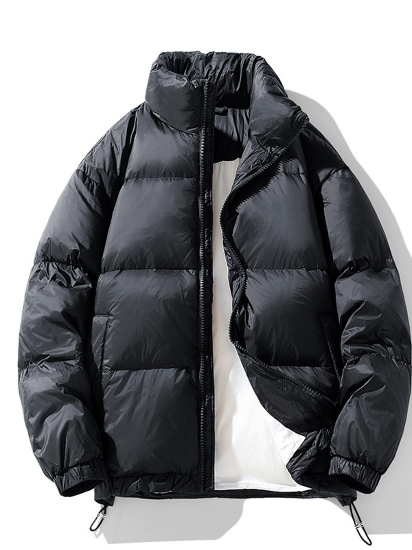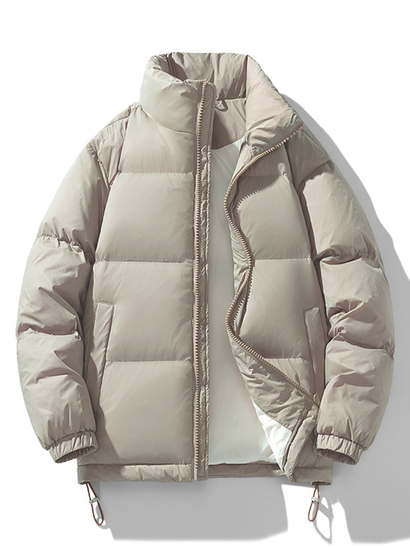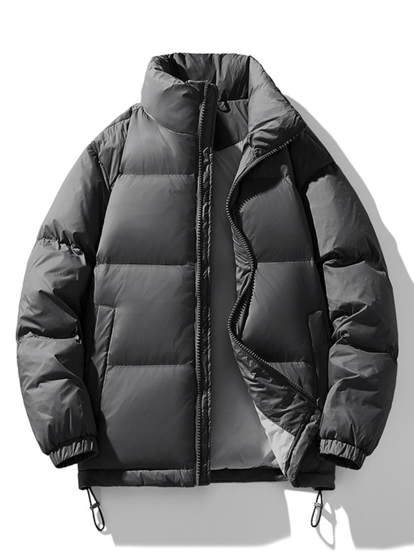 Men's Plus Size Stand Collar Puffer Jacket with Side Zipper Pockets