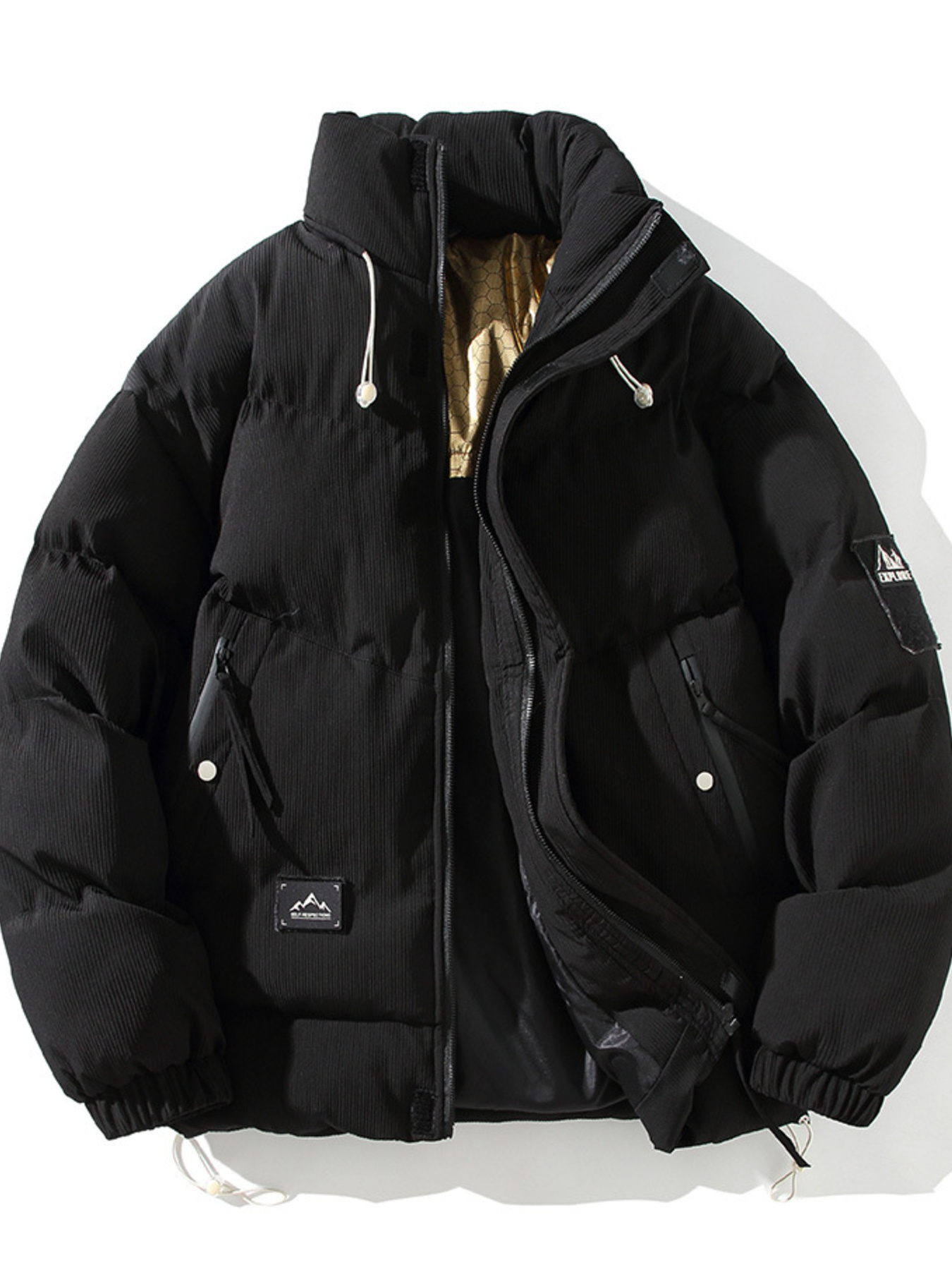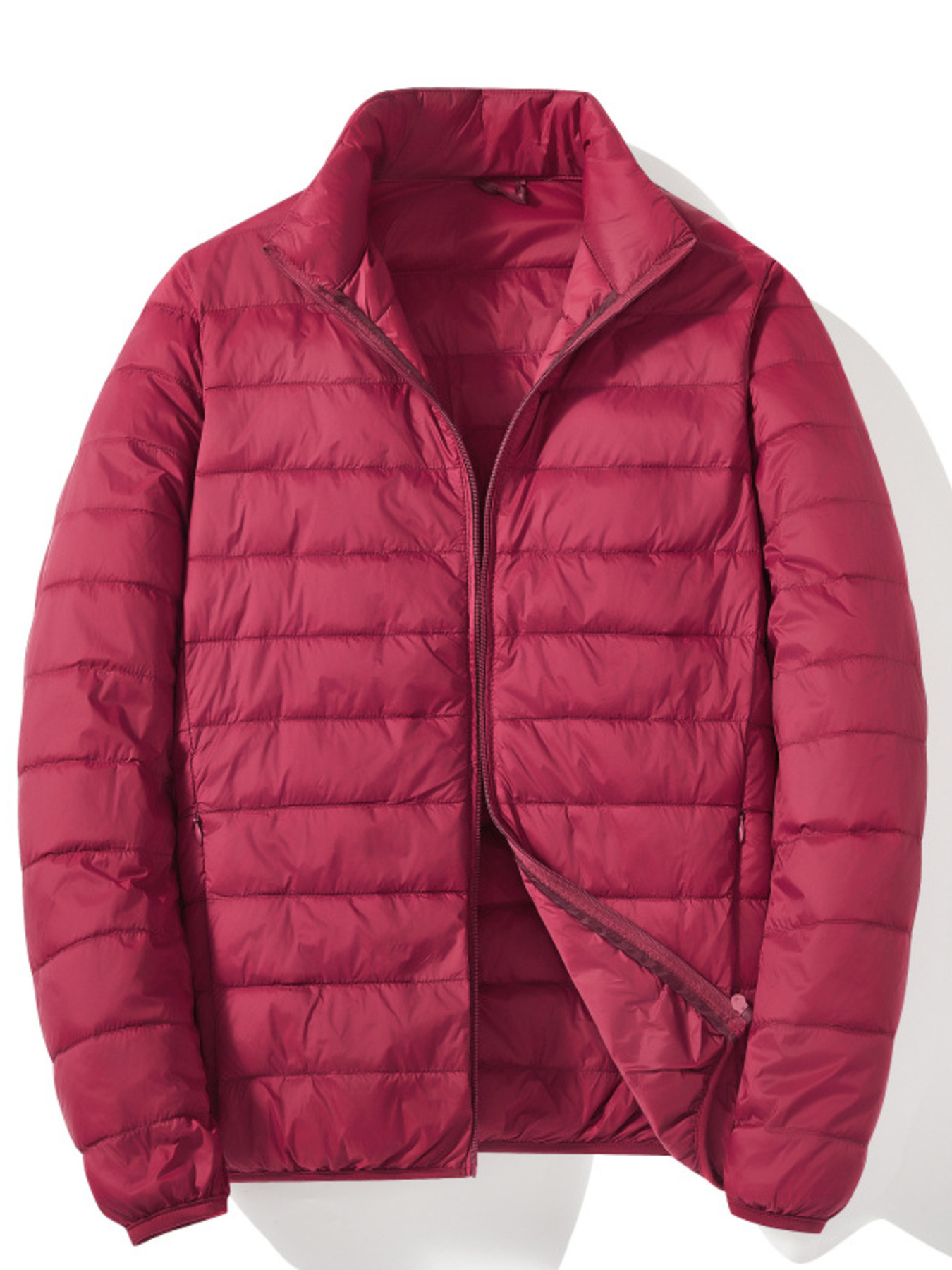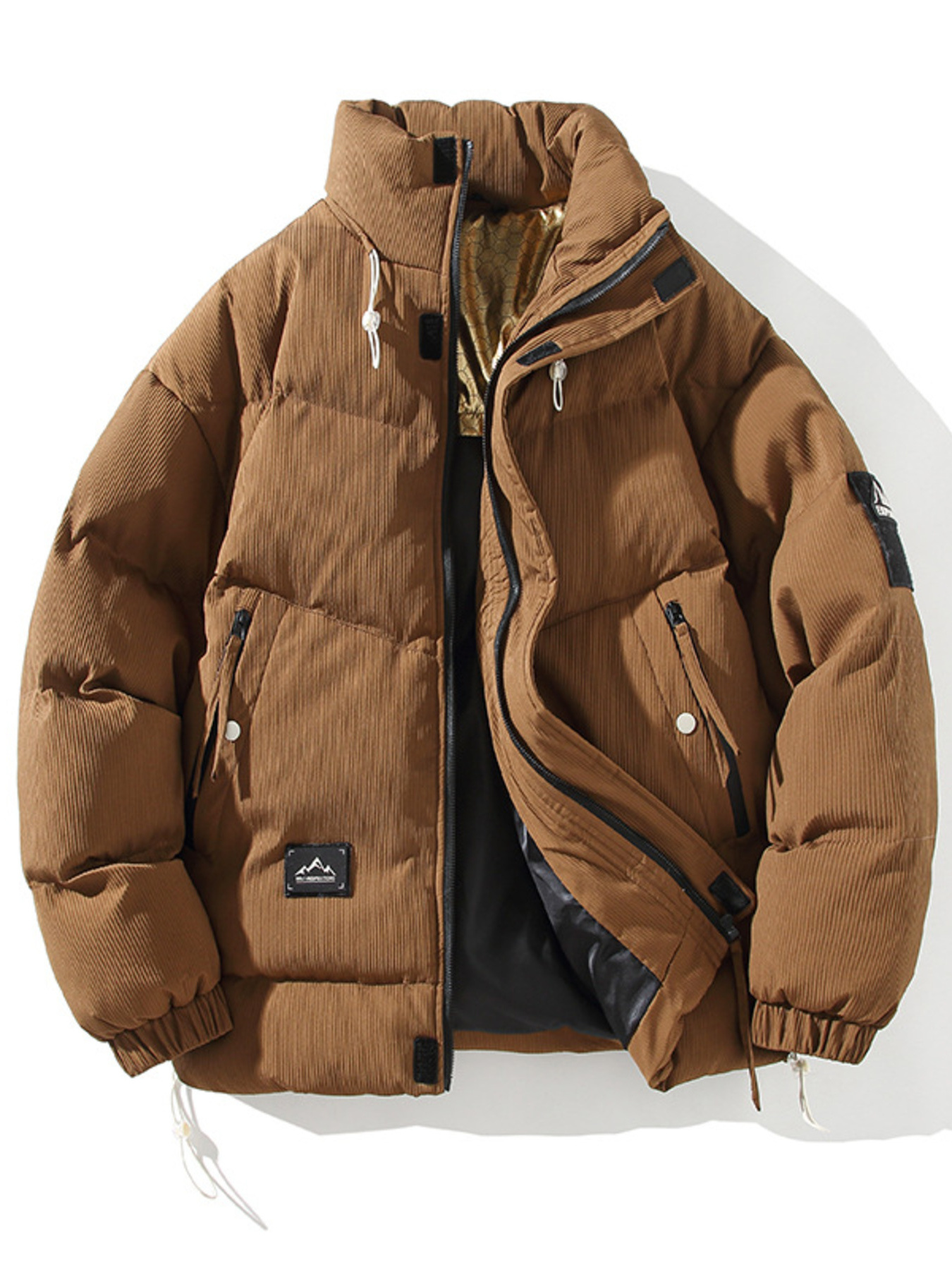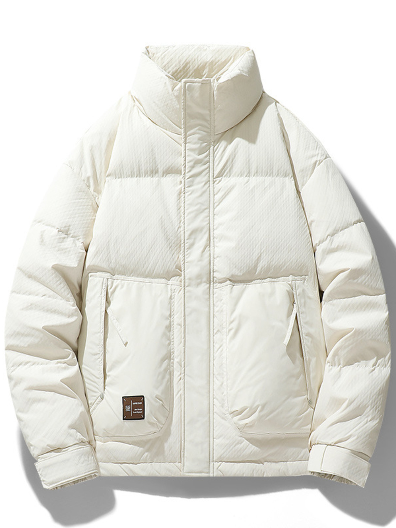 Men's Plus Size Stand Collar Puffer Jacket with Side Zipper Pockets