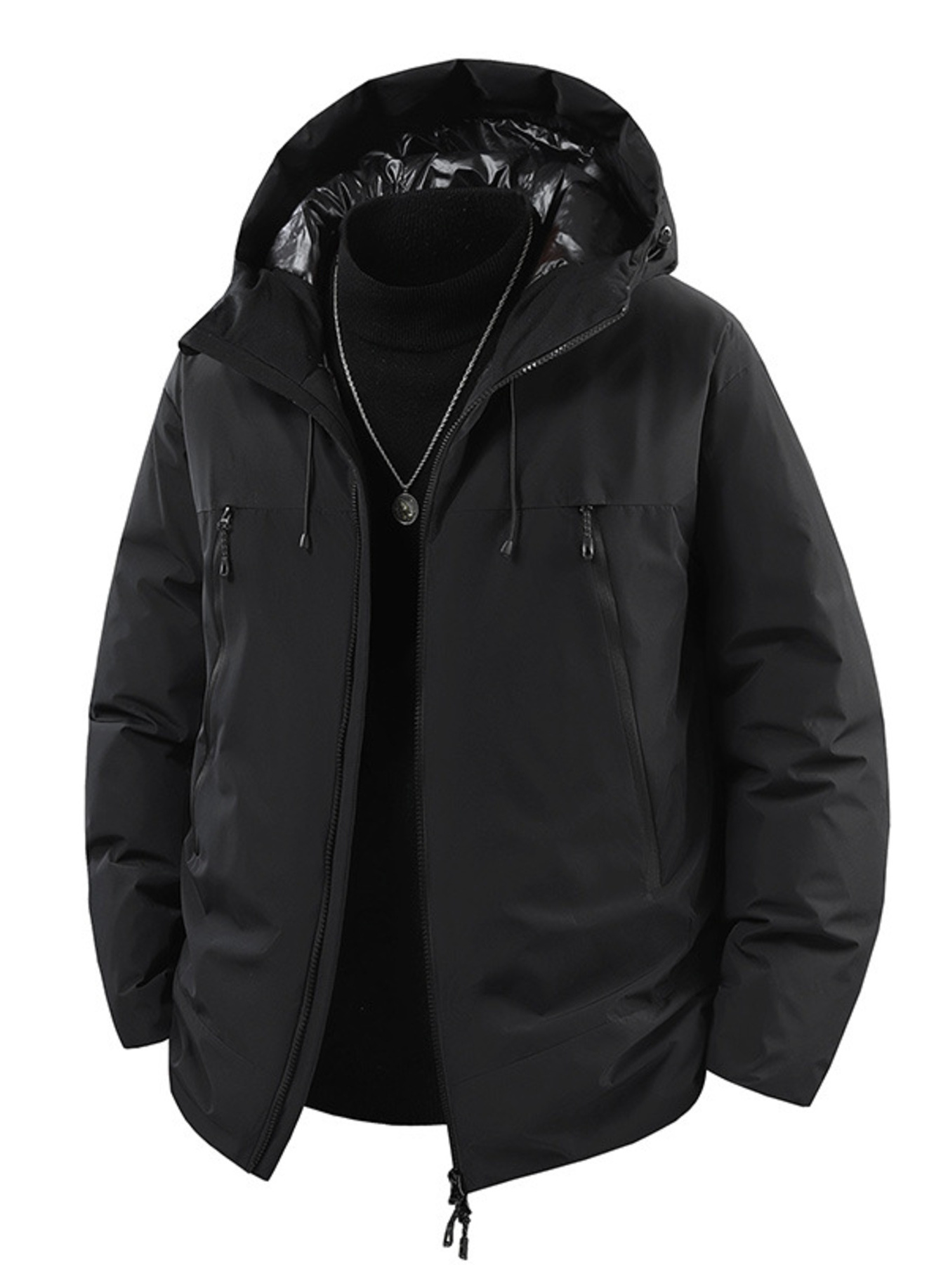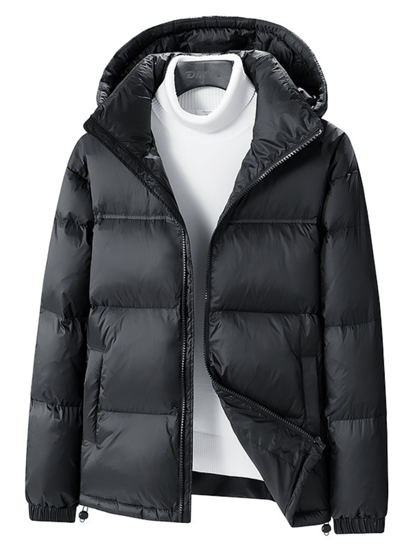 Men's Full Size Hooded Puffer Jacket with Drawstring Hem Plus Size