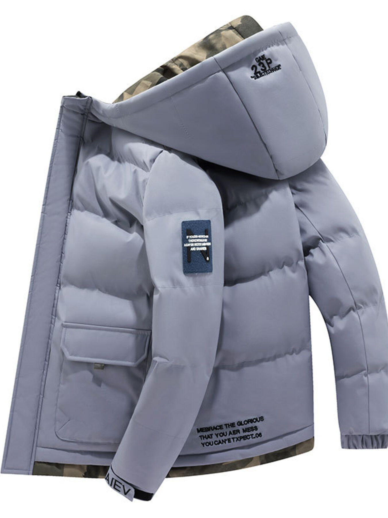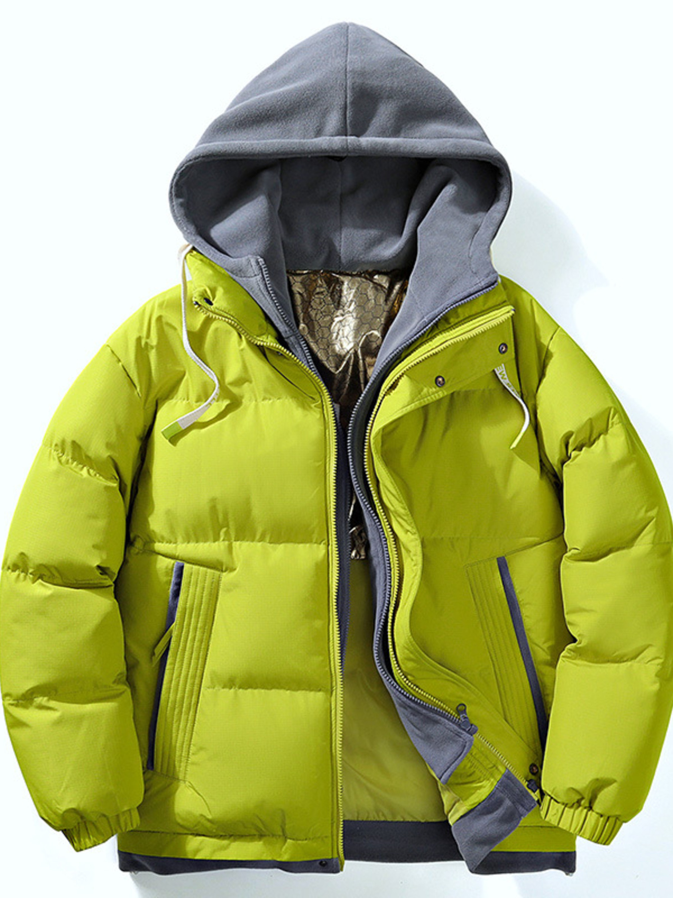Men's Plus Size Zip Up Hooded Contrast Puffer Jacket