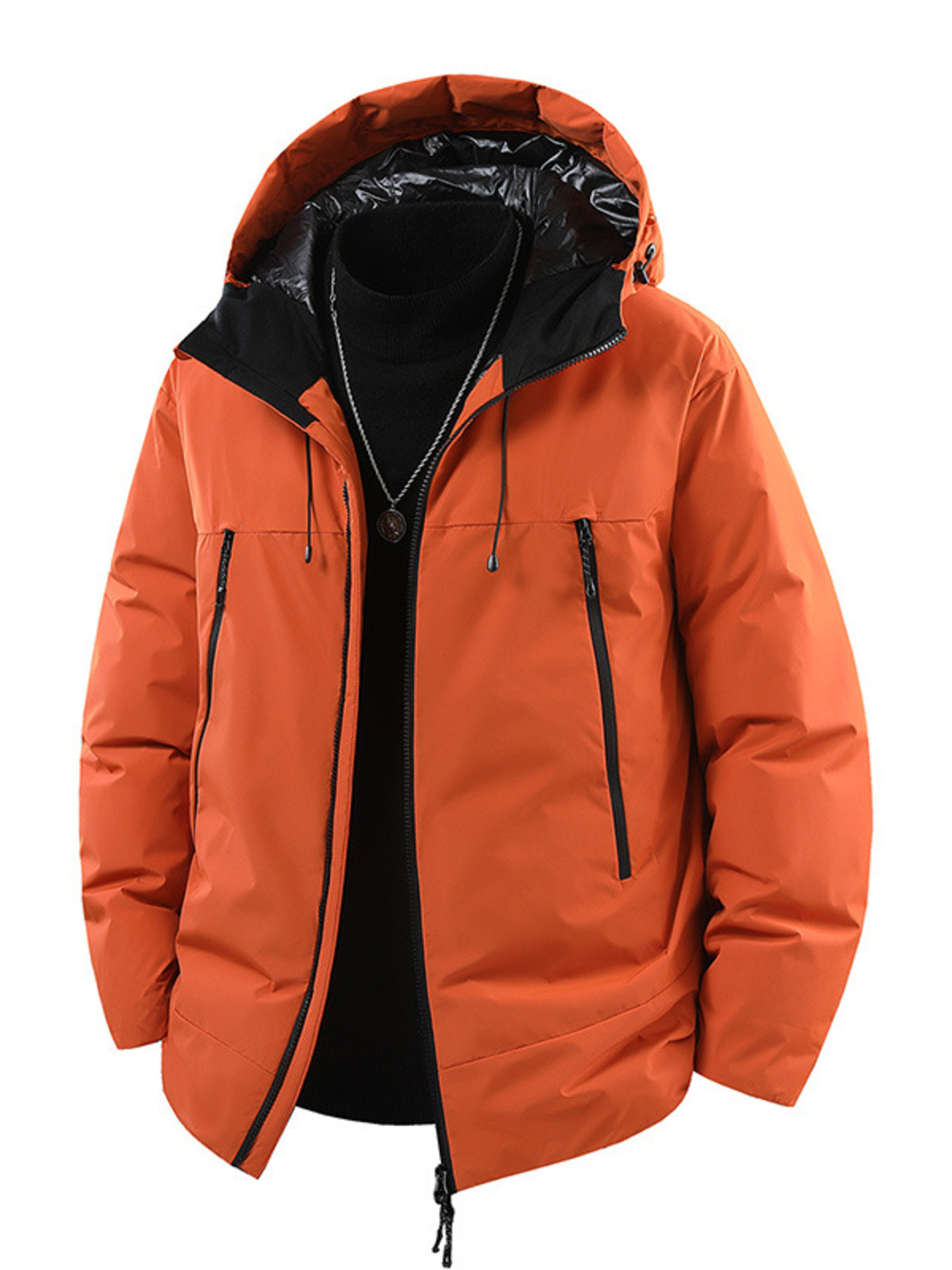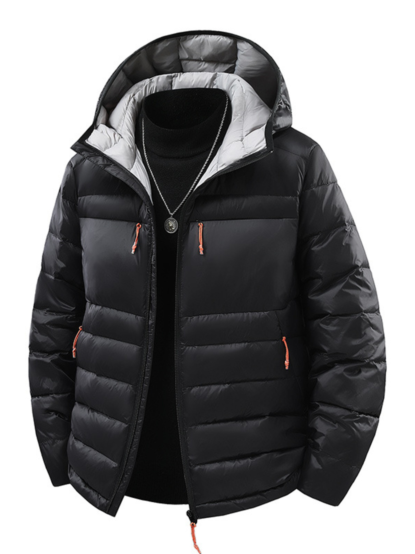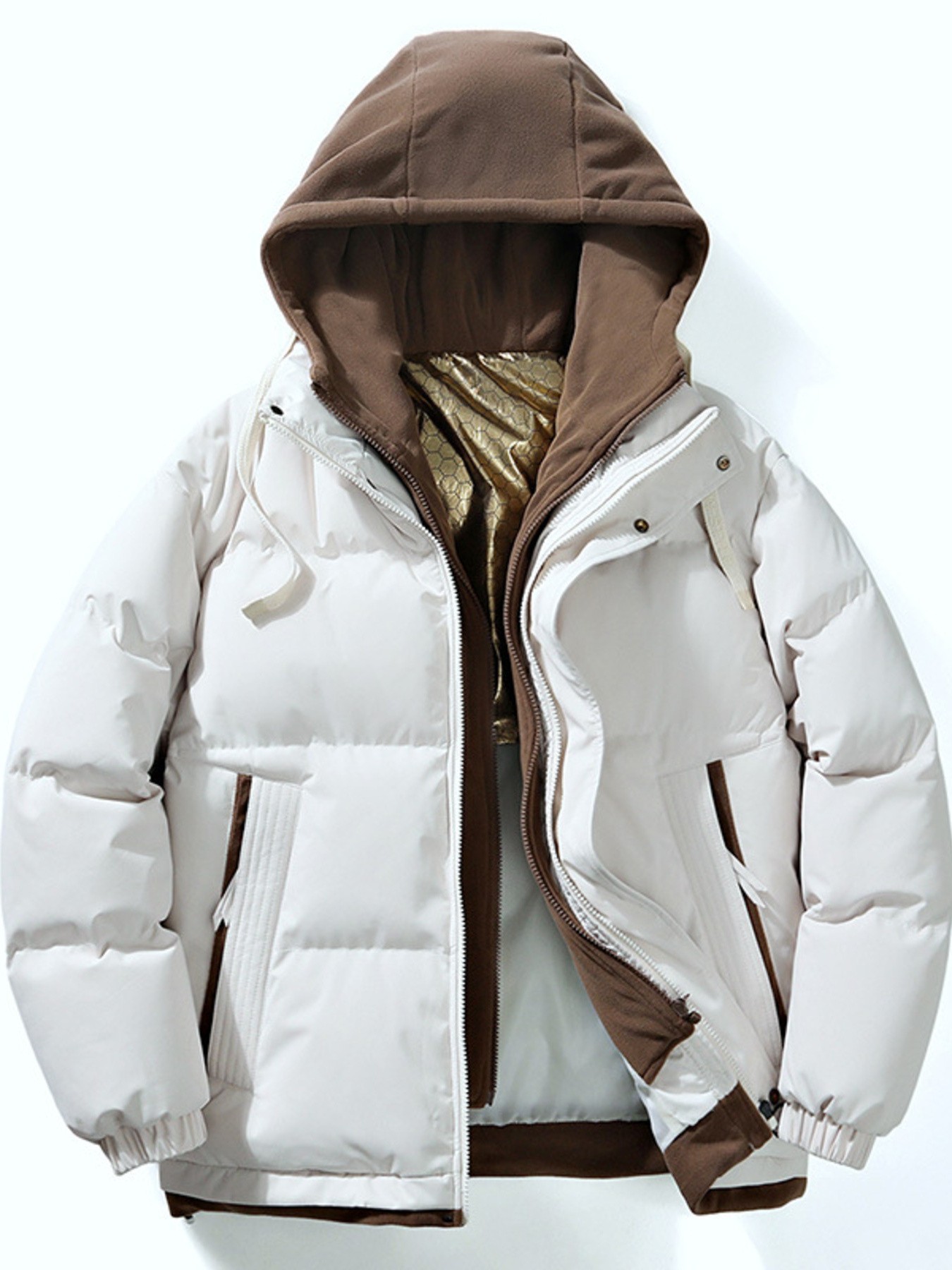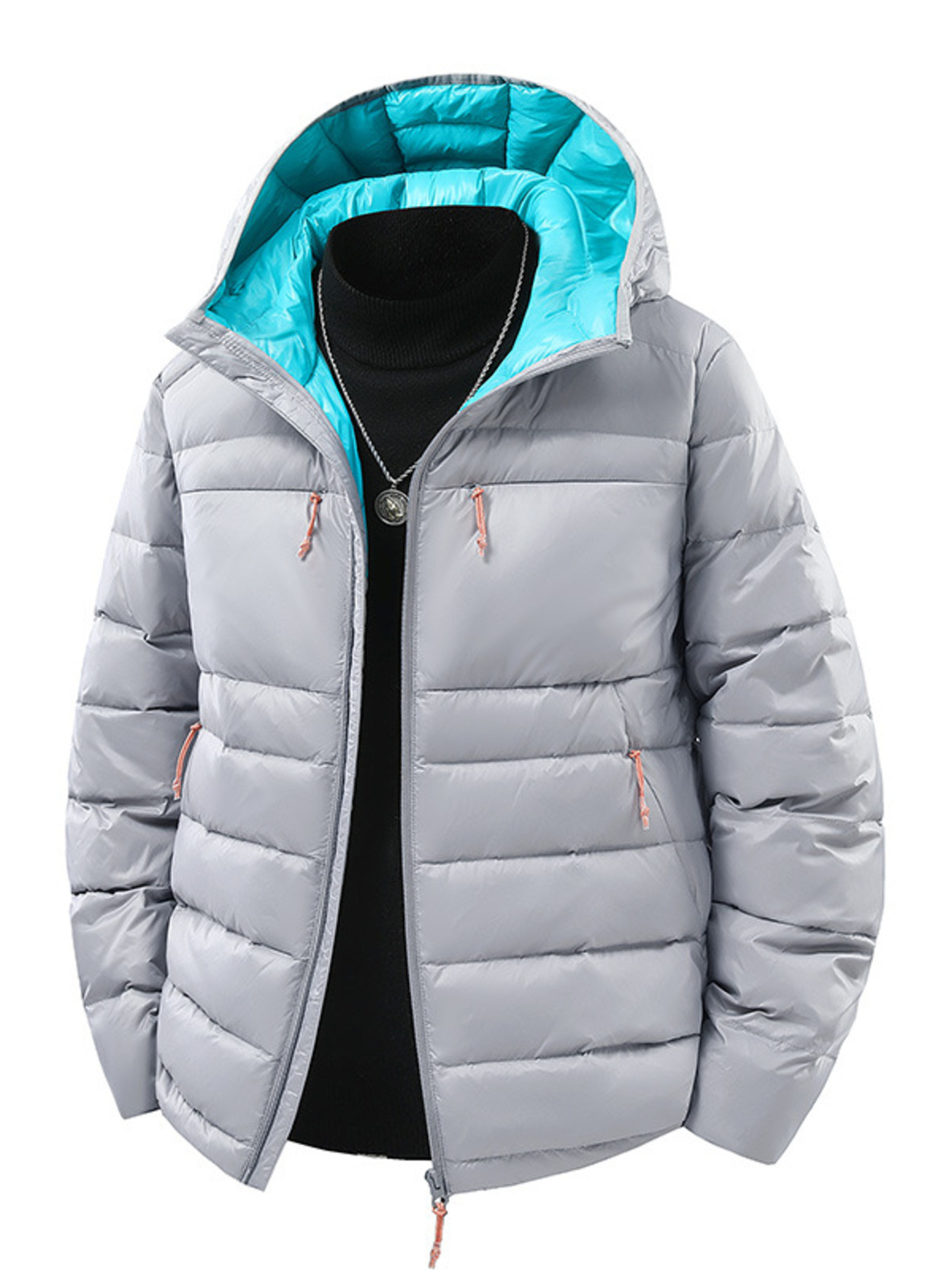 Men's Full Size Contrast Hooded Zip Up Down Jacket Plus Size