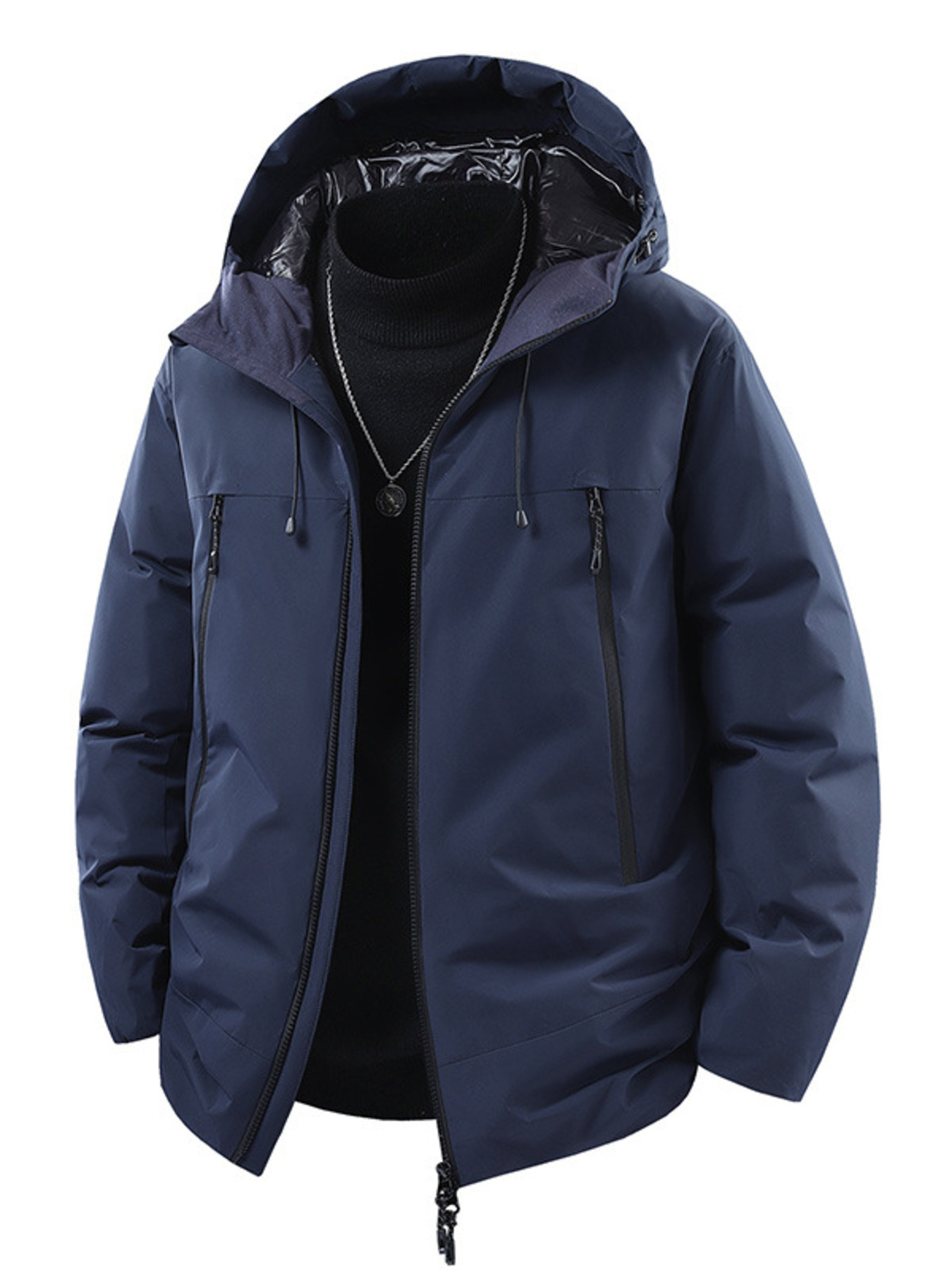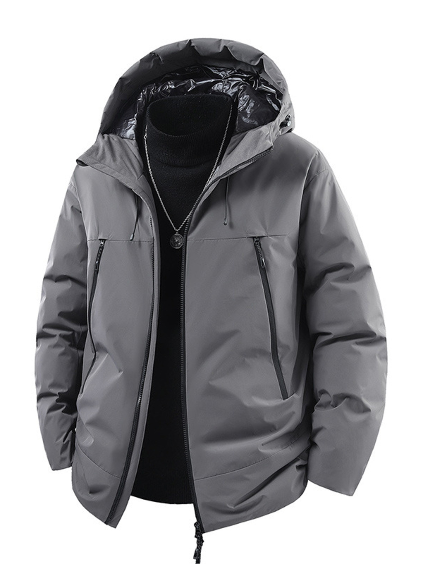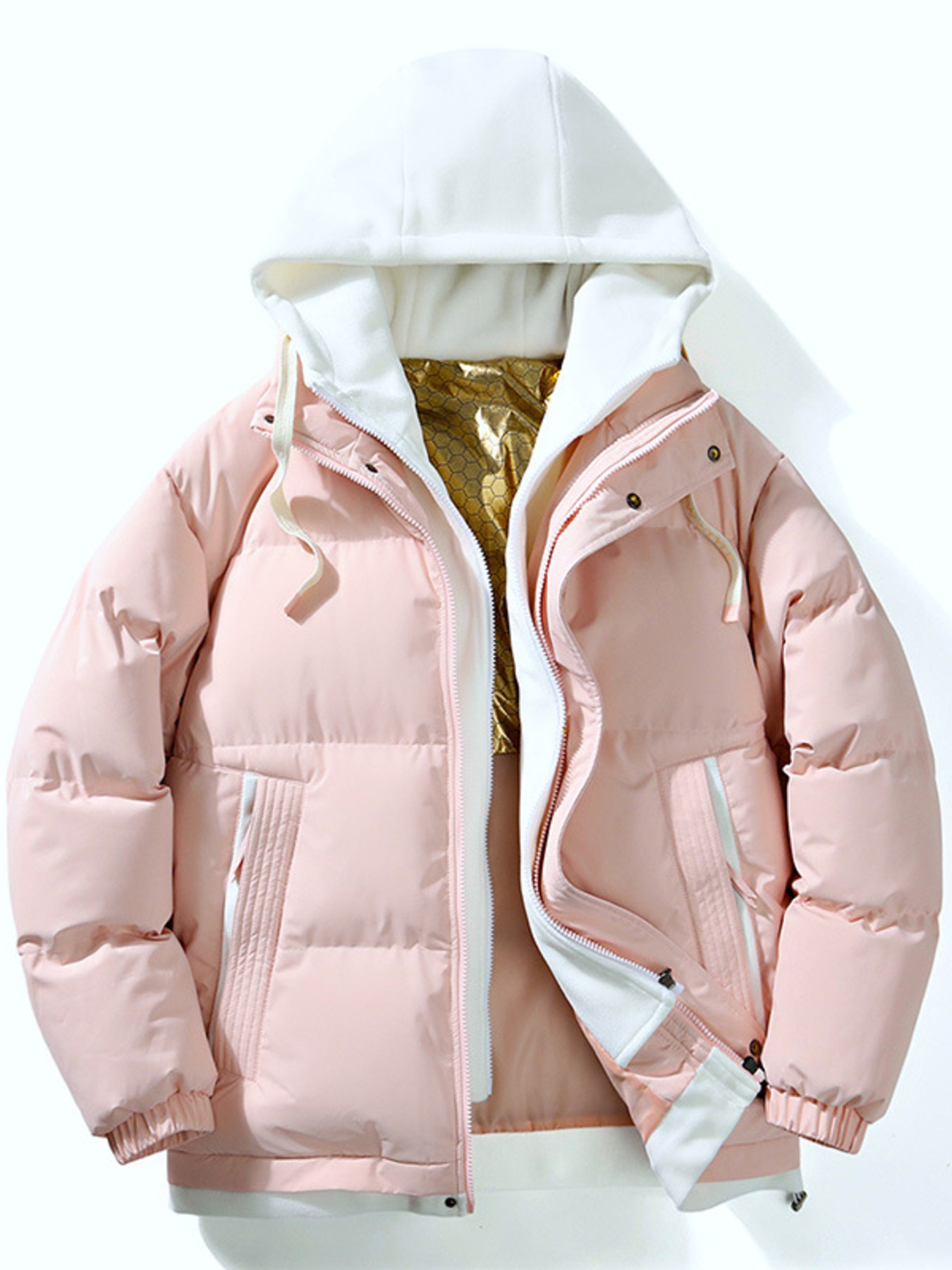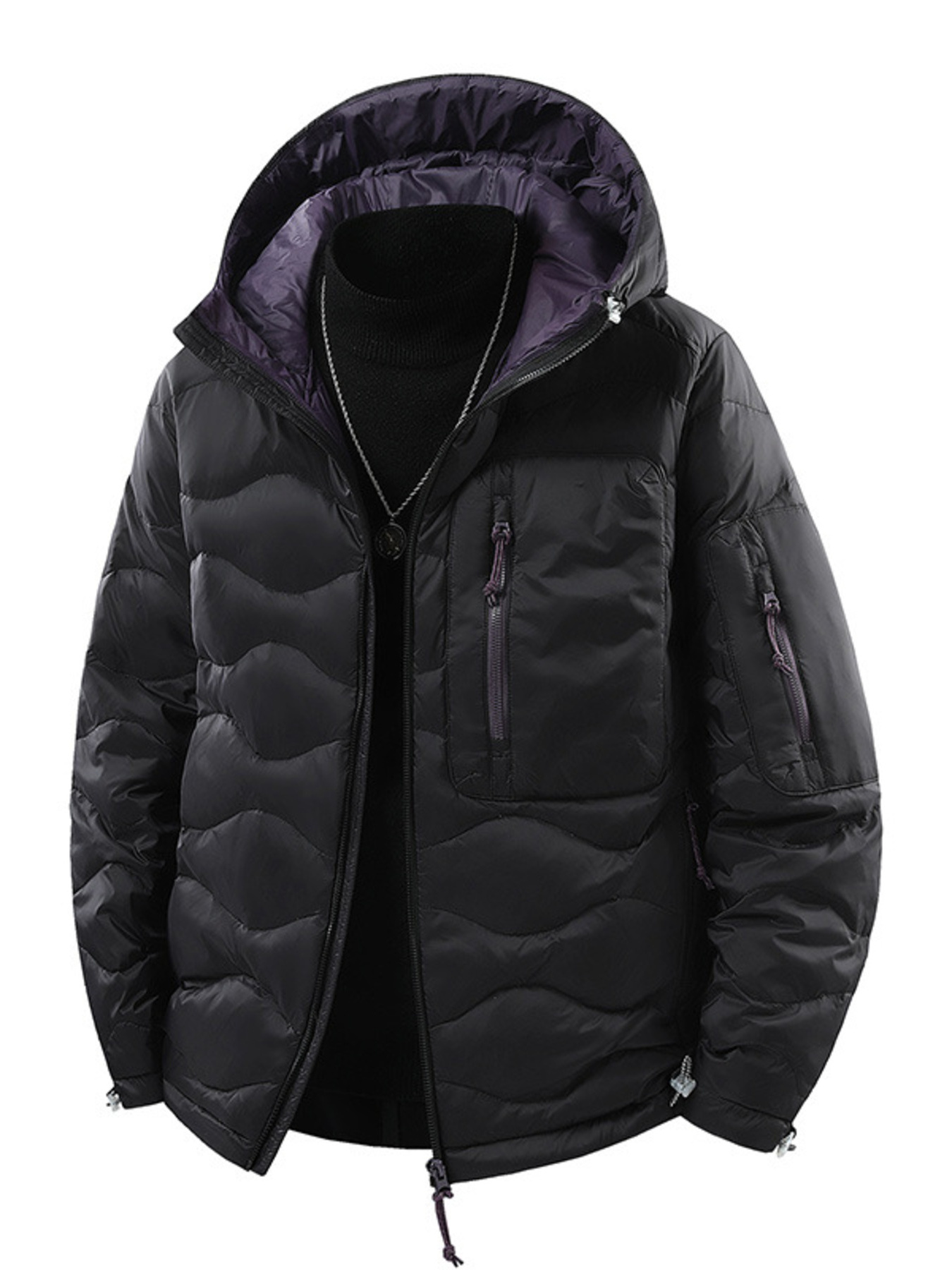 Men's Full Size Contrast Hooded Zip Up Down Jacket Plus Size