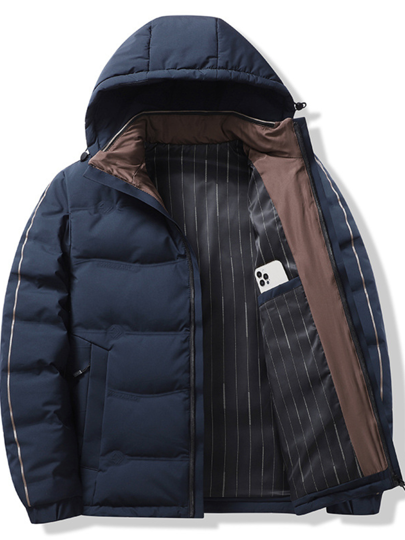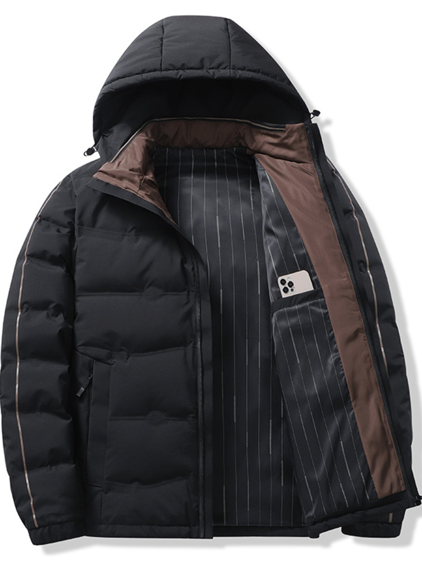 Men's Plus Size Striped Padded Puffer Jacket