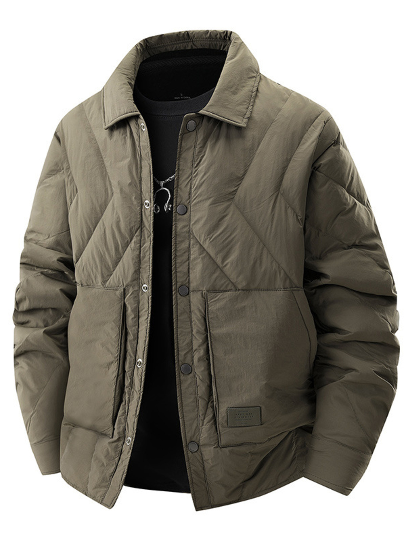 Men's Plus Size Quilted Padded Snap Down Jacket