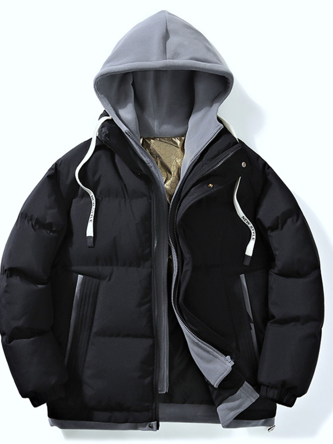 Men's Full Size Two-Tone Hooded Puffer Jacket Plus Size
