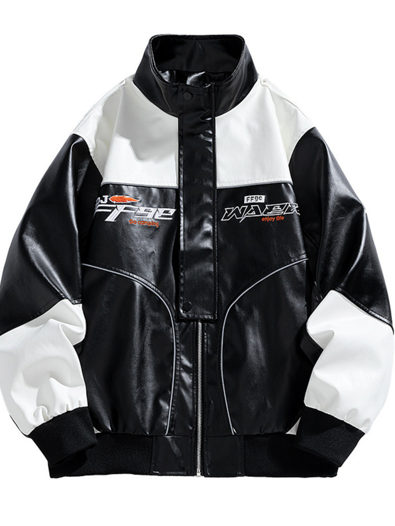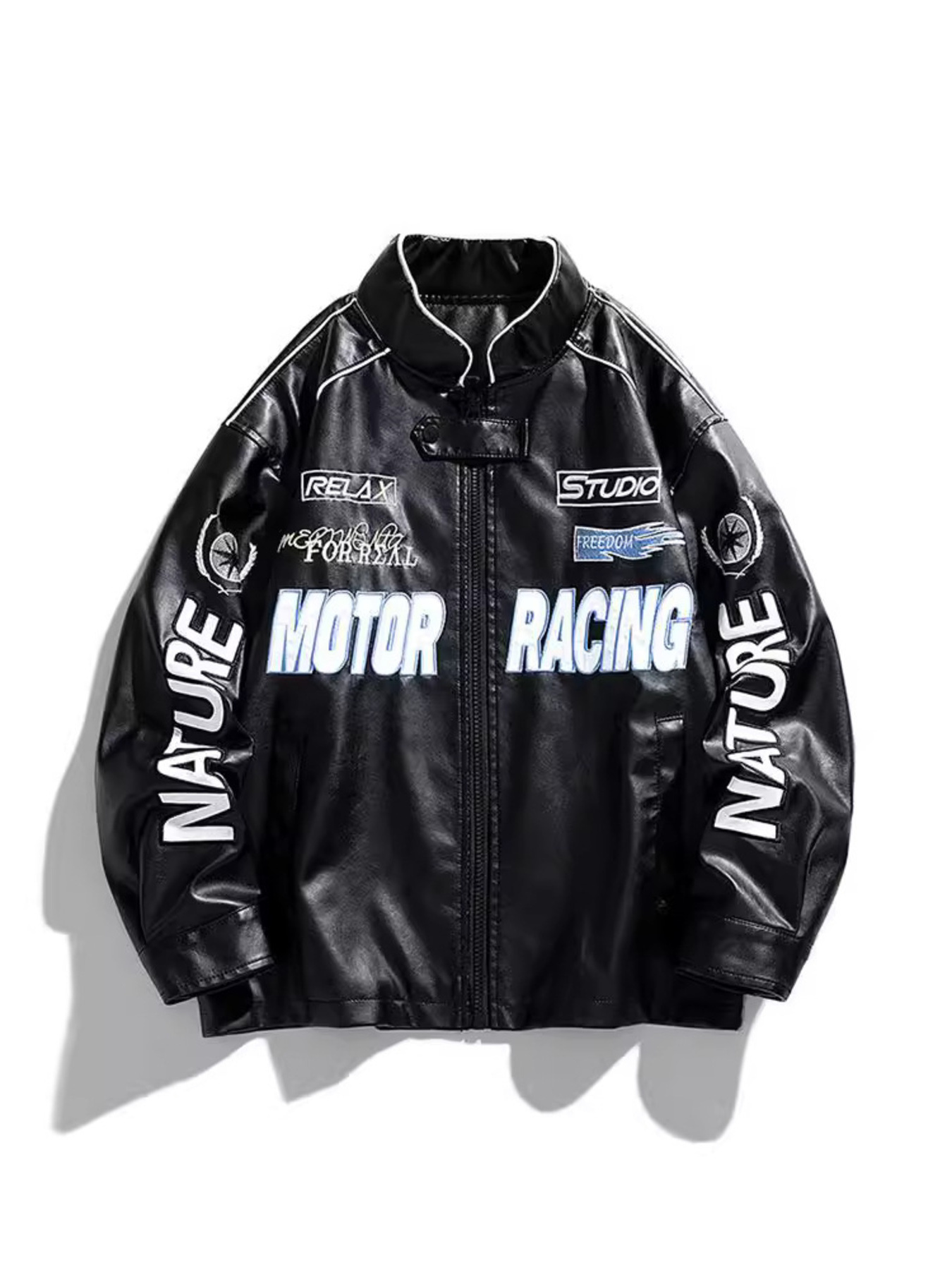 Men's Plus Size Zip Up Motor Racing Leather Jacket