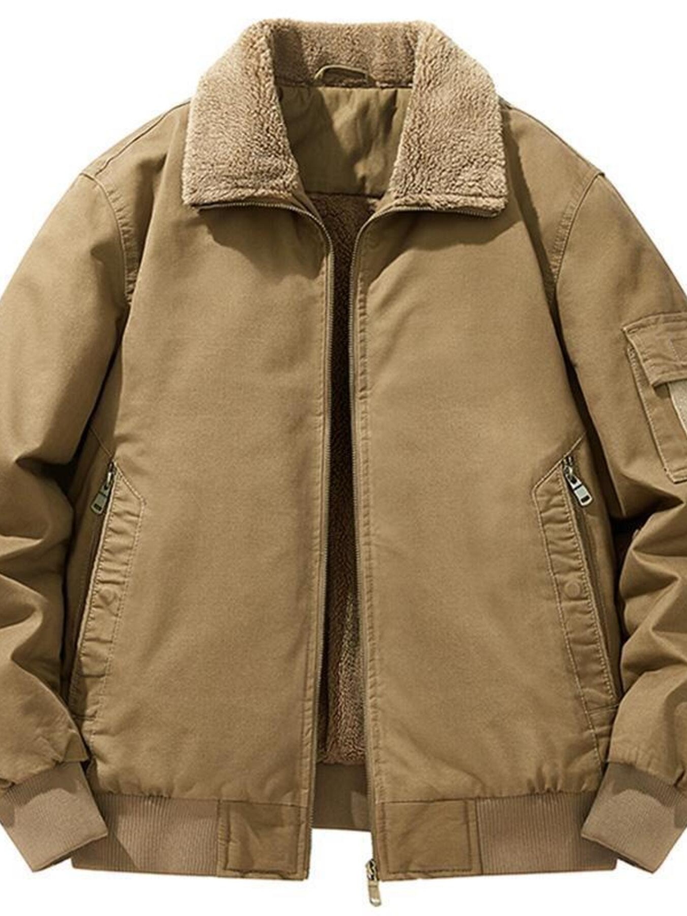 Men's Plus Size Warm Sherpa Lined Zip Up Jacket