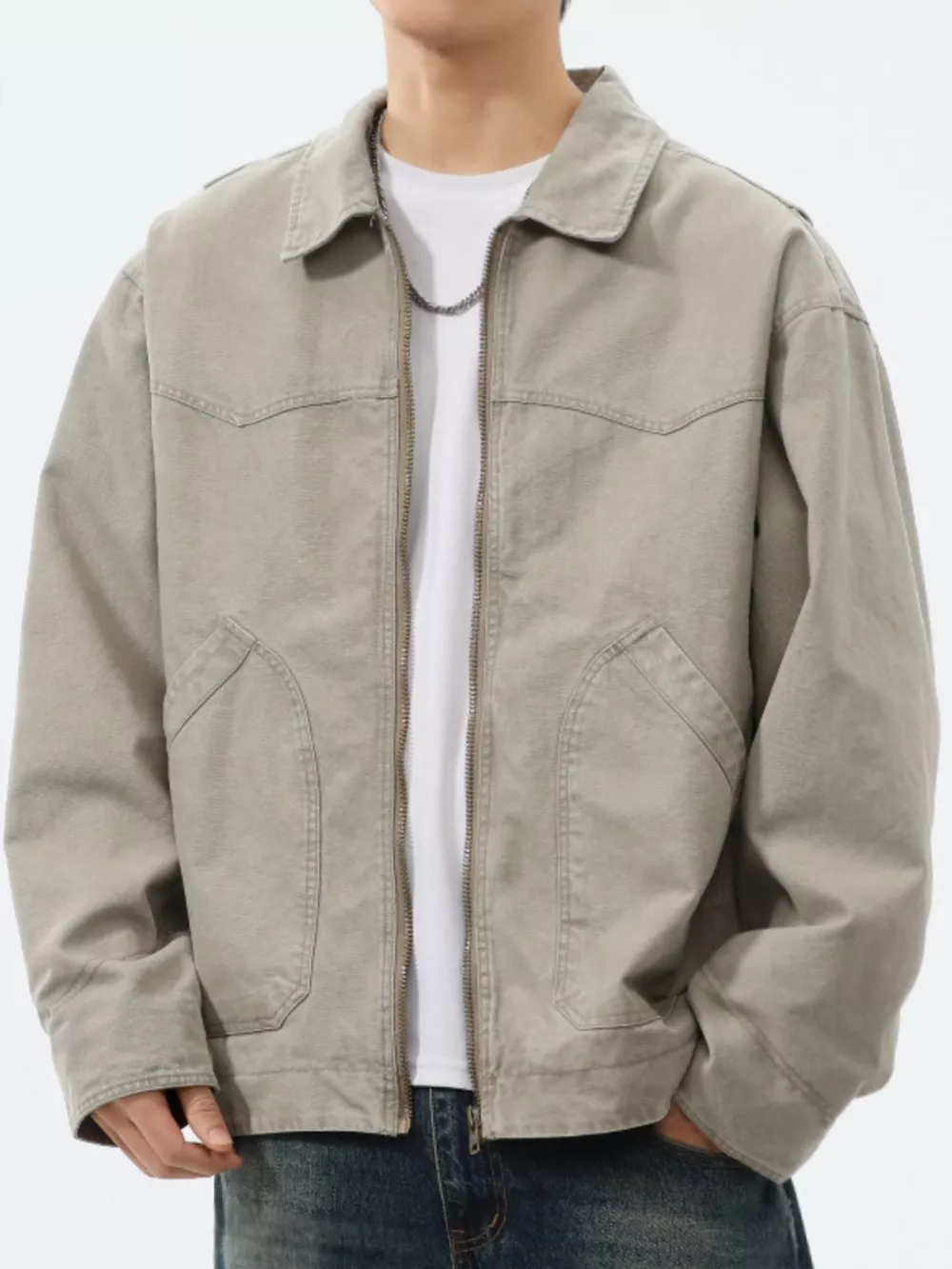 Men's Plus Size Wash Zip-Up Jacket