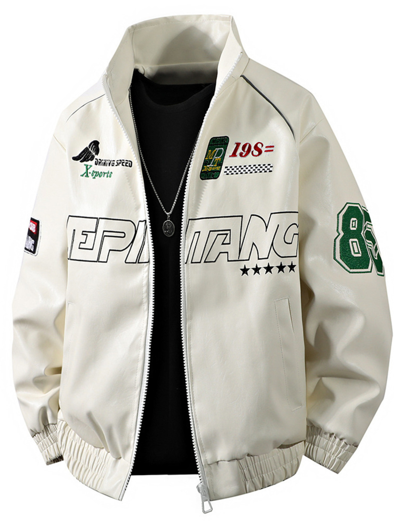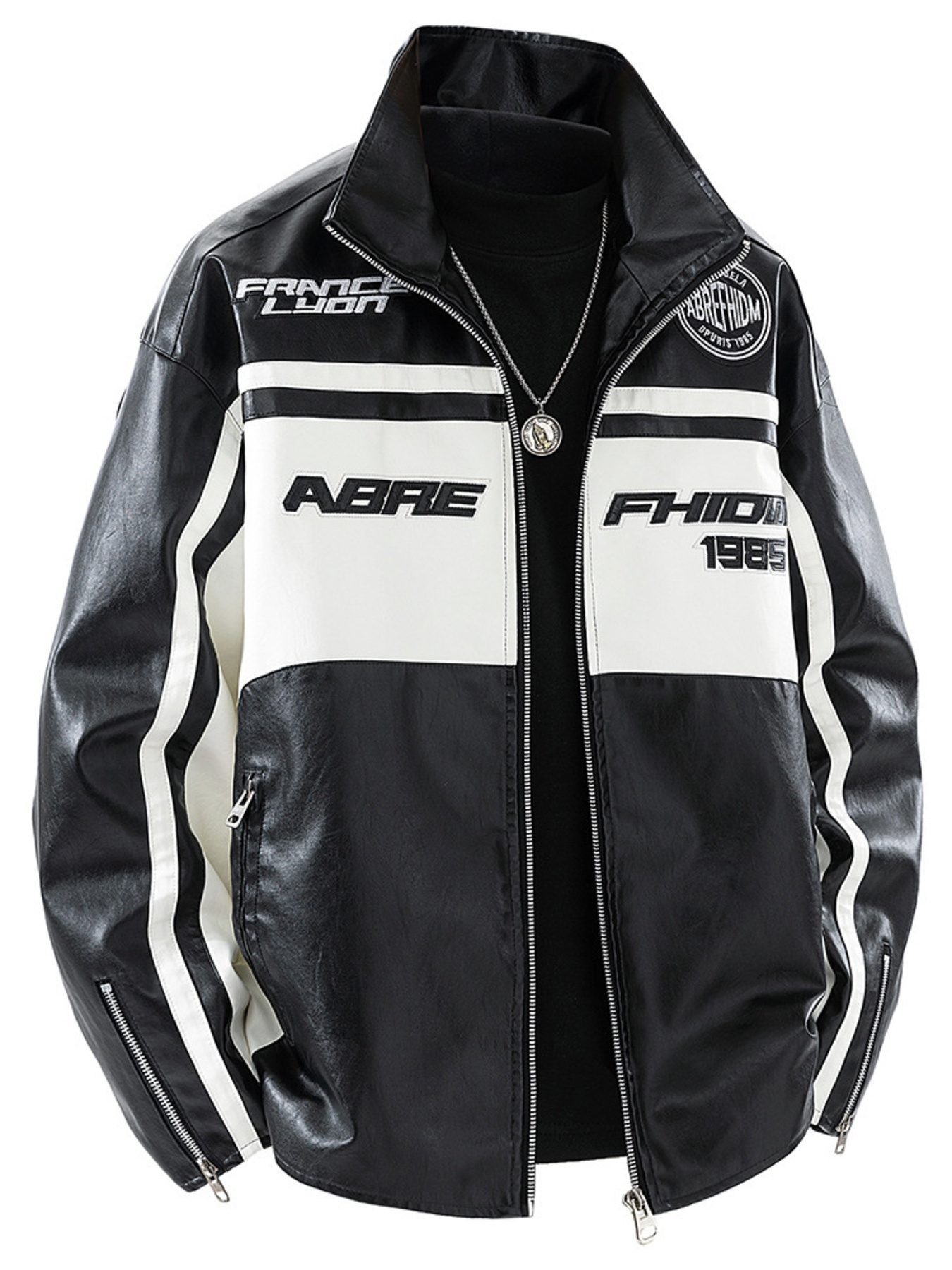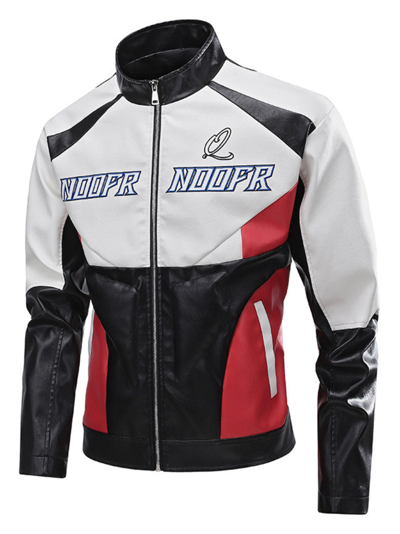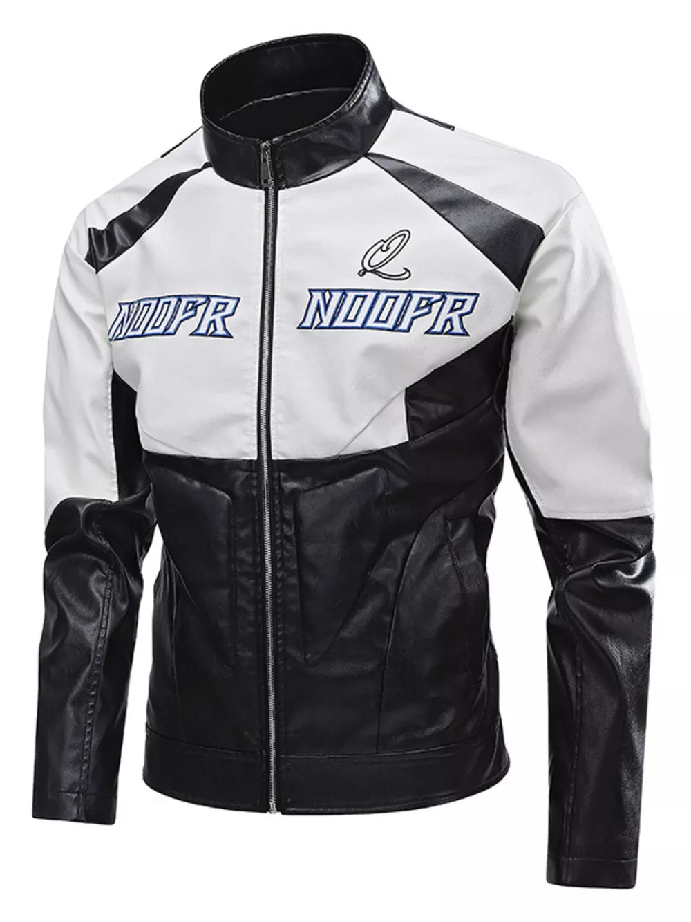 Men's Plus Size Two-Tone Zip Up Leather Jacket