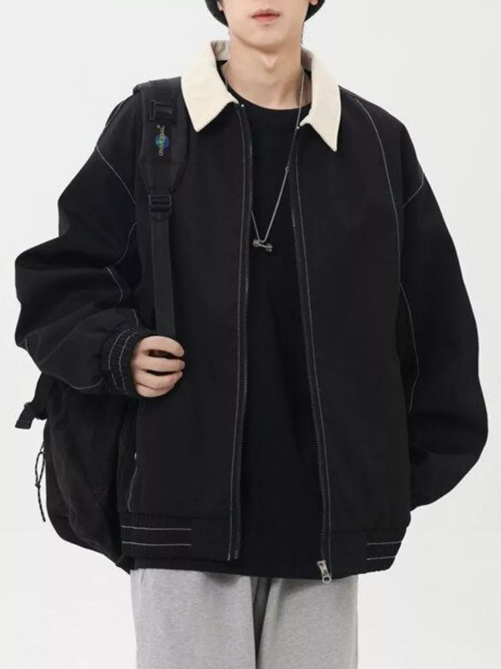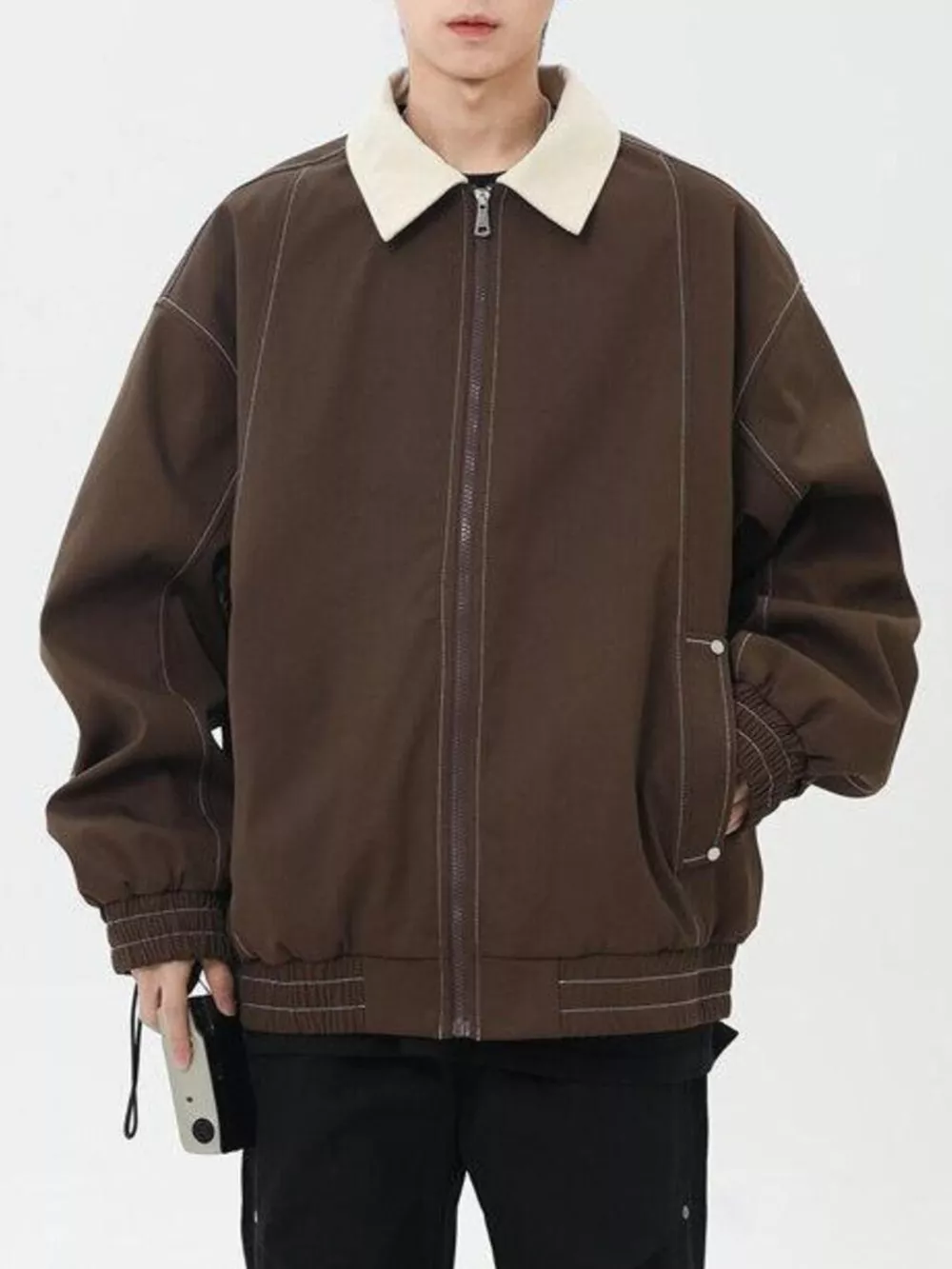 Men's Plus Size Collared Neck Zip-Up Jacket