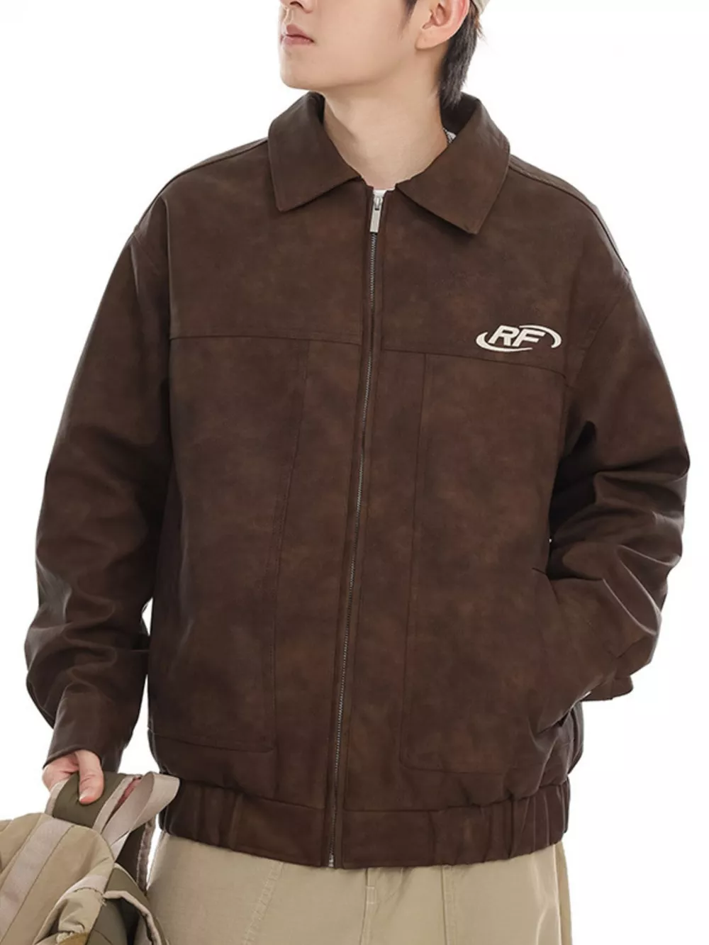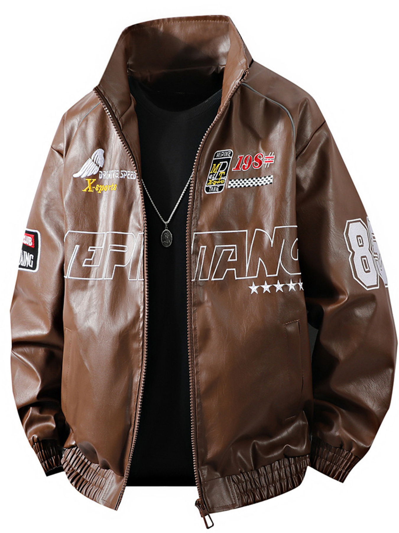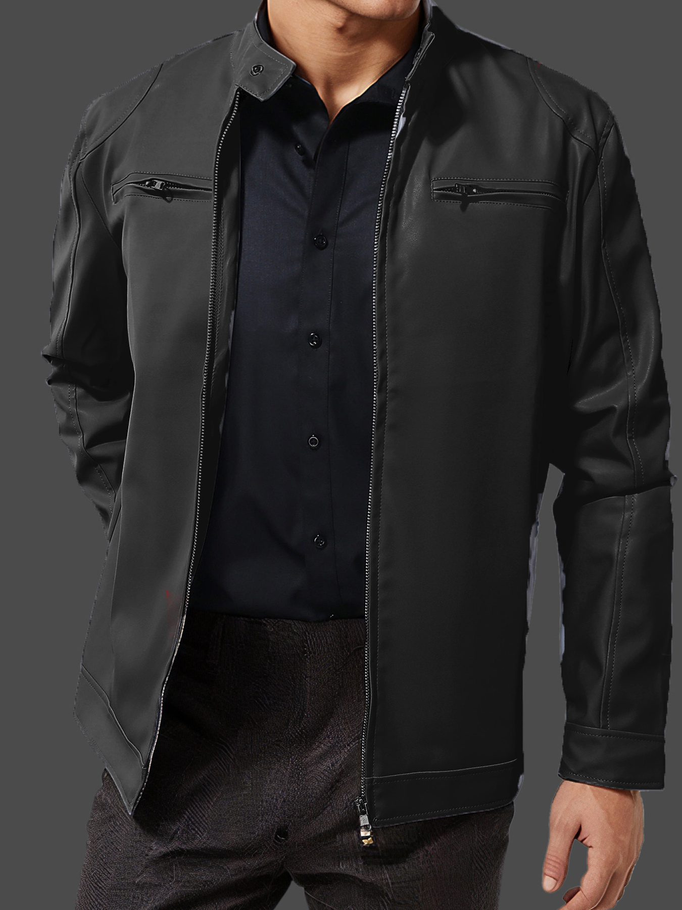 Men's Plus Size Zip Up Leather Jacket