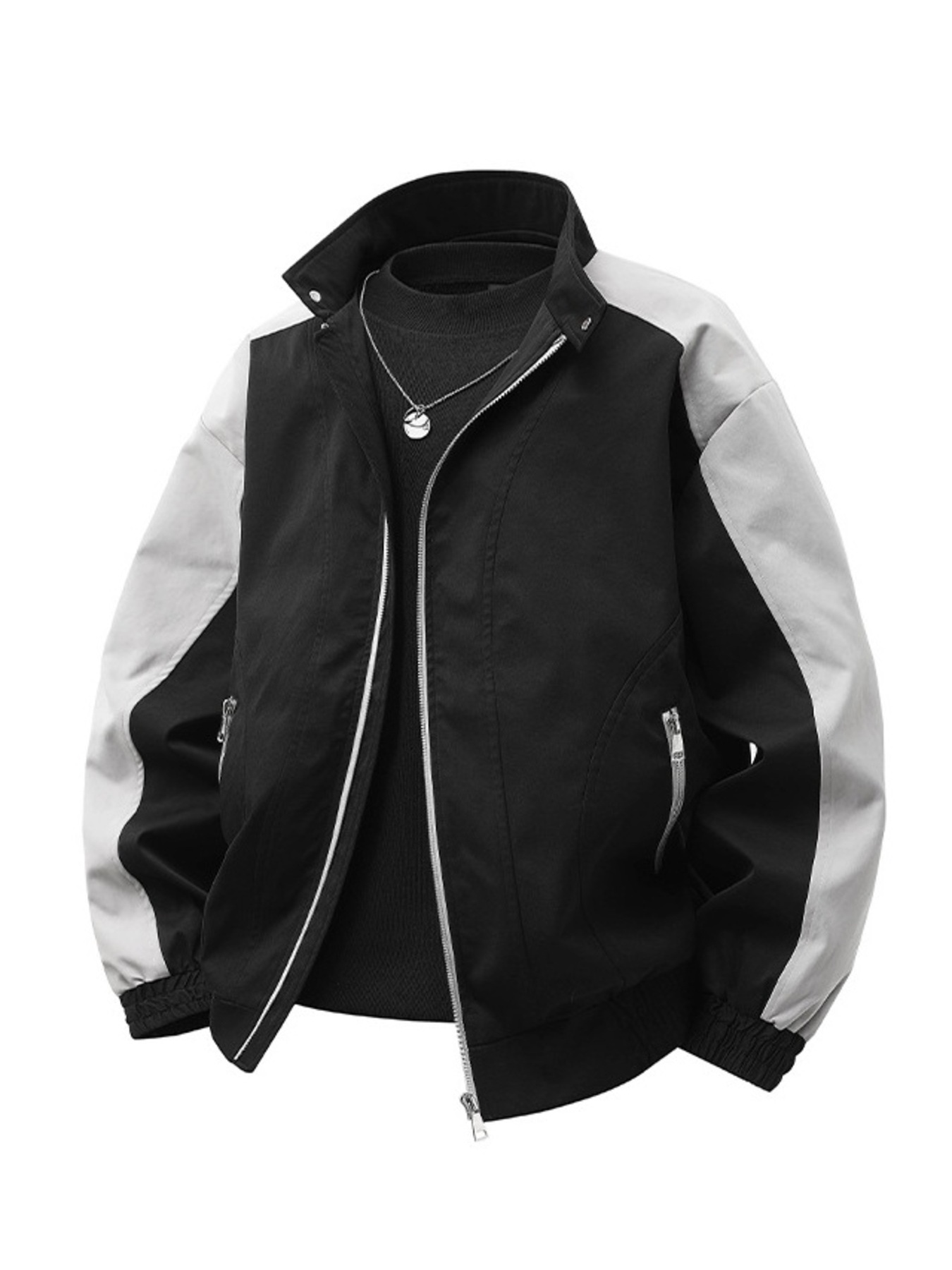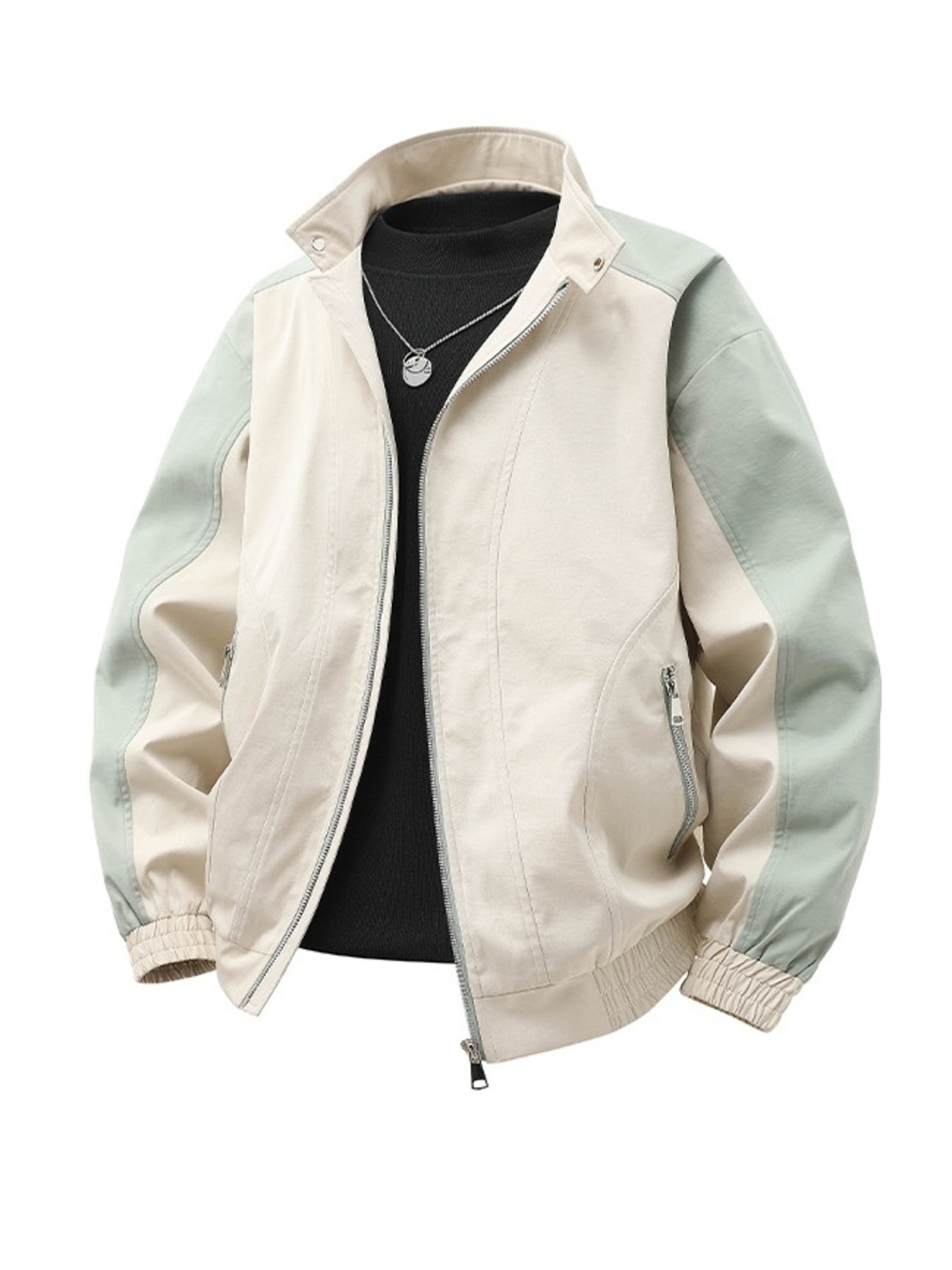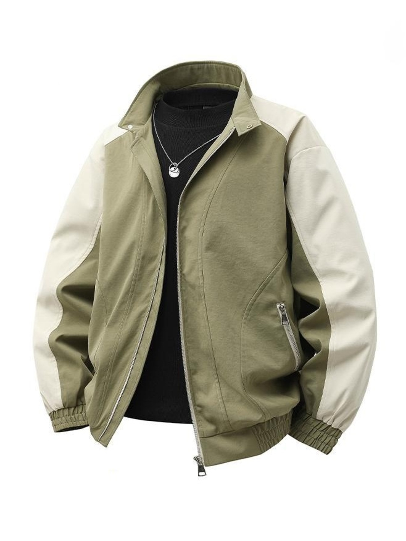 Men's Plus Size Color Block Casual Bomber Jacket