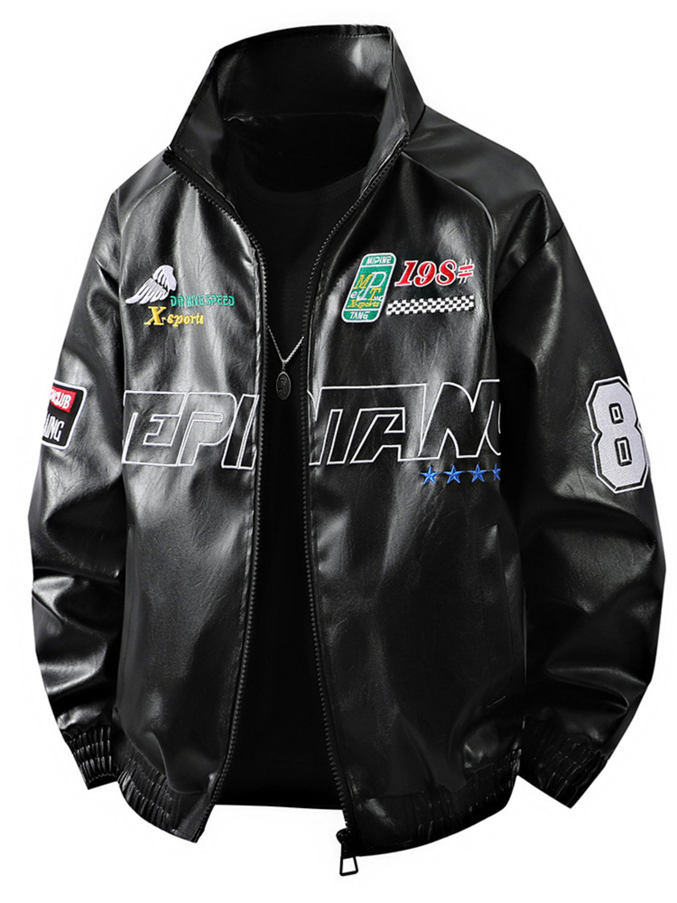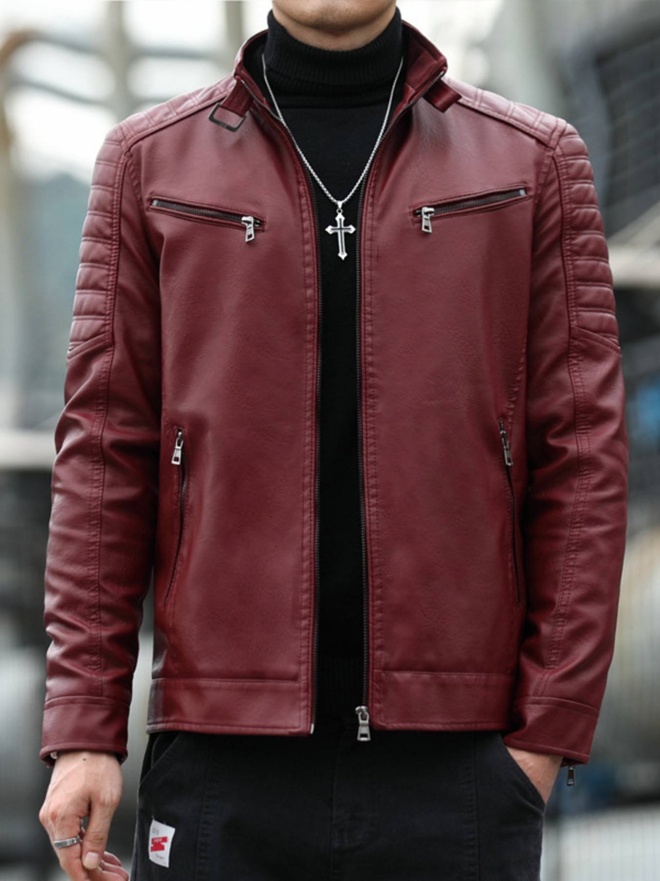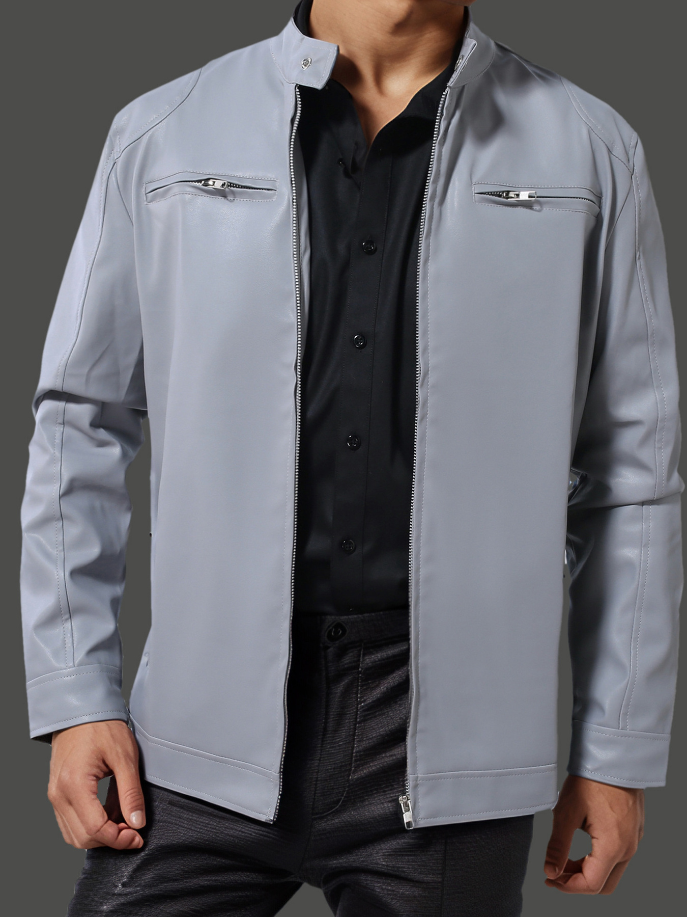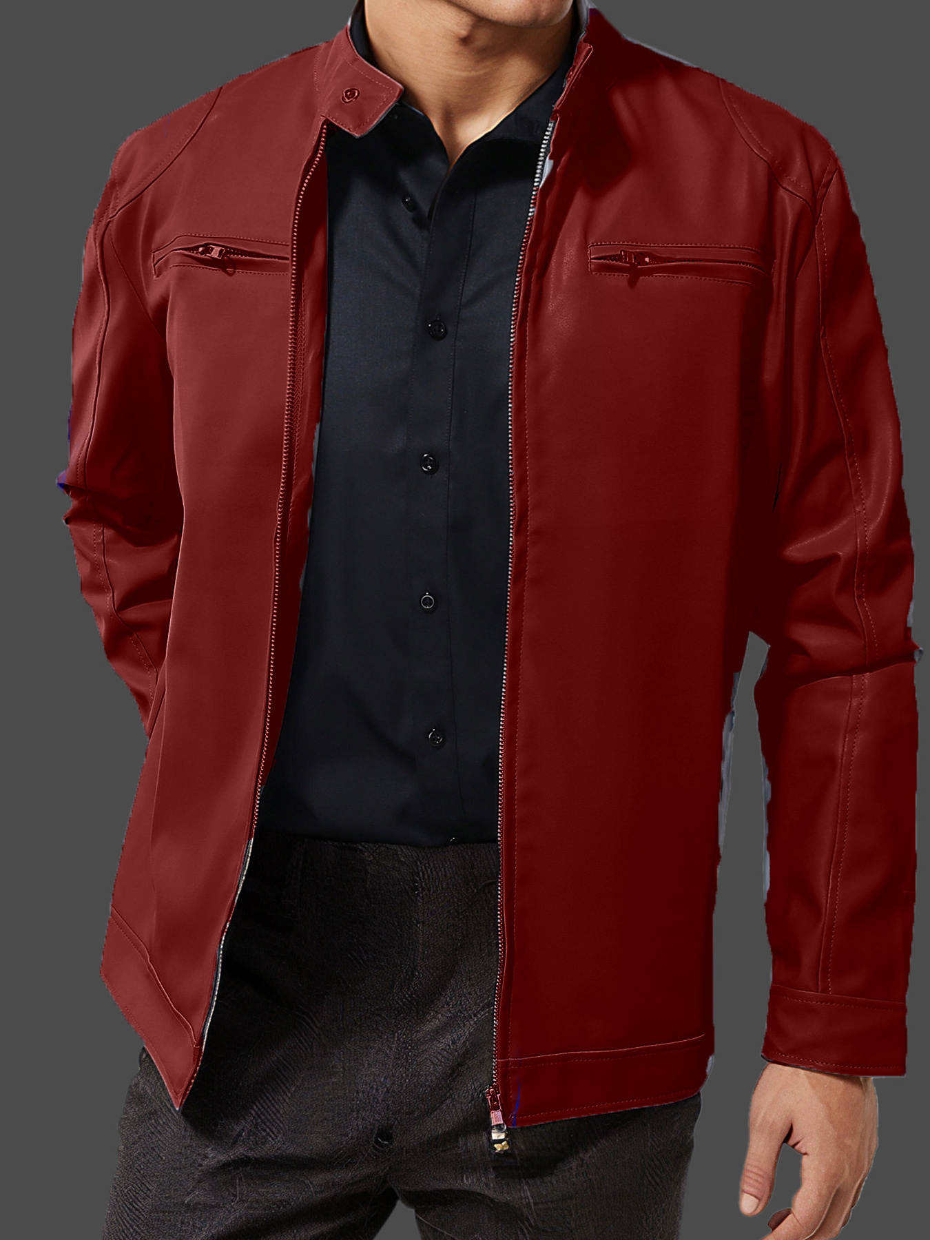 Men's Plus Size Slim Fit Faux Leather Motorcycle Jacket