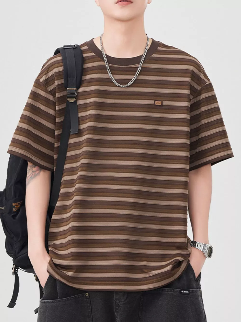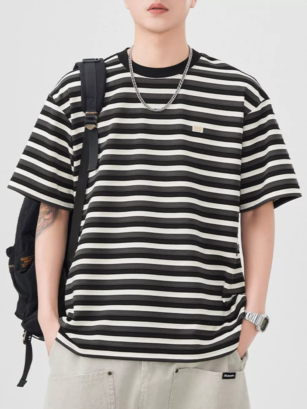 Men's Striped Round Neck Short Sleeve T-Shirt