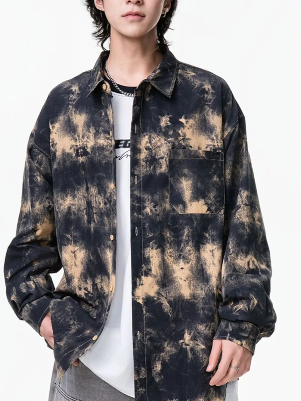Men's Plus Size Tie-Dye Button-Up Shirt