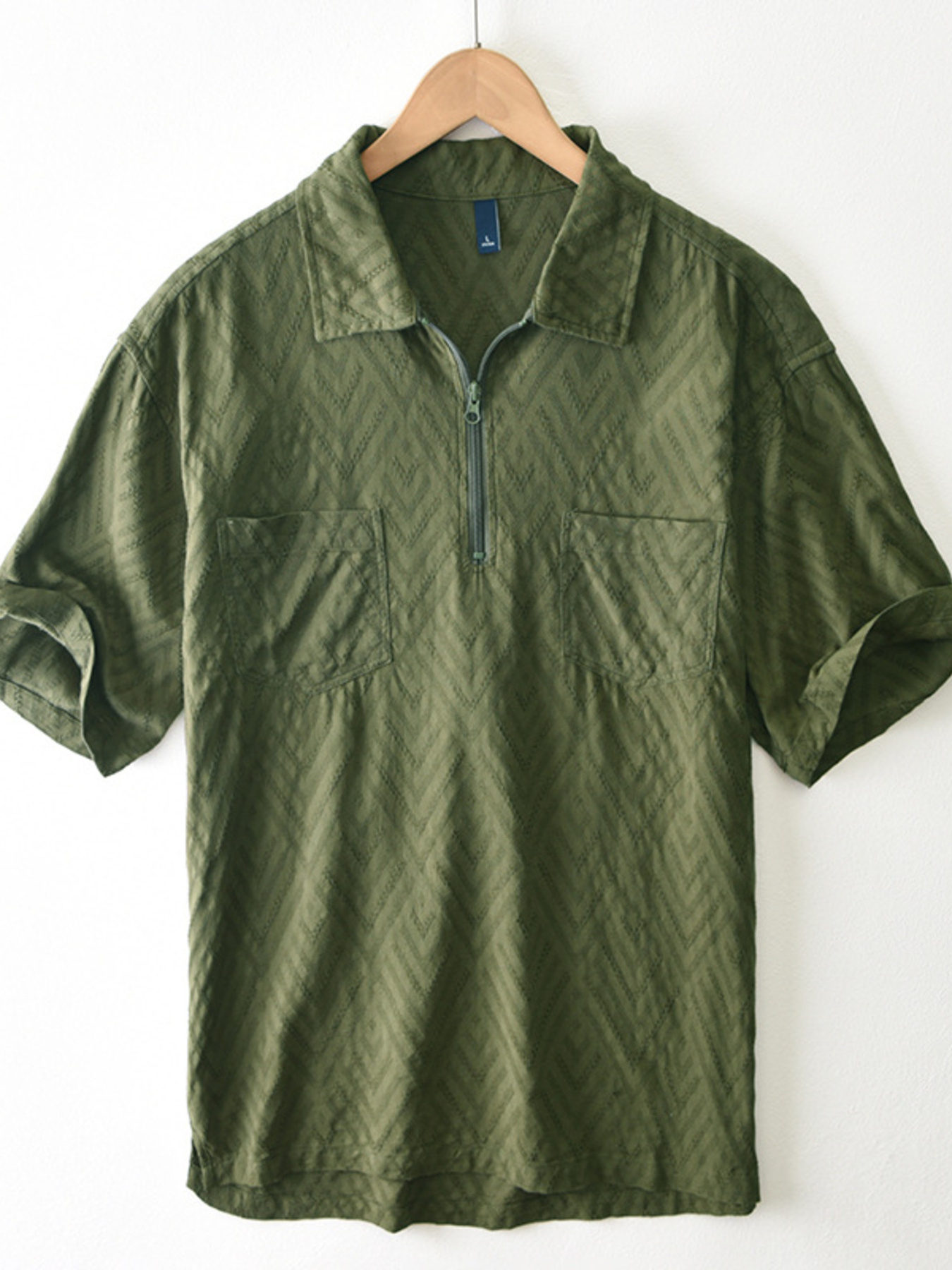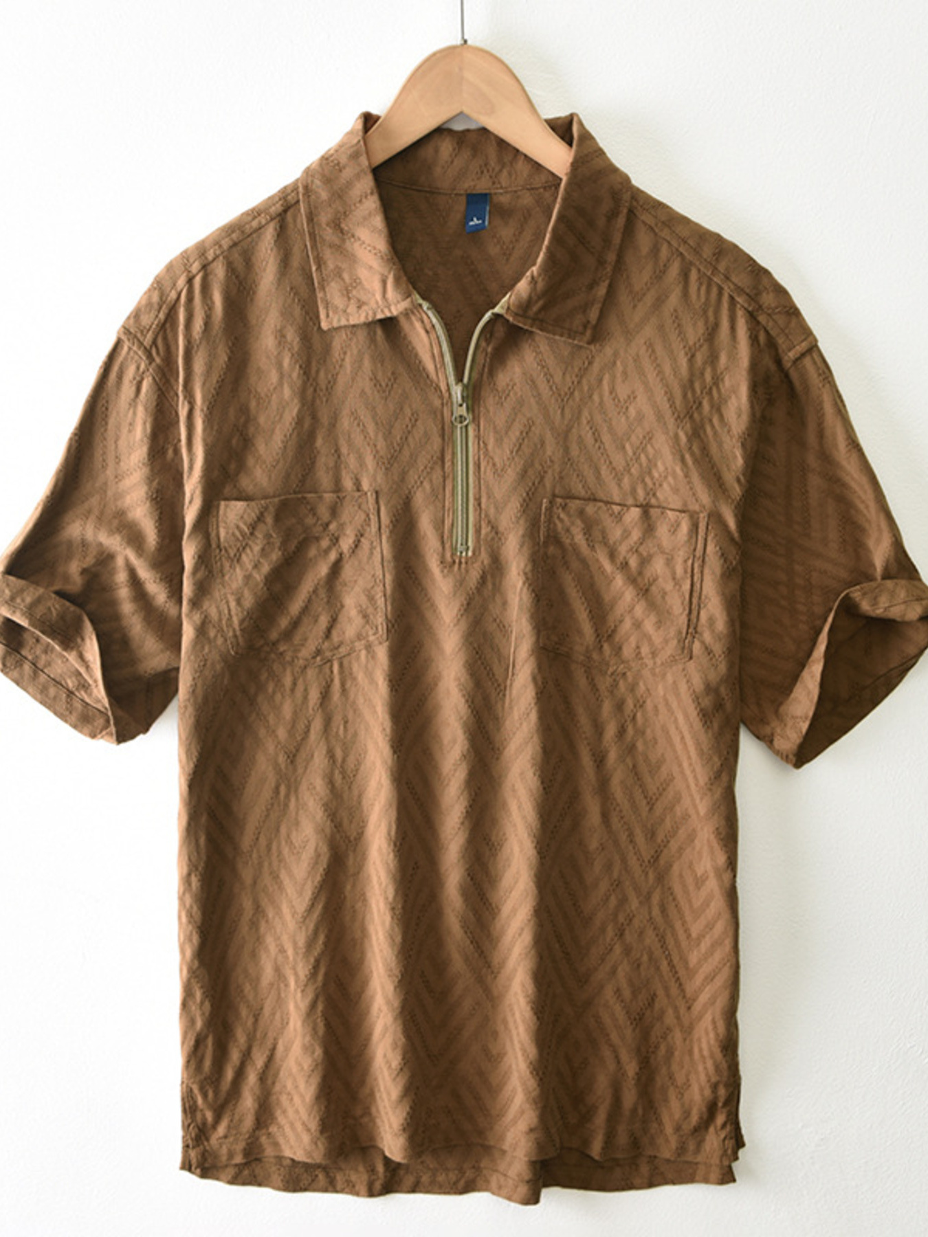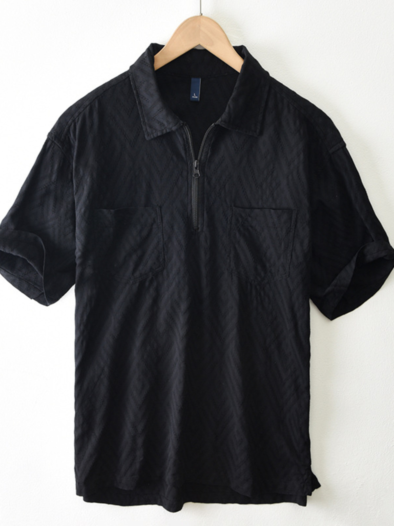 Men's Plus Size Quarter Zip Short Sleeve Blouse