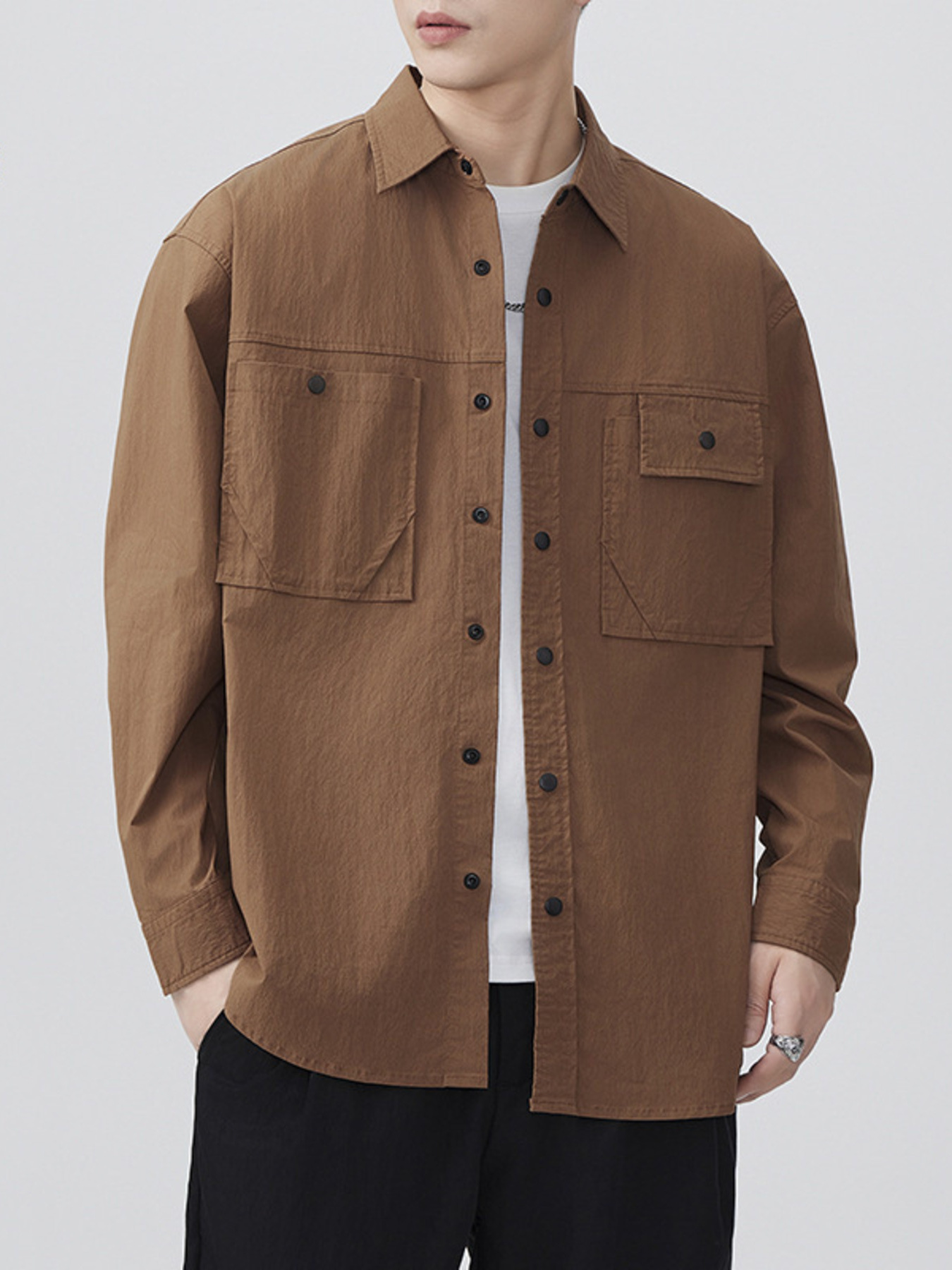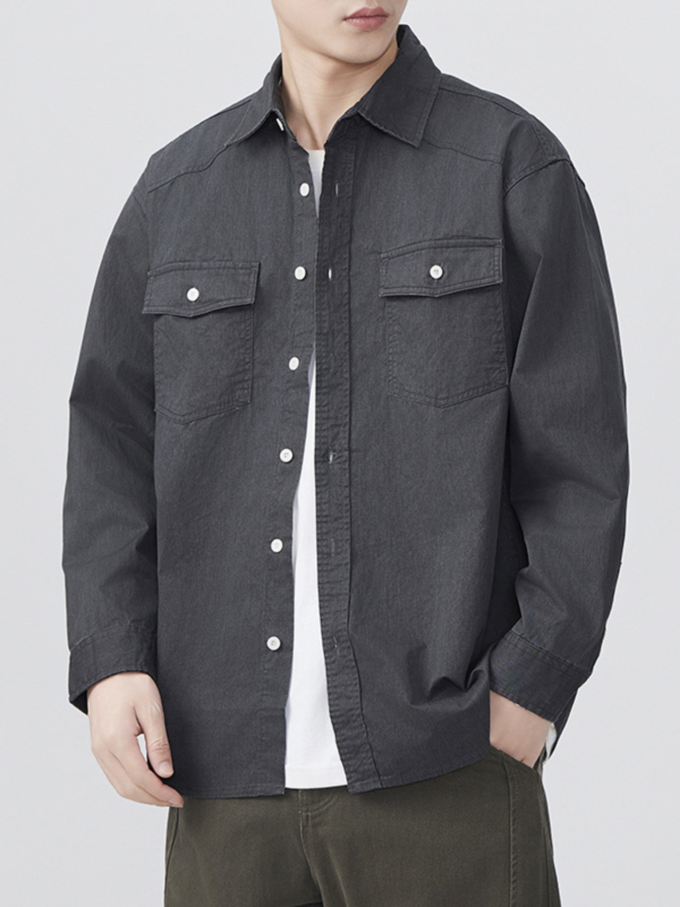 Men's Plus Size Button Up Shirt with Chest Pocket