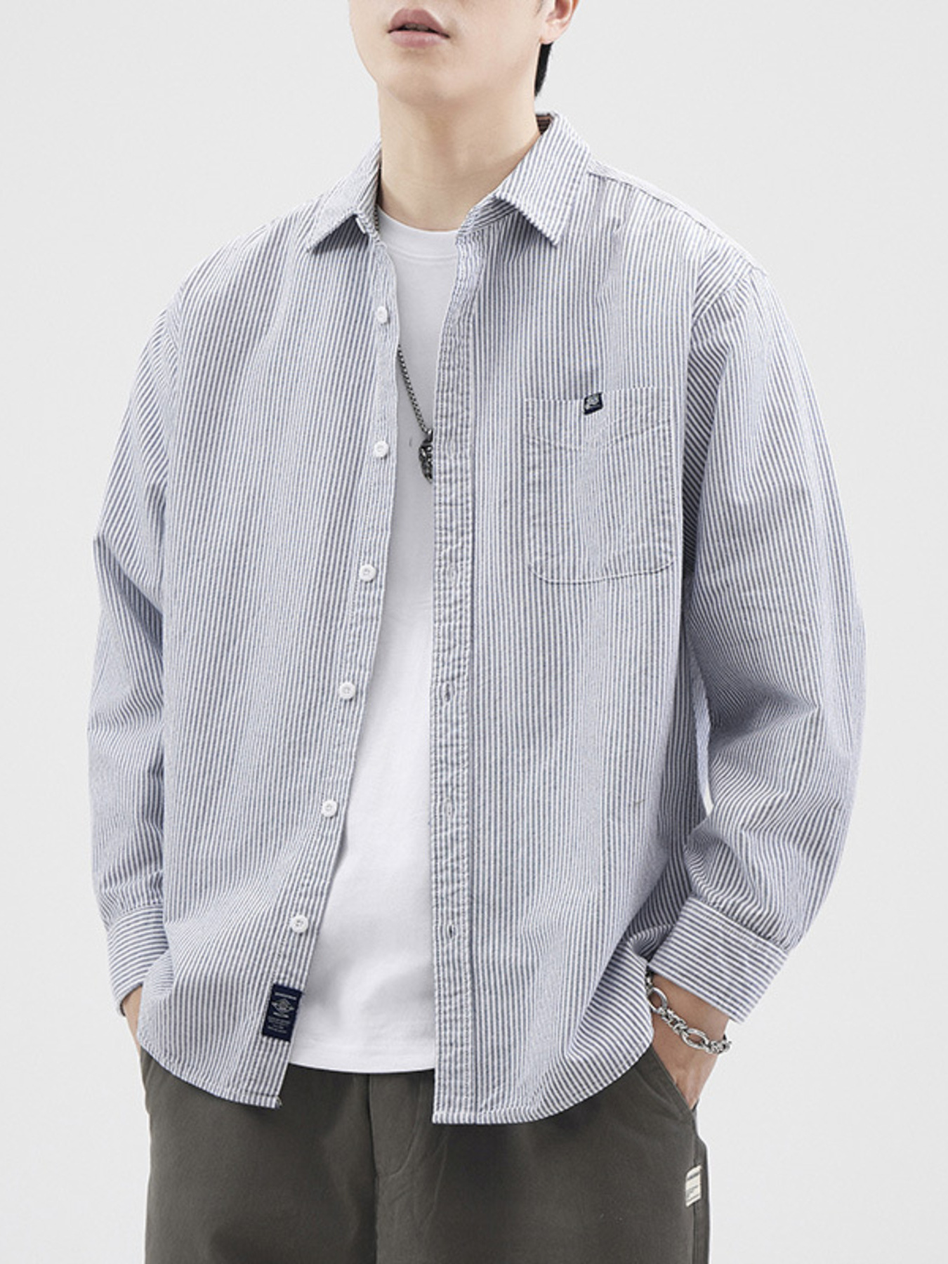 Men's Plus Size Striped Button Up Long Sleeve Shirt