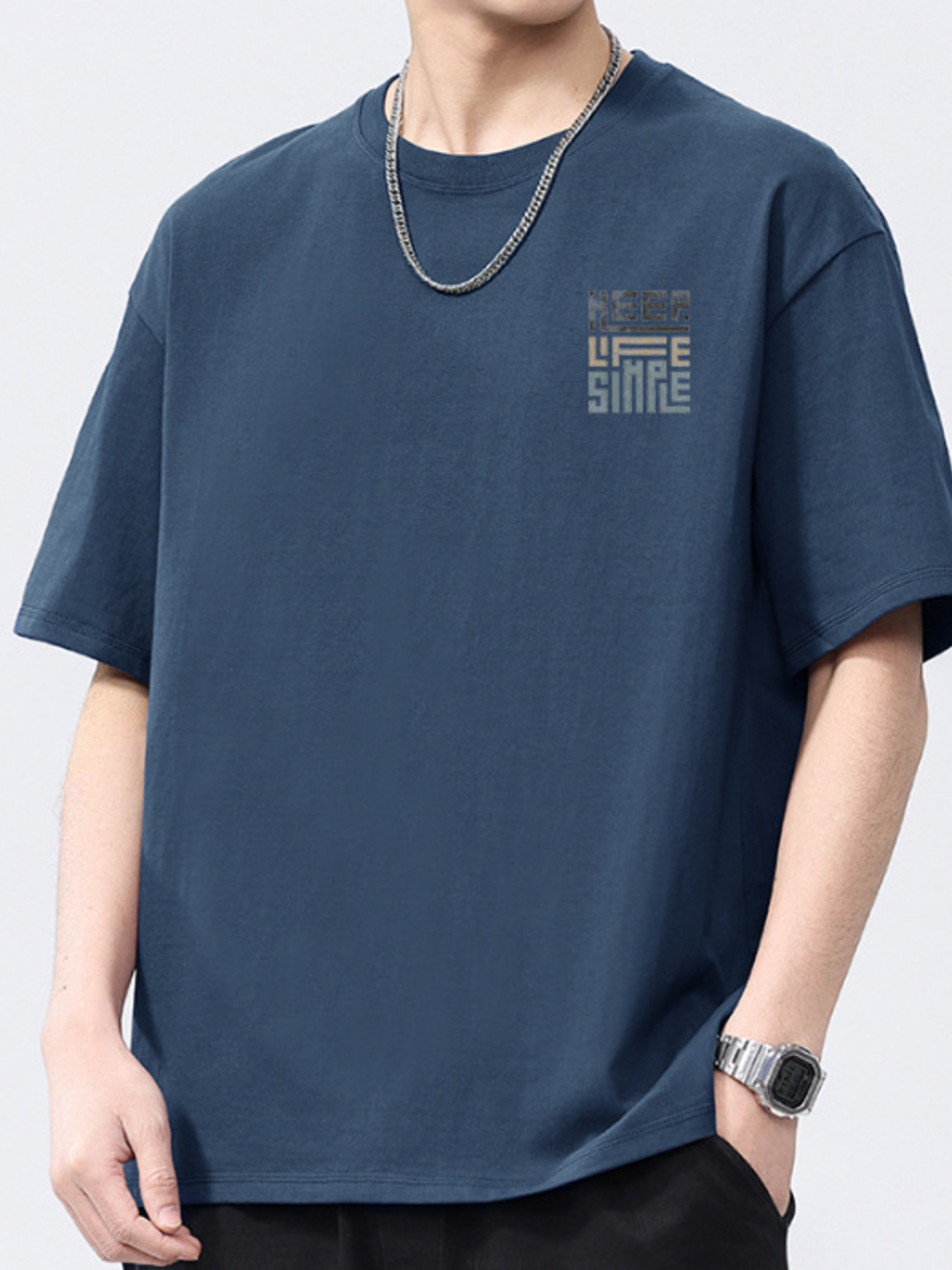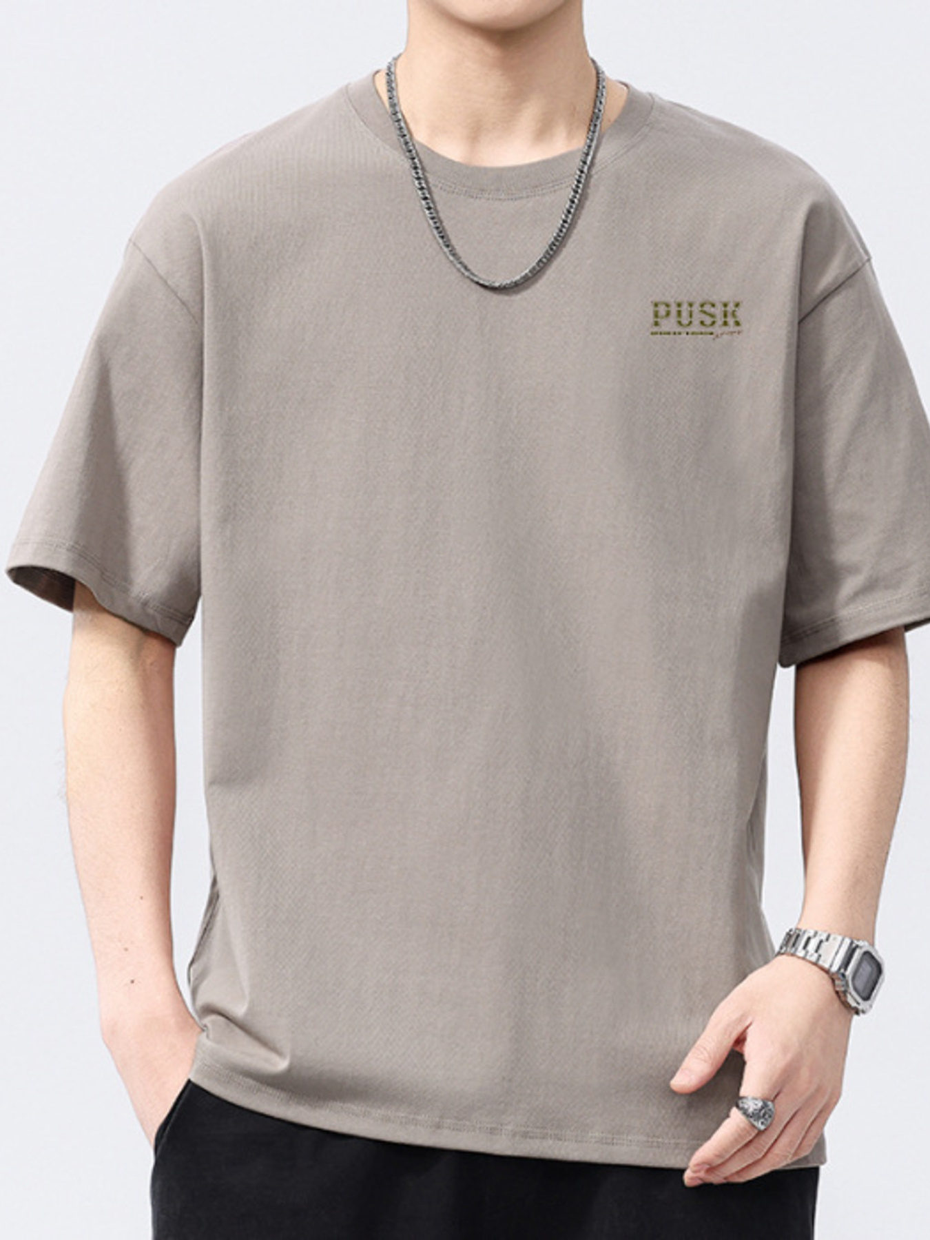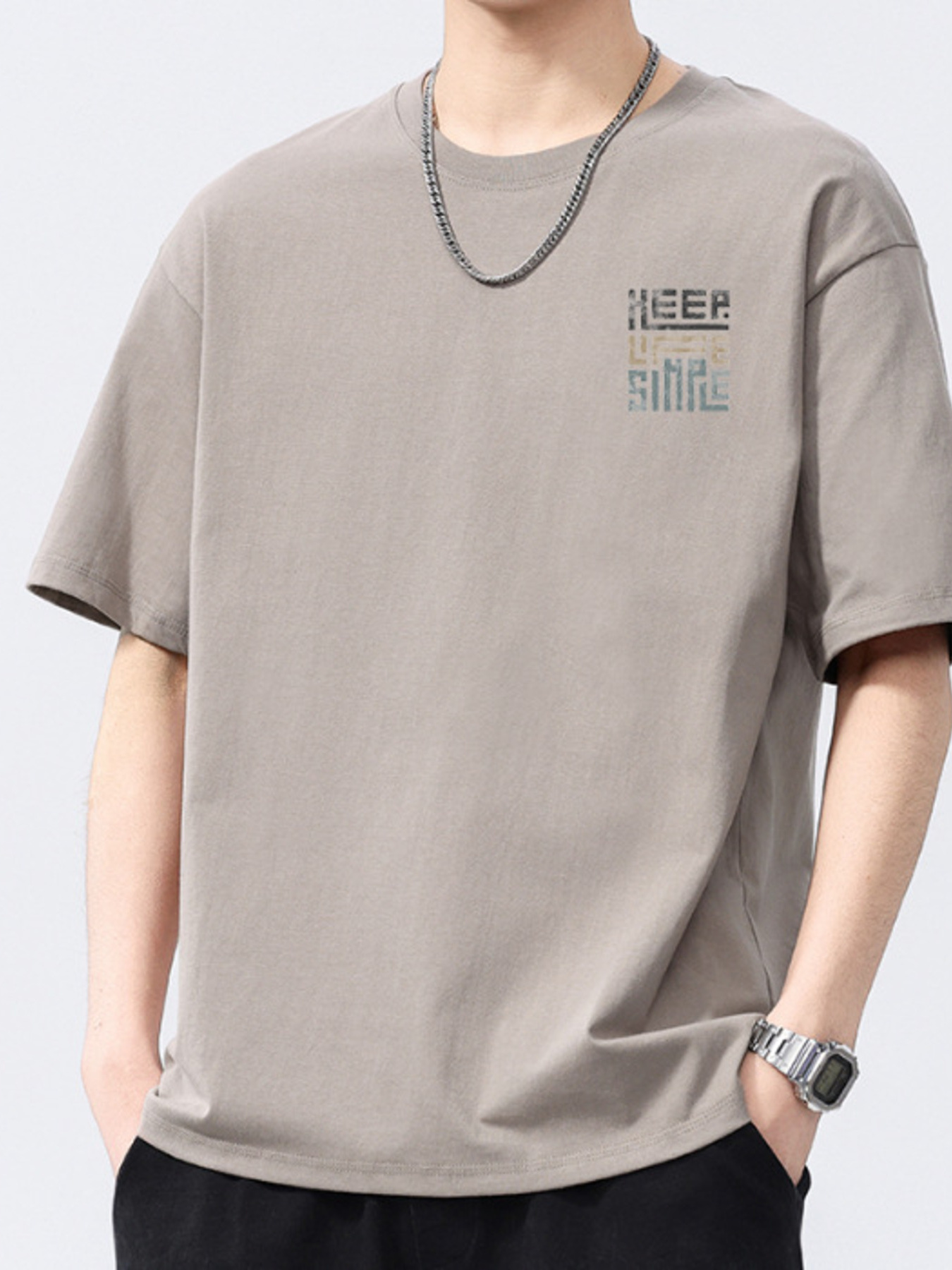 Men's Full Size Letter Round Neck Short Sleeve T-Shirt Plus Size