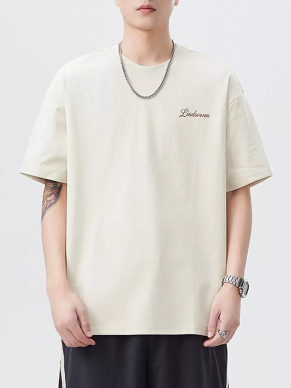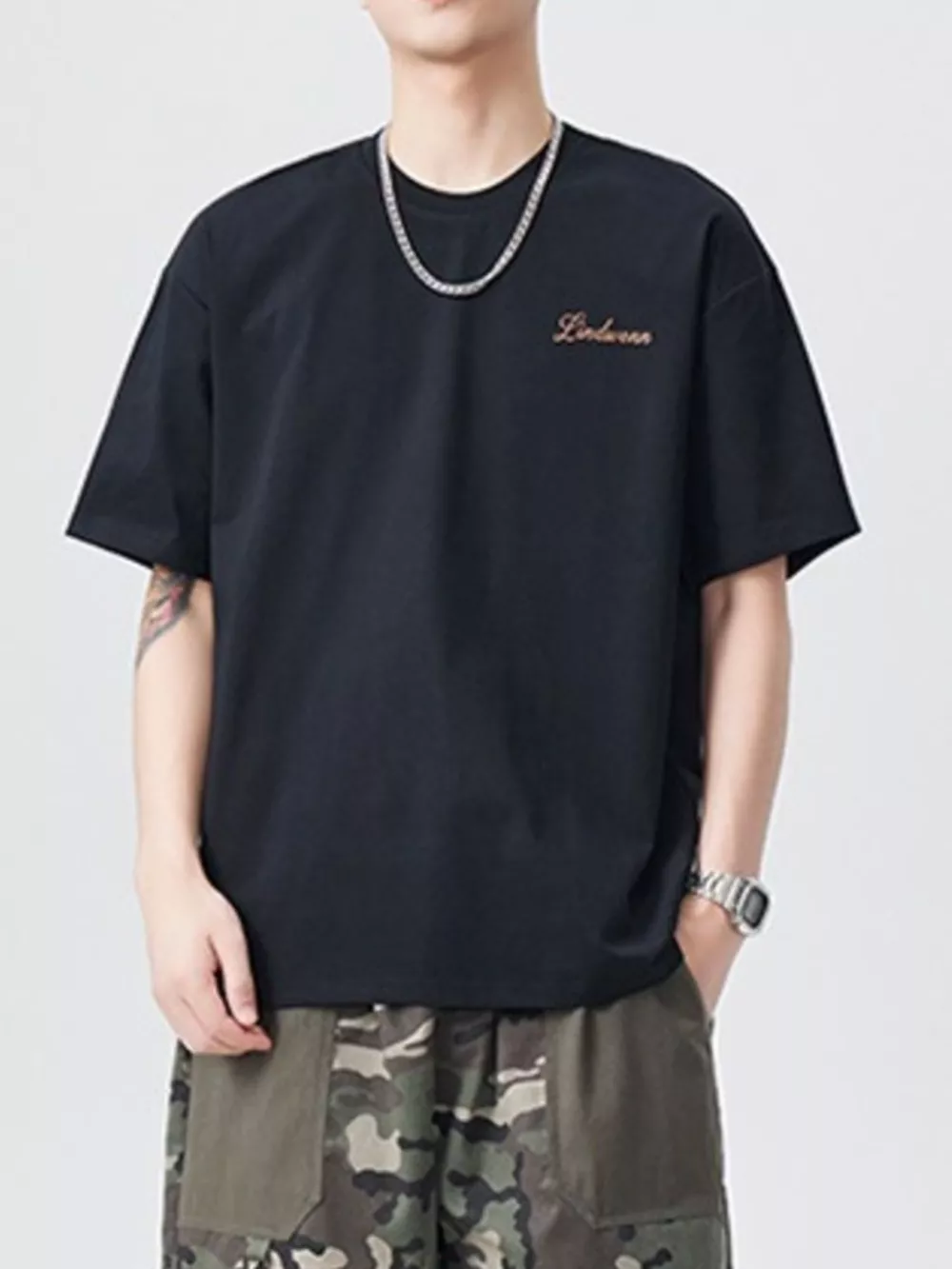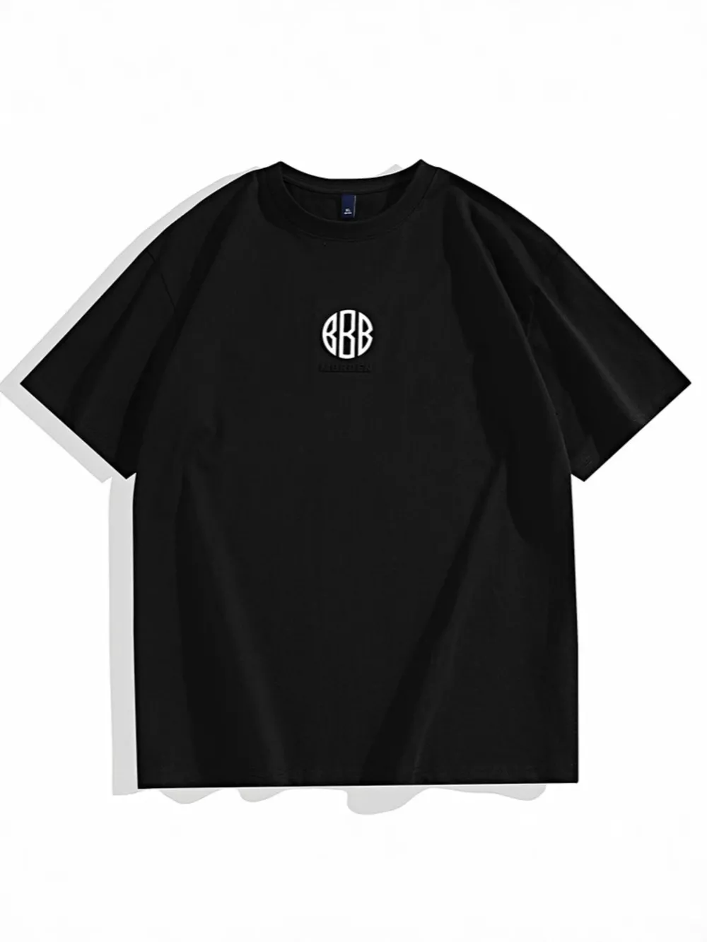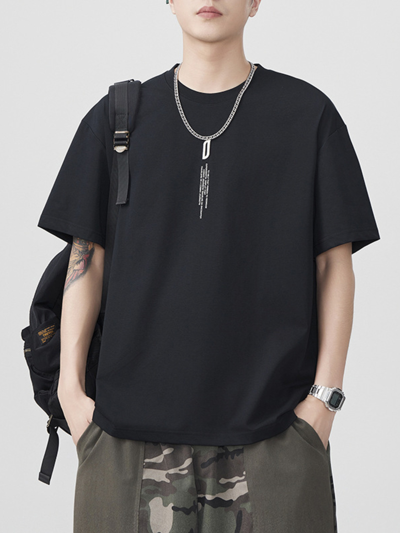 Men's Full Size Letter Round Neck Short Sleeve T-Shirt Plus Size