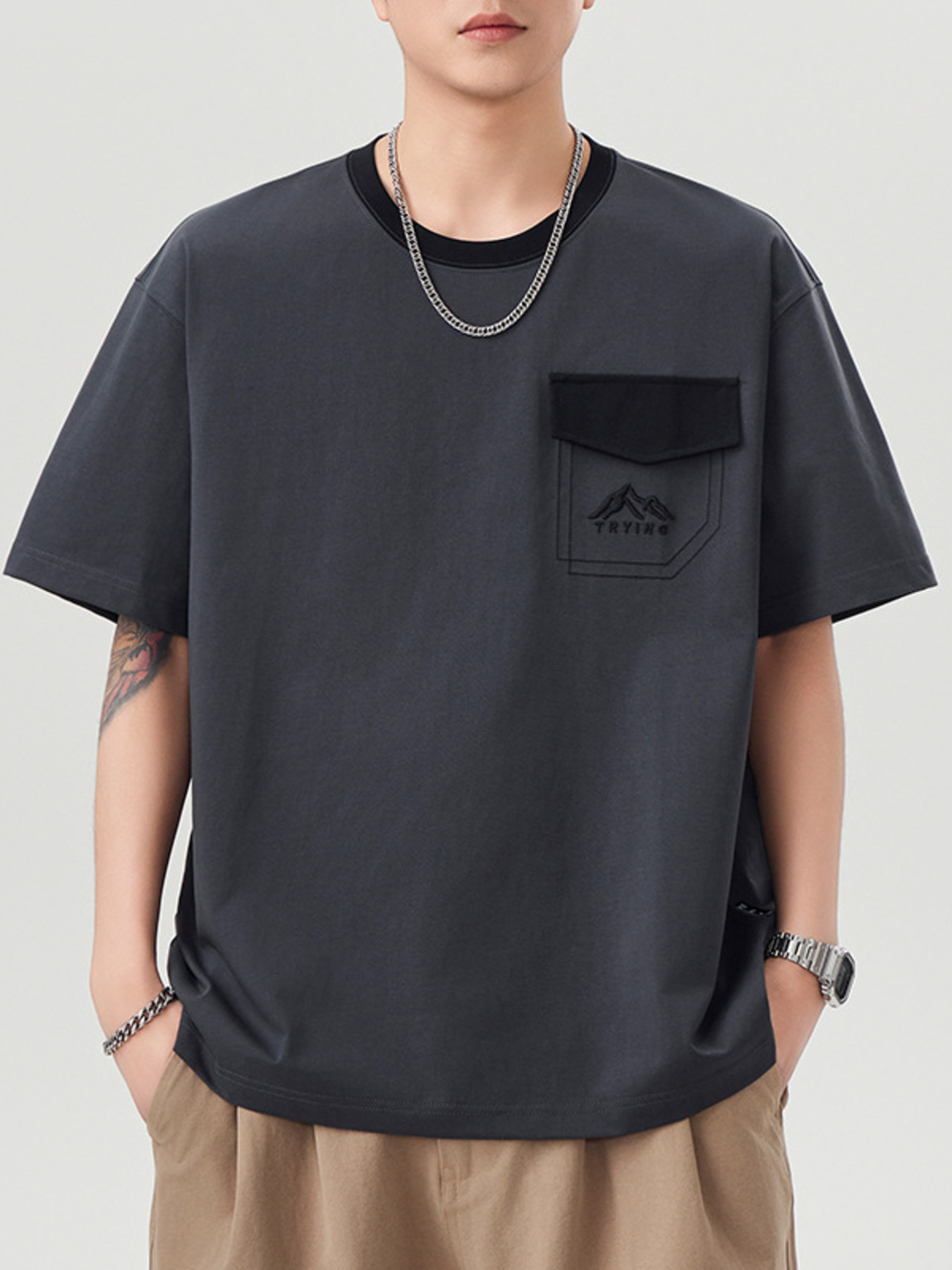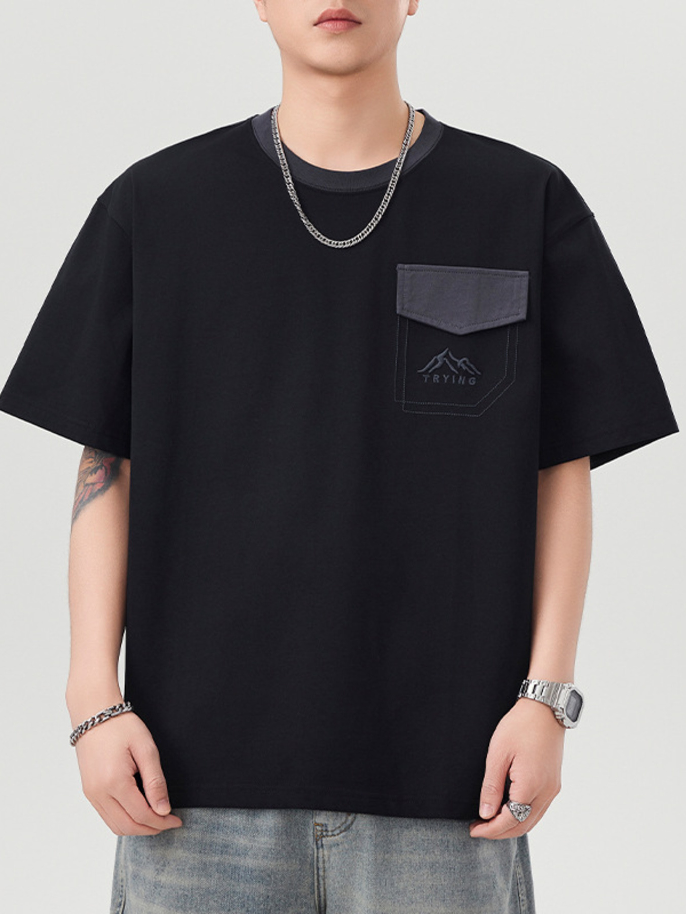 Men's Plus Size Short Sleeve Contrast Pocket T-Shirt