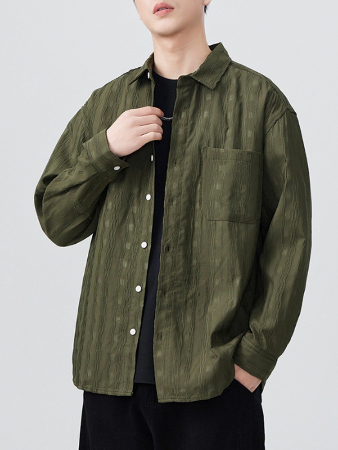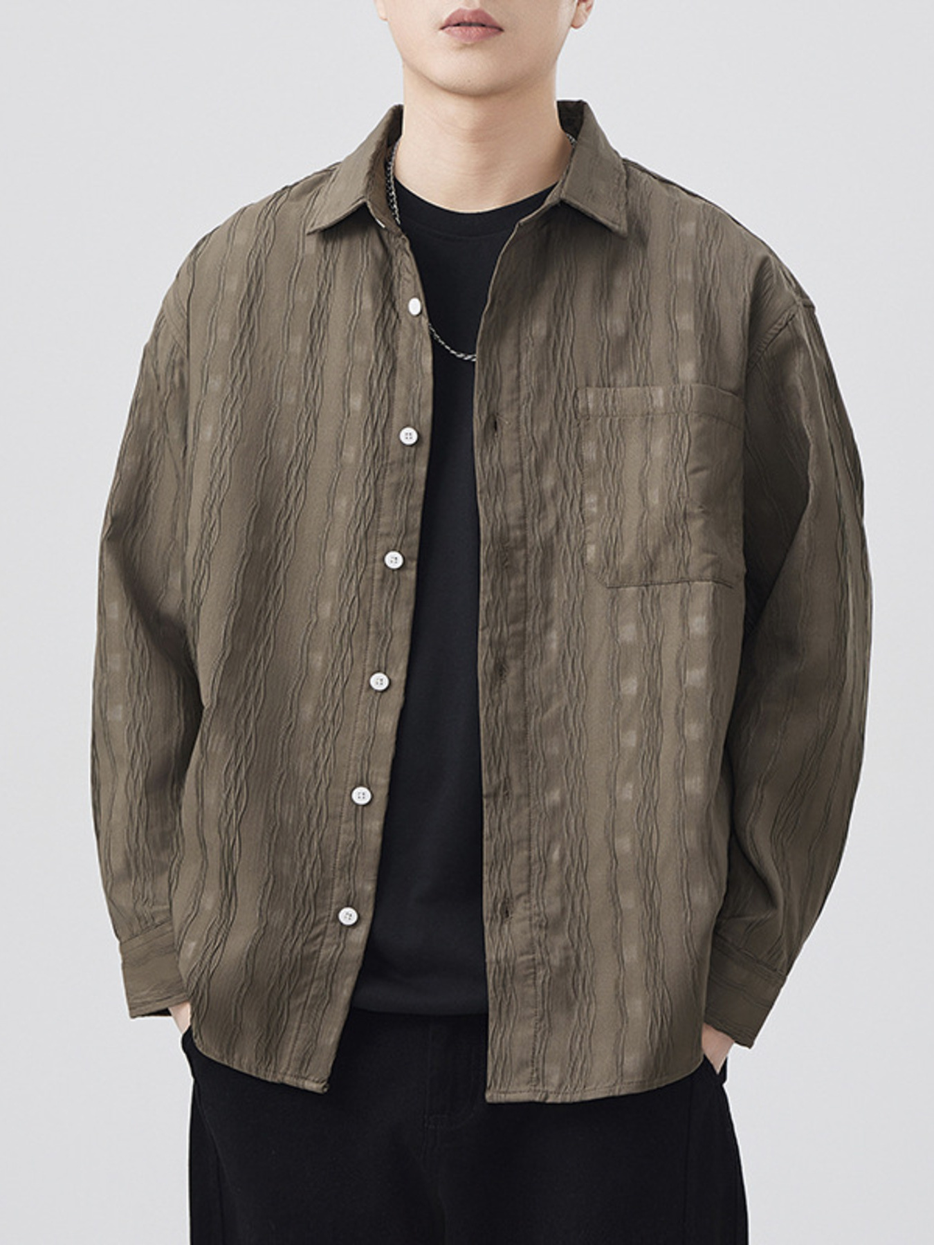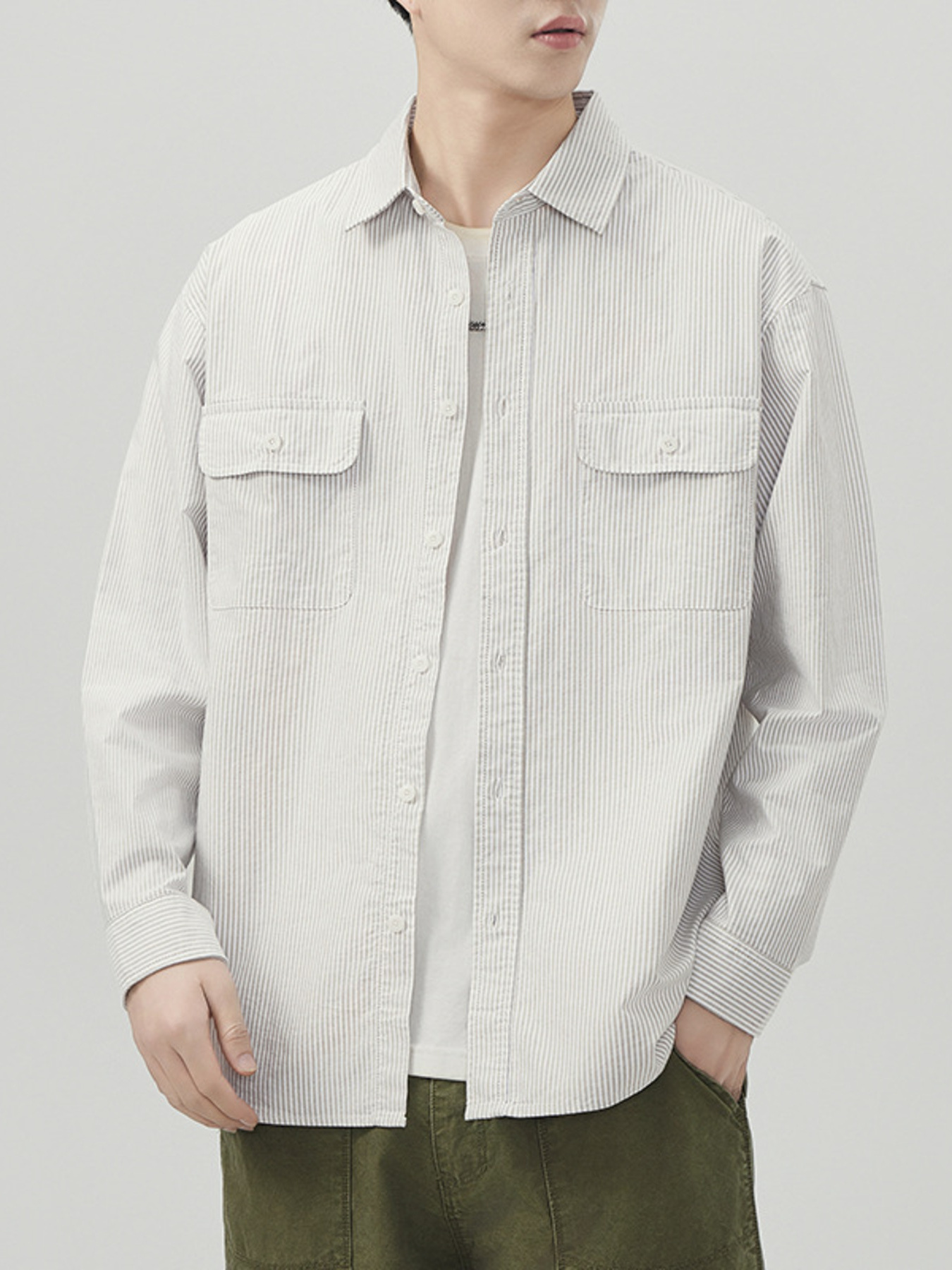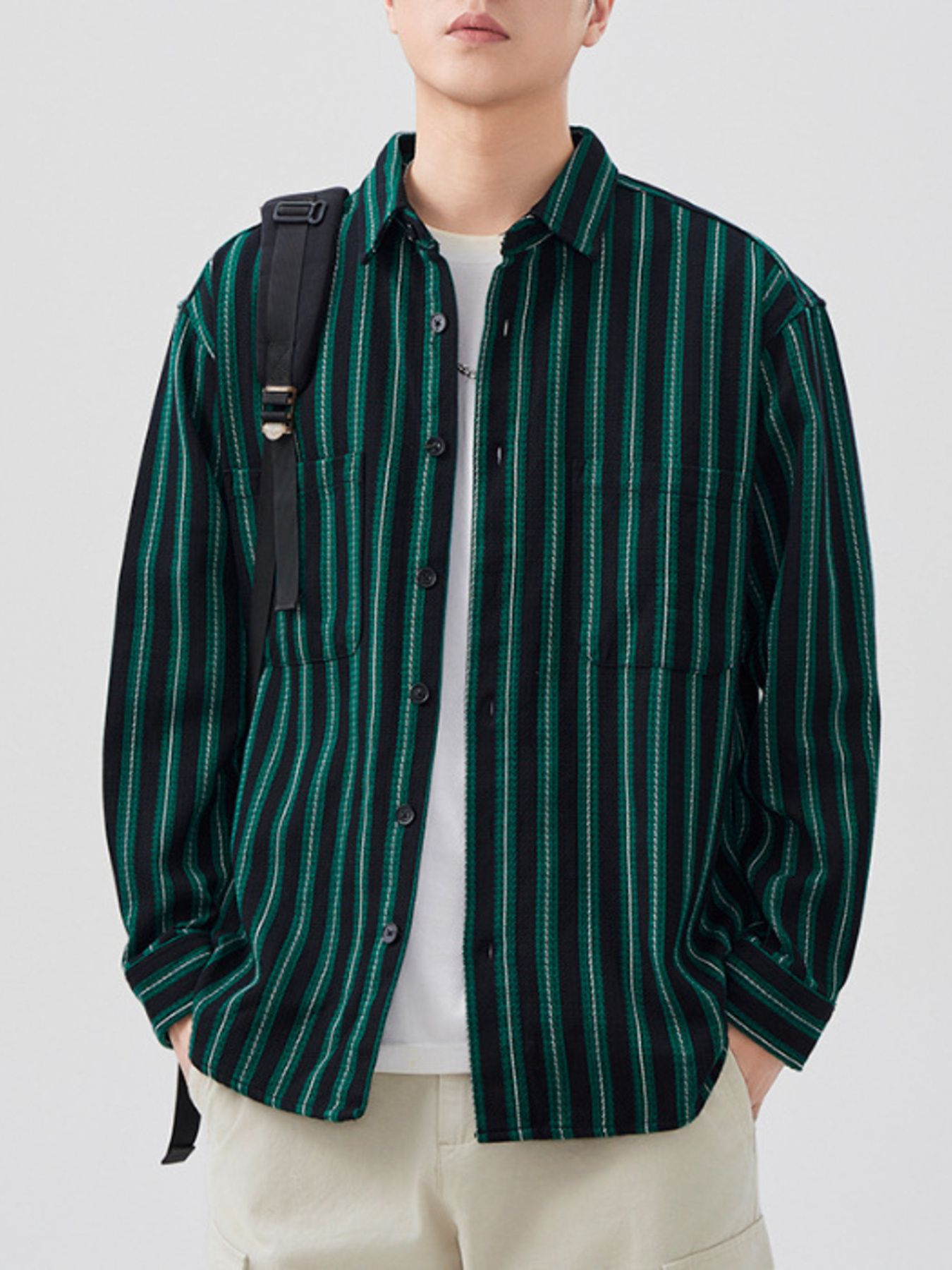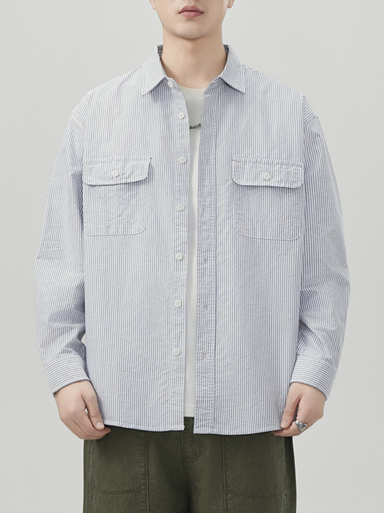 Men's Plus Size Striped Button Up Long Sleeve Shirt