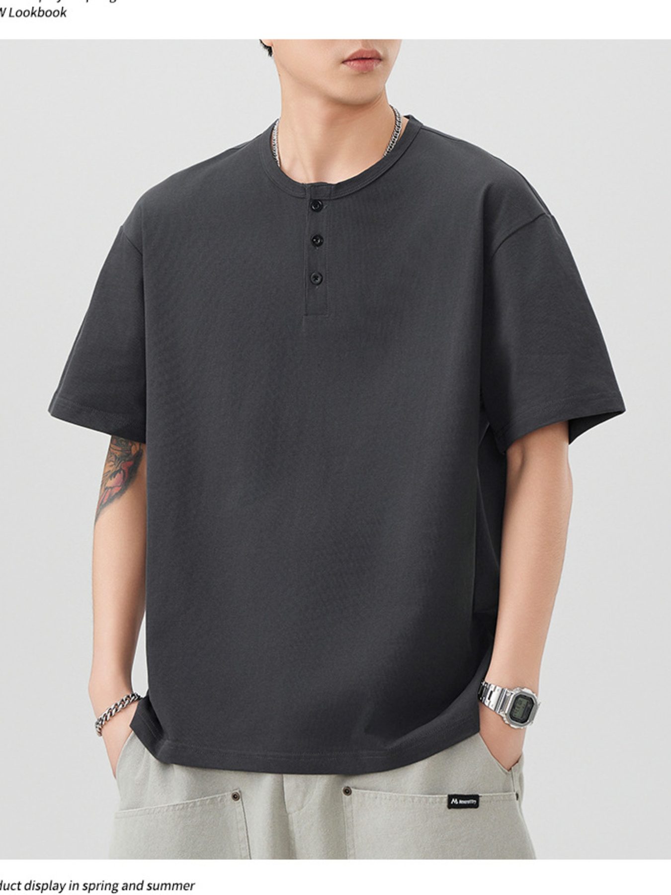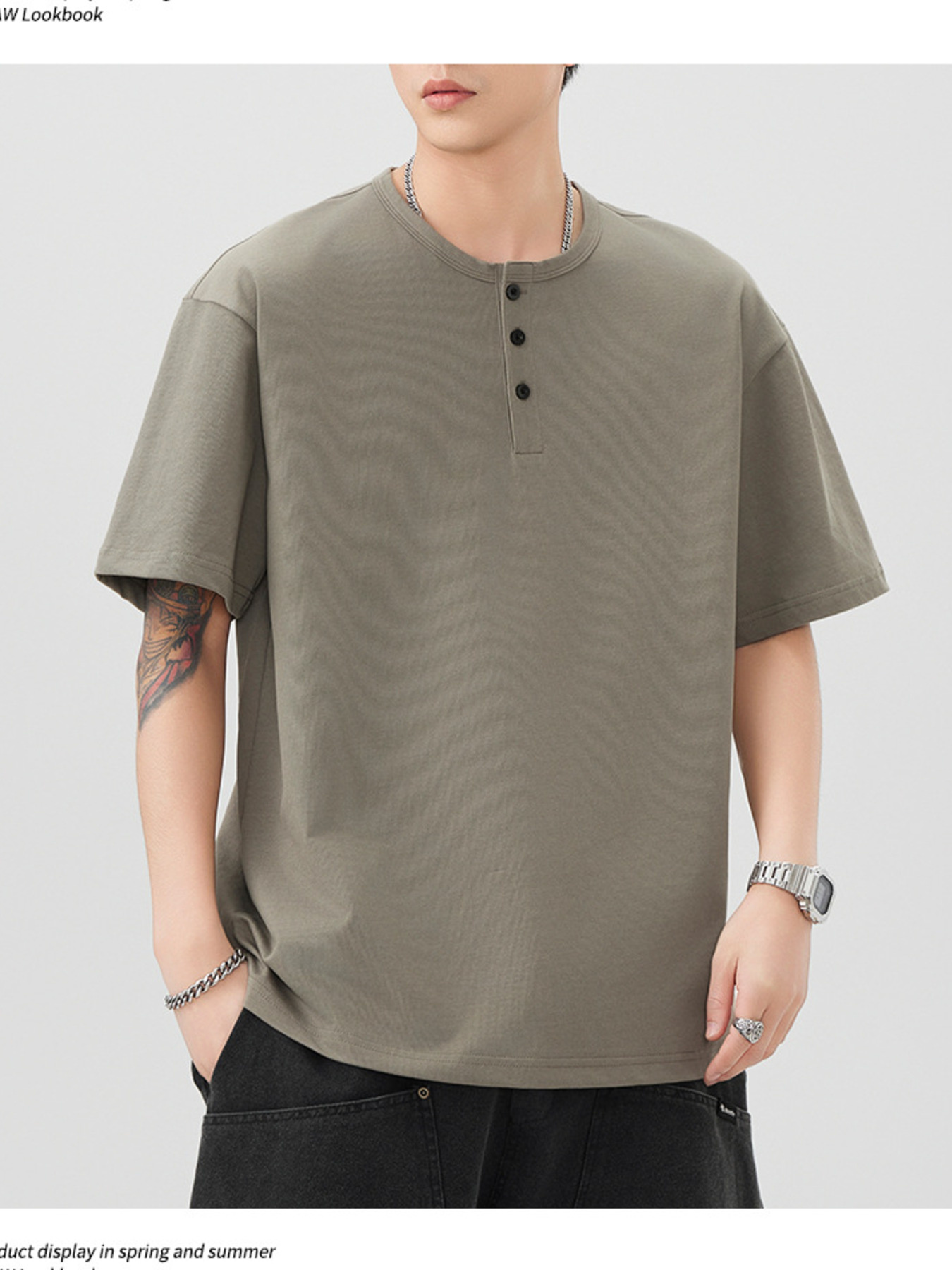 Men's Plus Size Button Detail Short Sleeve T-Shirt