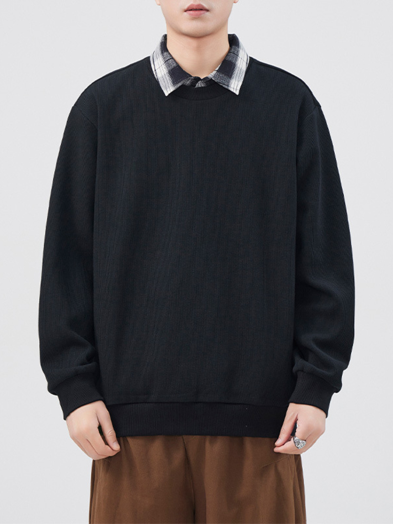 Men's Plus Size Plaid Collar Long Sleeve Sweatshirt