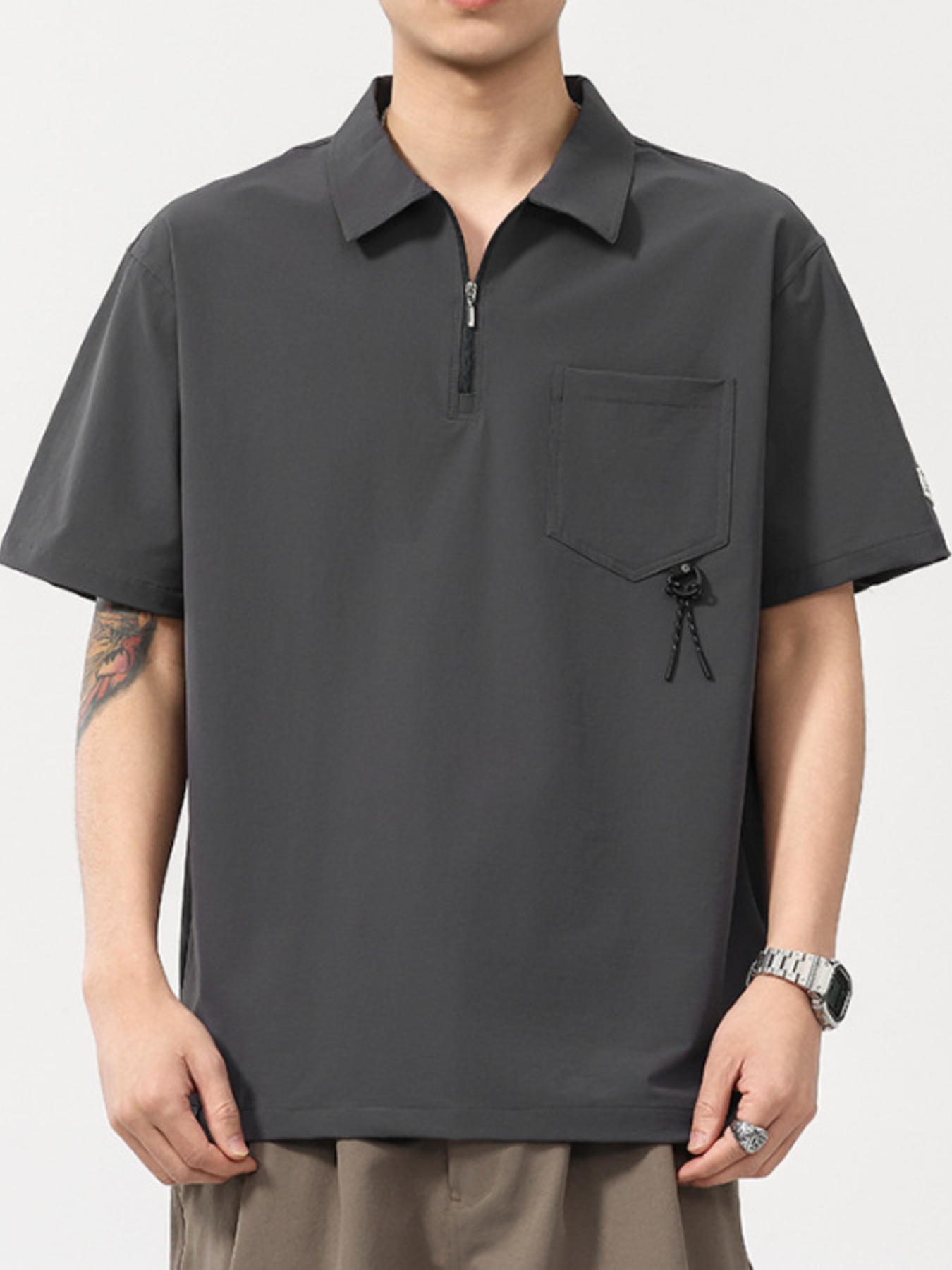 Men's Plus Size Quarter Zip Short Sleeve Polo
