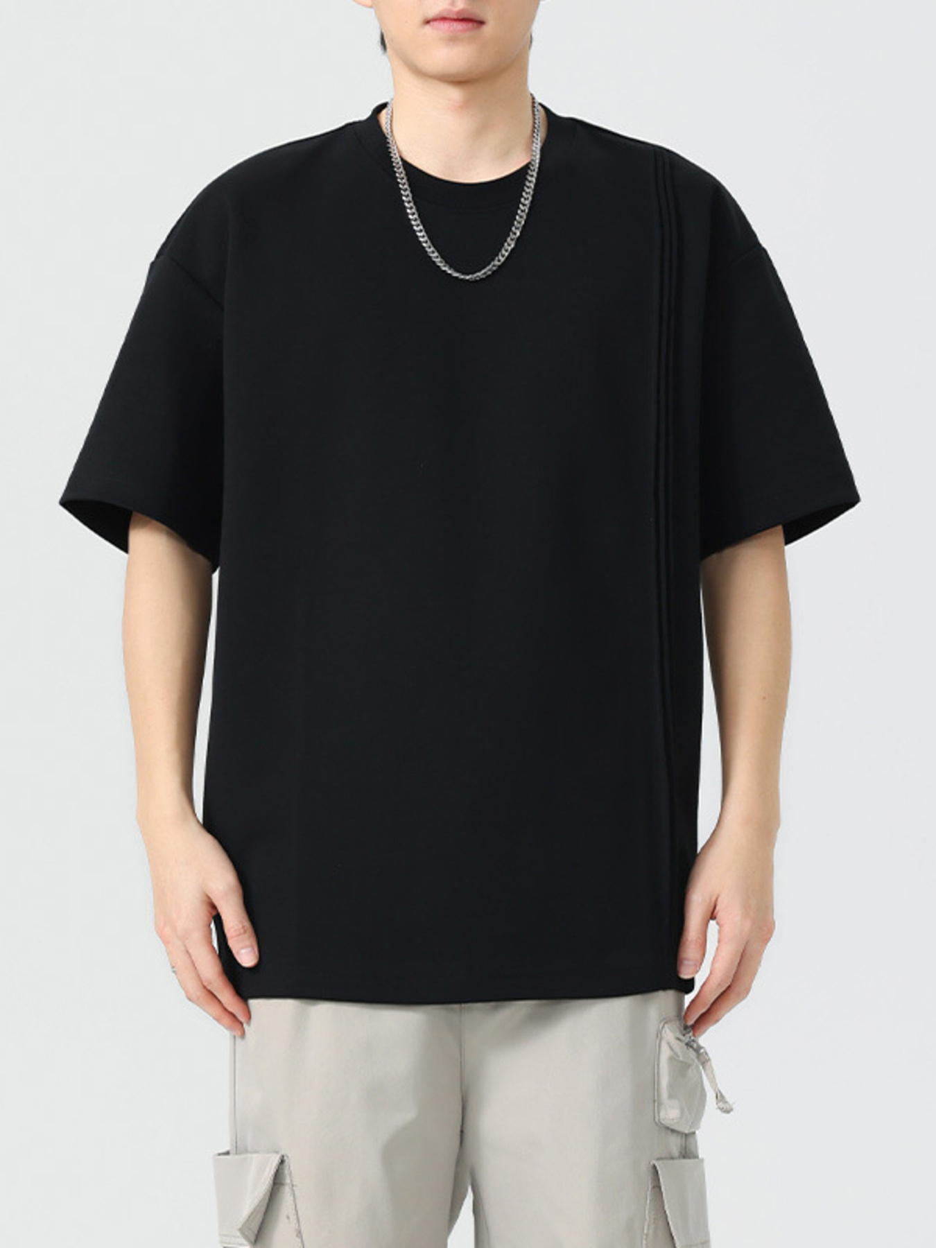 Men's Plus Size Oversized Cotton Short Sleeve T-Shirt with Ruched Detail