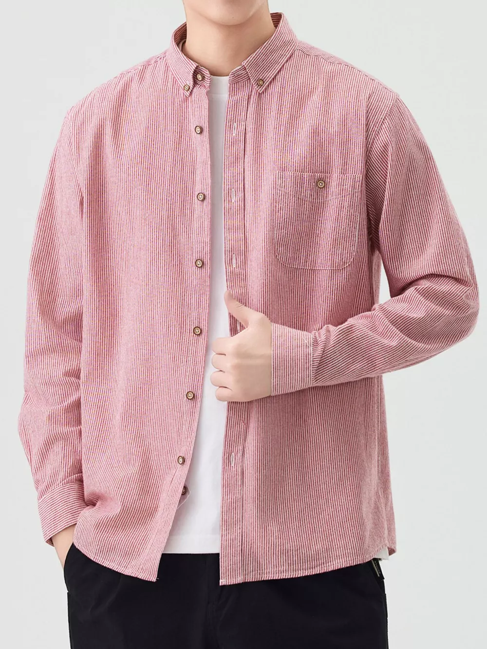 Men's Full Size Casual Striped Corduroy Shirt Plus Size