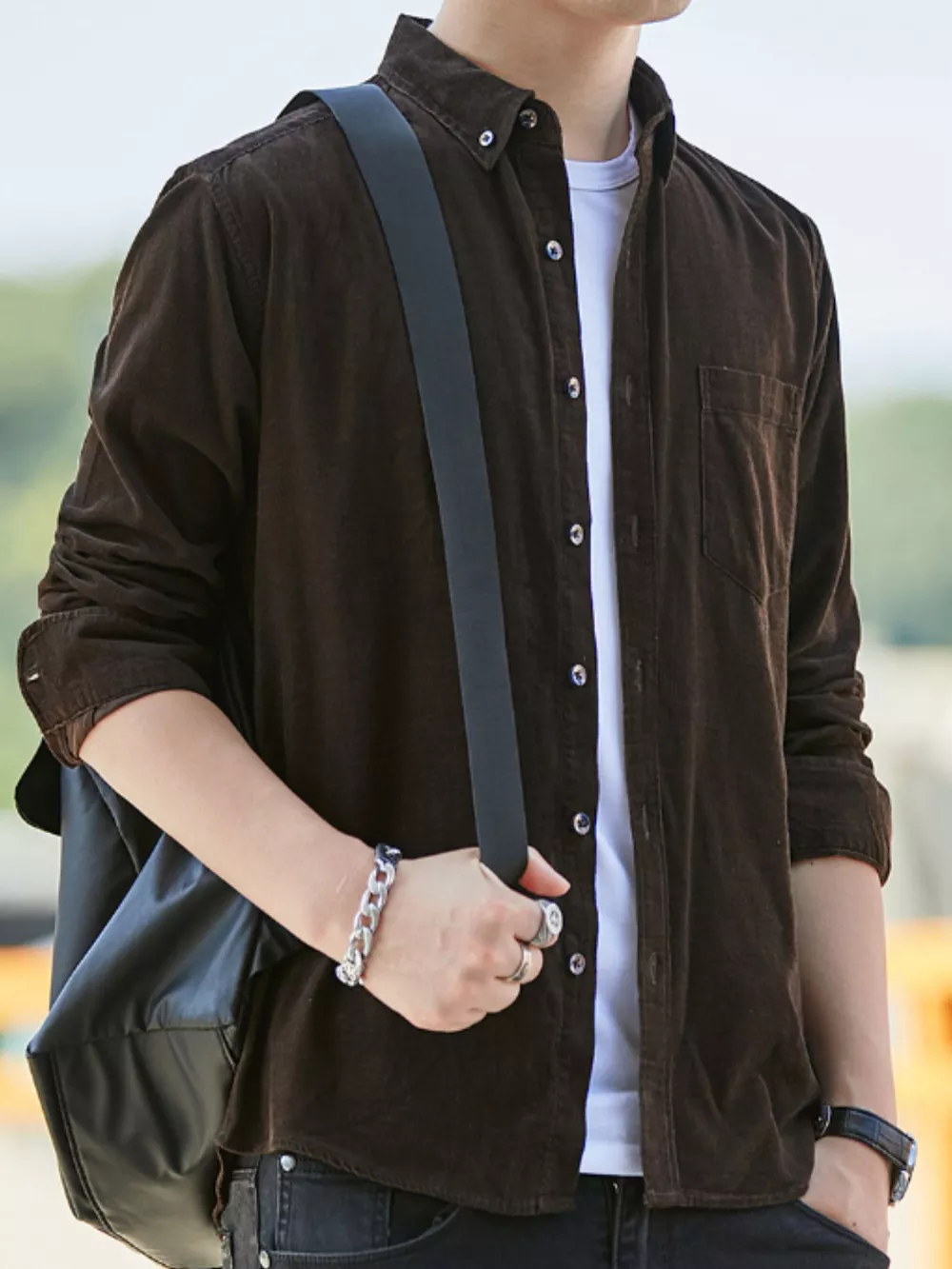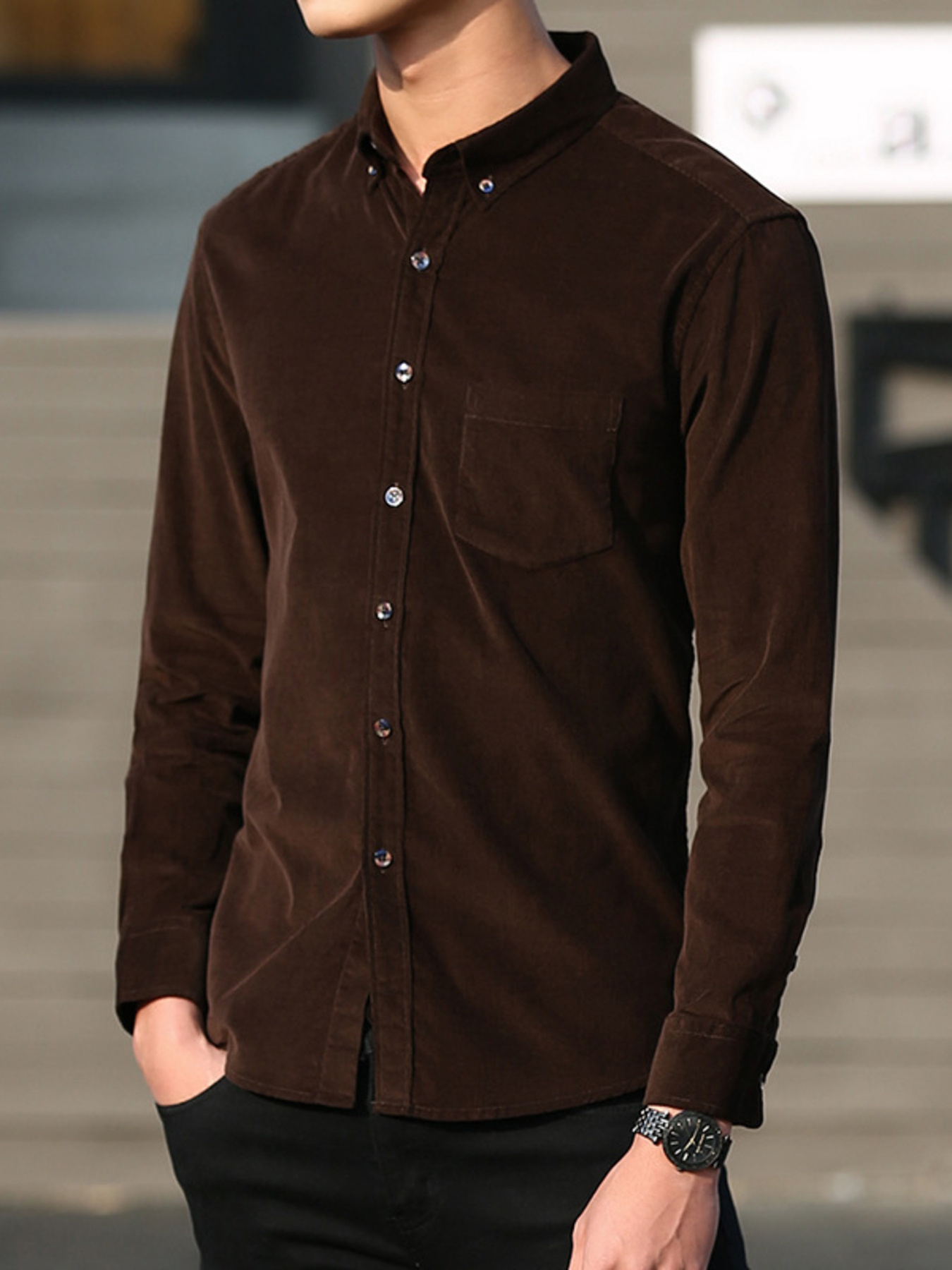 Men's Full Size Casual Corduroy Button-Down Shirt Plus Size
