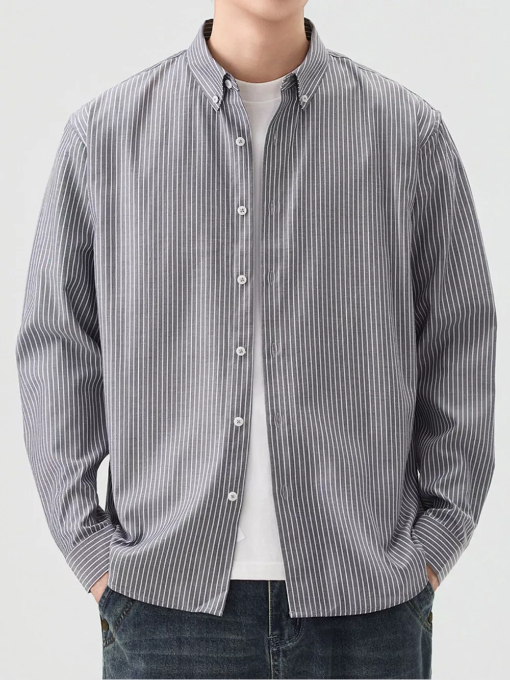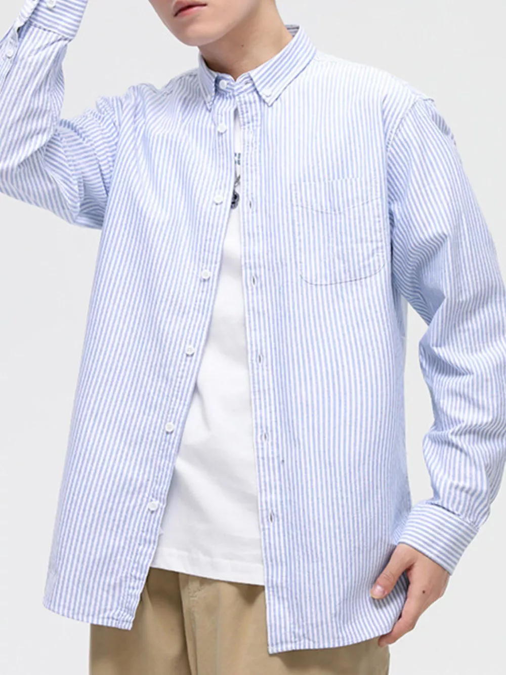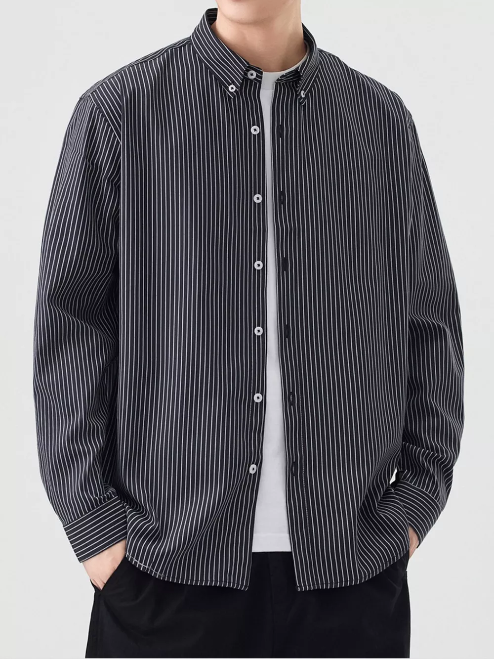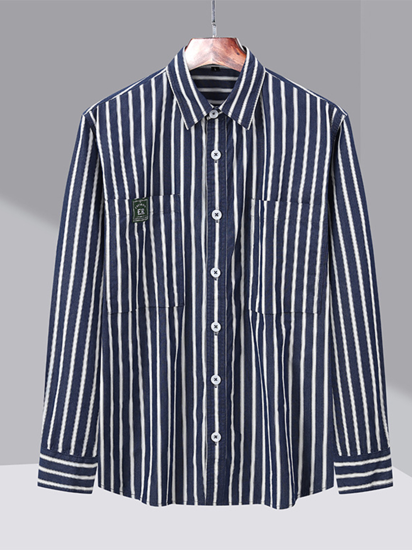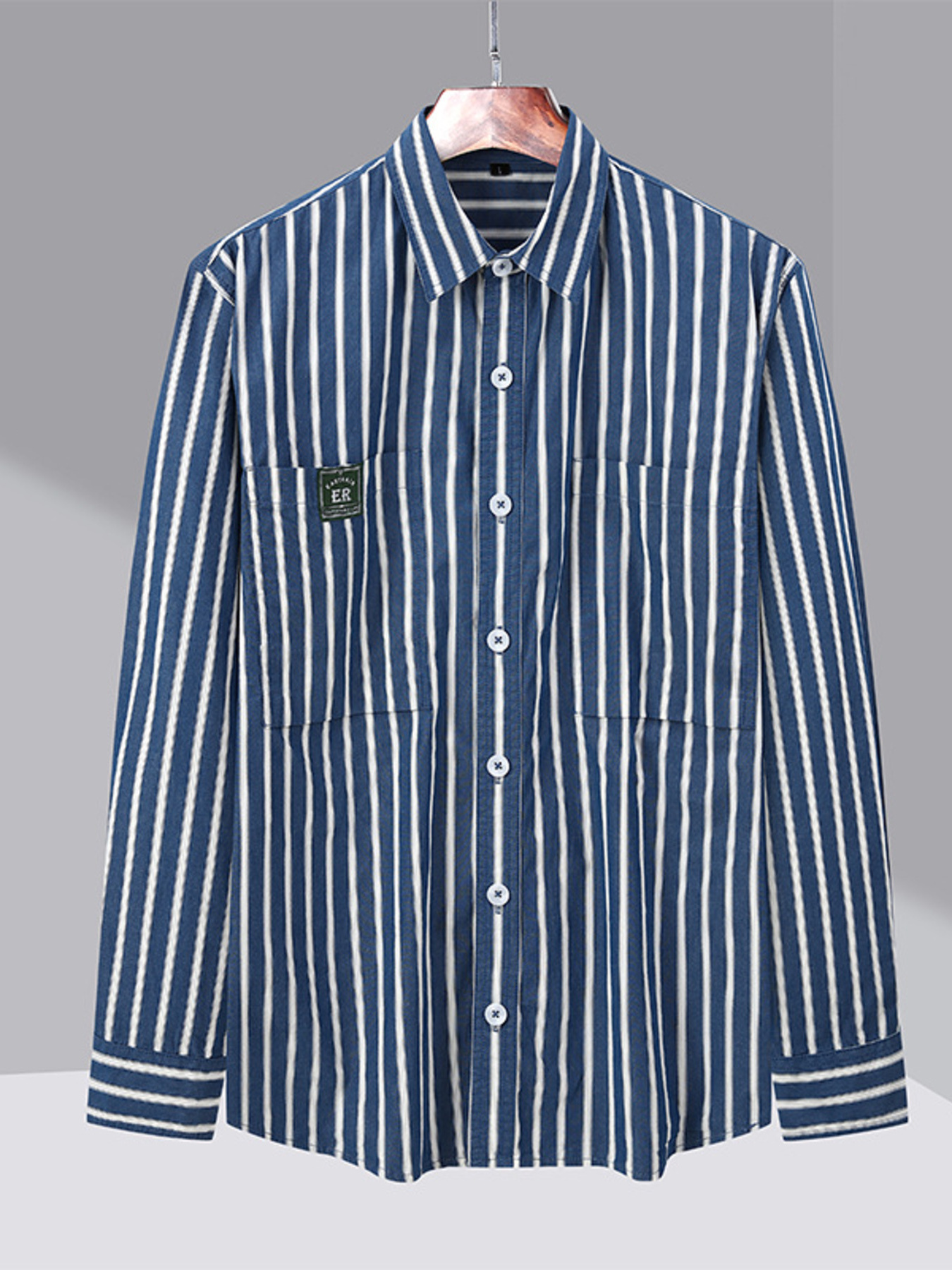 Men's Full Size Casual Striped Button-Down Shirt Plus Size