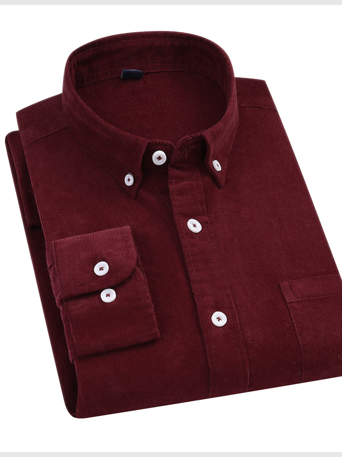Men's Full Size Casual Corduroy Long Sleeve Shirt Plus Size