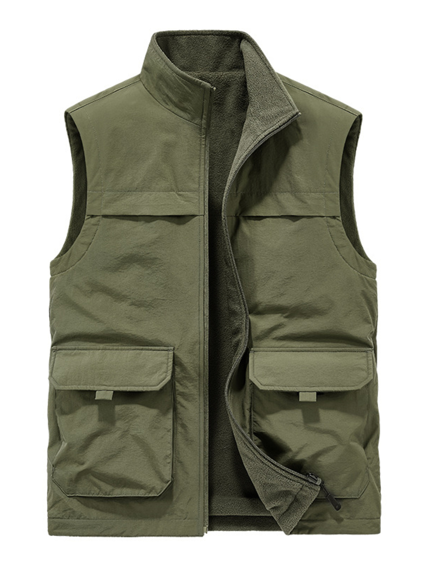 Men's Plus Size Multi-Pocket Zip Up Vest