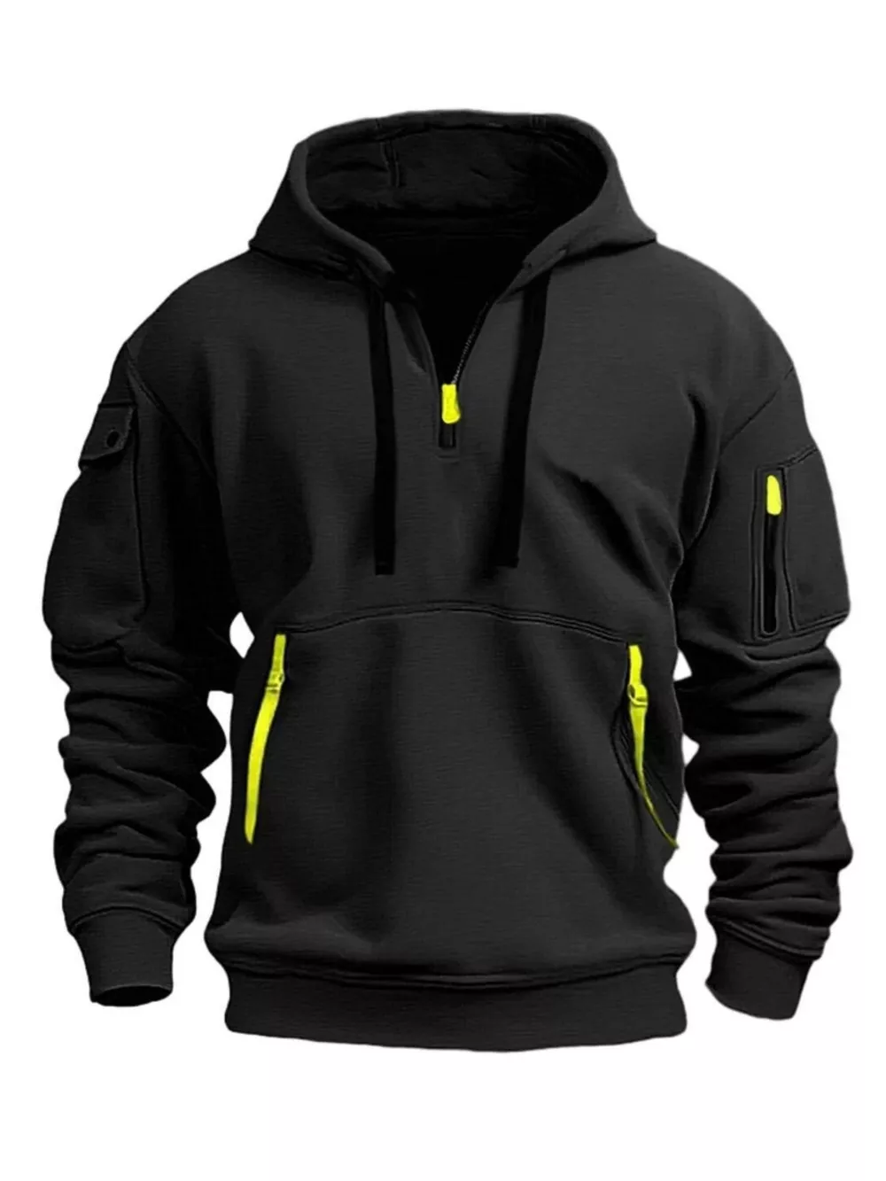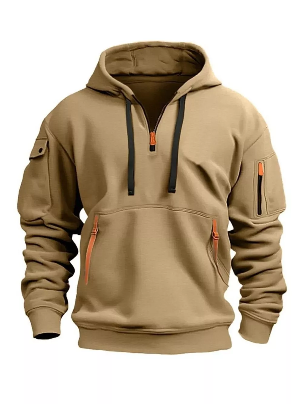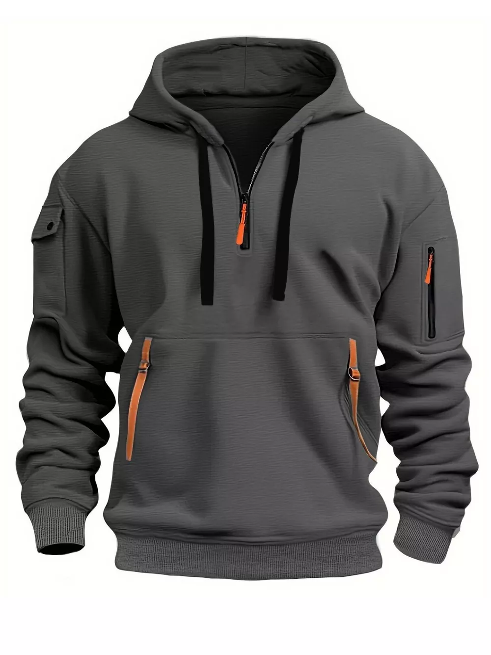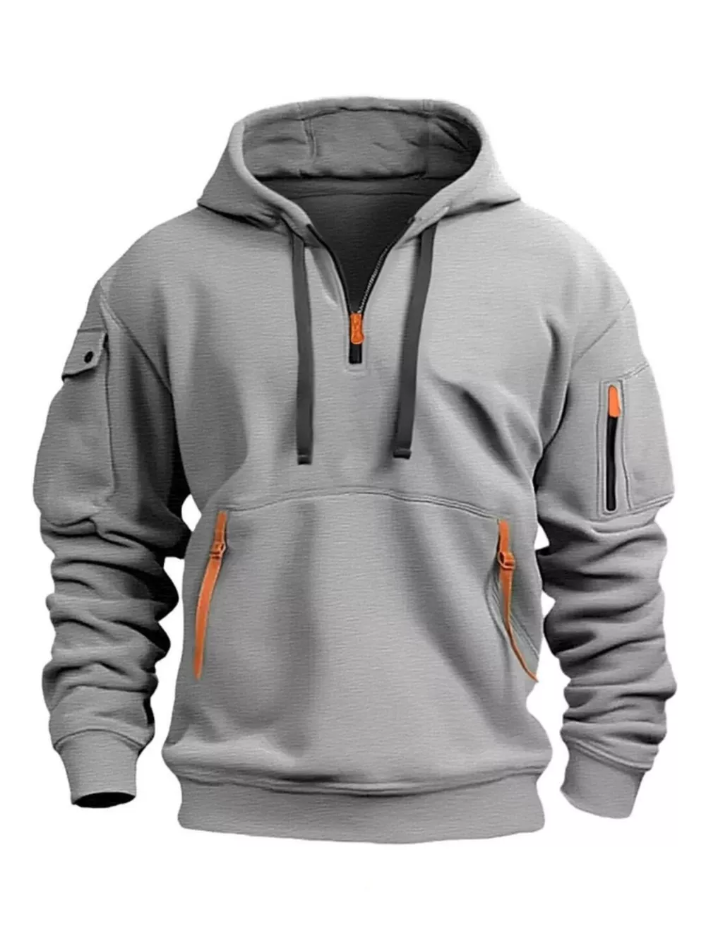 Men's Full Size Drawstring Half-Zip Pocket Hoodie Plus Size
